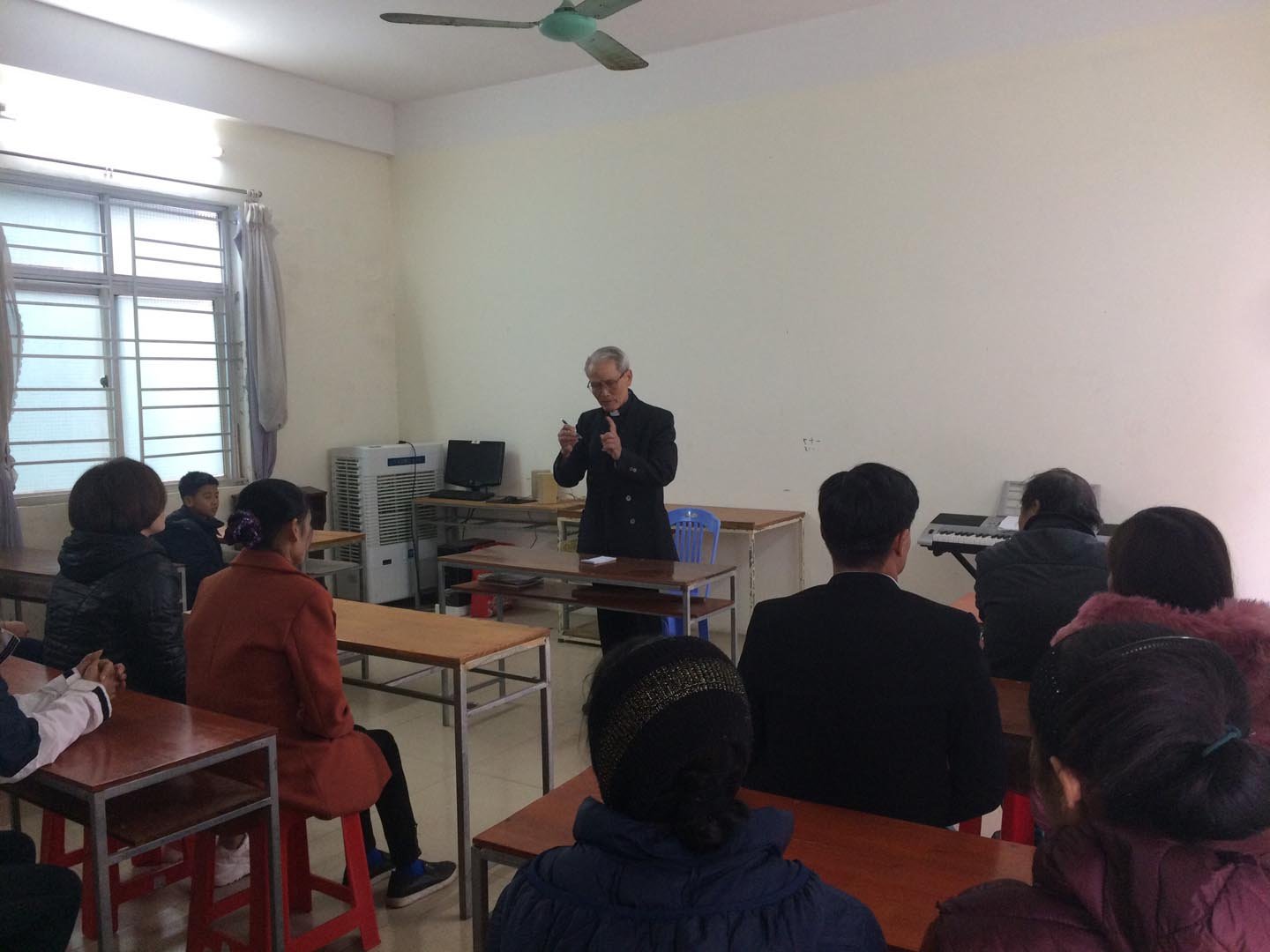 08g00, Cha Phêrô Phạm Ngọc Chinh SDB, Giám đốc Cộng thể cùng cha Savio Đinh Phụng Linh SDB, Đặc trách Khuyết tật gặp gỡ chia sẻ và trao quà tết cho từng gia đình của các em.