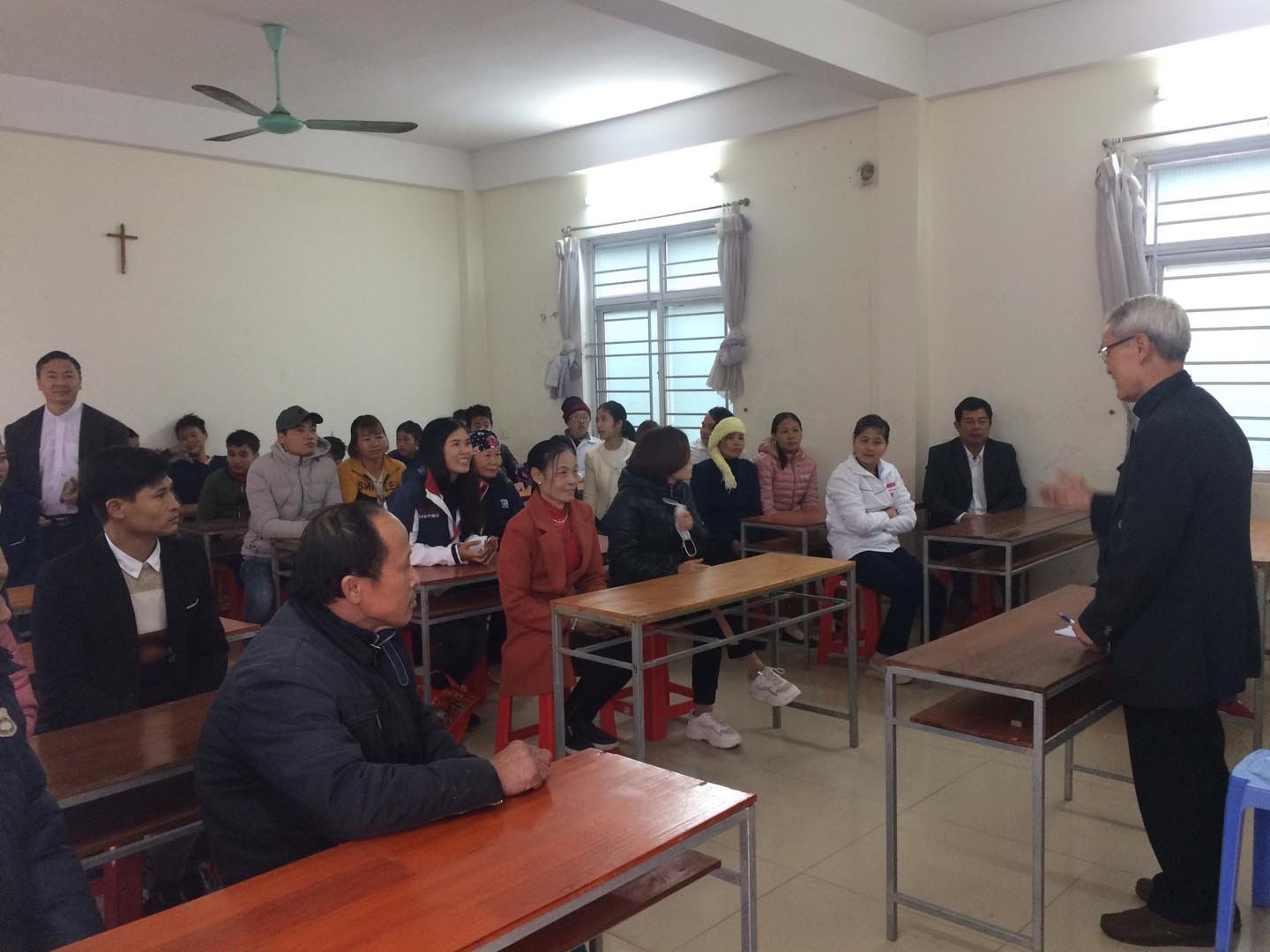 Ngay từ sáng sớm, bầu khí hân hoan vui mừng chào đón Đức Cha Phêrô, Cha Quản Hạt hạt Thành Phố Thái Bình, Quý Bề trên và tu sĩ các hội dòng, Quý Sa-lê-diêng Don Bosco Miền Bắc, Quý Ân Nhân khách mời, Quý Chính Quyền, Quý Phụ Huynh các em sinh viên và trẻ khuyết tật.
