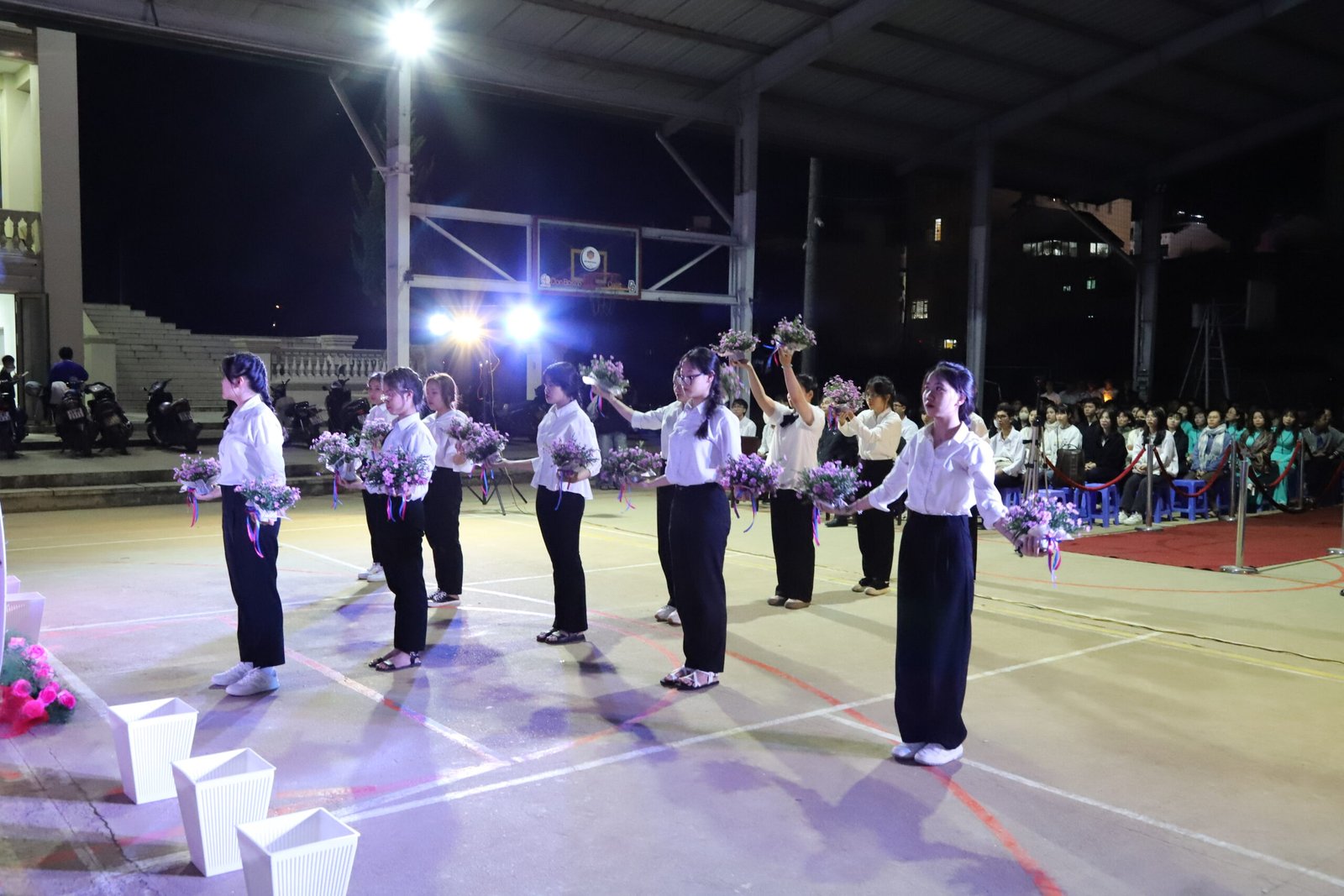 Tiếp theo, các tiết mục múa dâng hoa, dâng nến, dâng hương được trình diễn bởi các bạn sinh viên trong lưu xá và các cô trong Giáo sở. Những điệu múa uyển chuyển và trang nghiêm đã thể hiện lòng yêu mến và sùng kính Đức Mẹ.