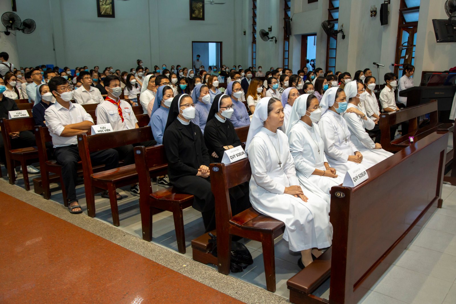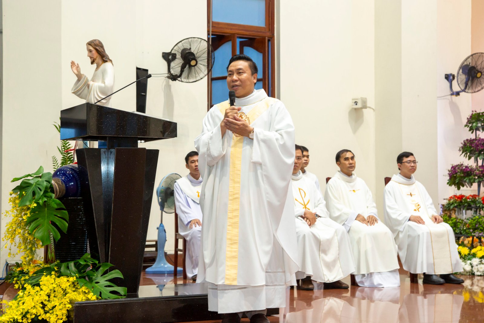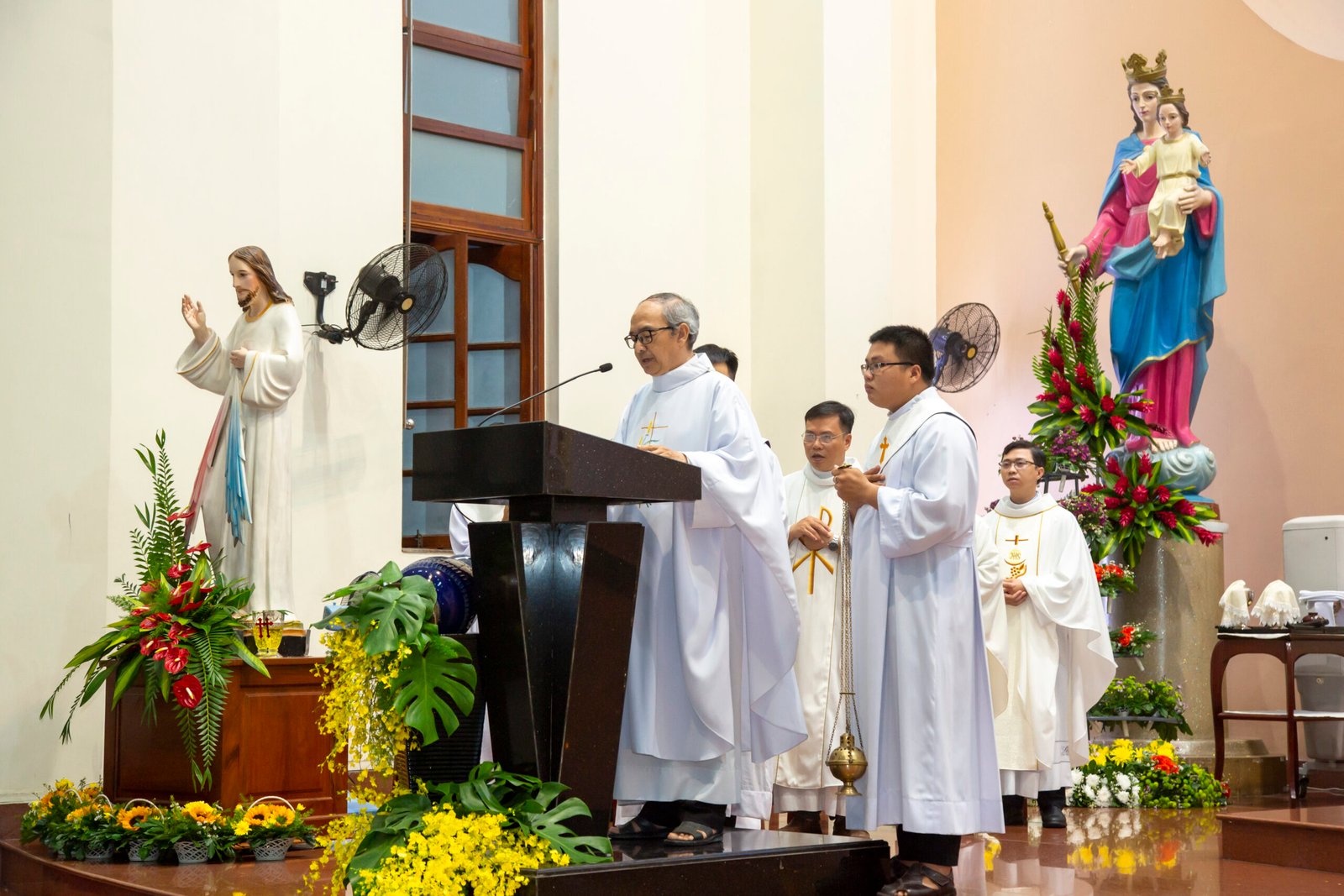 Đầu Thánh lễ, cha chủ tế Phêrô Phạm Quốc Hùng, SDB, giám đốc cơ sở giới thiệu với quý cộng đoàn sự hiện diện của những vị khách quan trọng: Cha Phêrô Nguyễn Văn Hiền, Trưởng Ban Giáo lý Tổng Giáo phận Sàigòn, Cha Gioakim Trần Văn Hương, Quản Hạt Thủ Đức, Cha Lê Ngọc Anh SDB, Giám đốc Học viện Thần học Dòng Salêdiêng Don Bosco, Cha Giuse Phạm Tuấn Nghĩa, Viện Trưởng Dòng Tên, Cha Giuse Đoàn Hải Đăng SDB, nguyên Giám đốc Cơ sở cùng quý Cha, quý Sơ giảng viên. Sau đó, Cha Phêrô bắt đầu hướng ý vào Thánh lễ, Cha mời gọi dâng lên Thiên Chúa tâm tình cảm mến, tri ân và nguyện xin Cơ sở ngày càng phát triển thêm nữa.