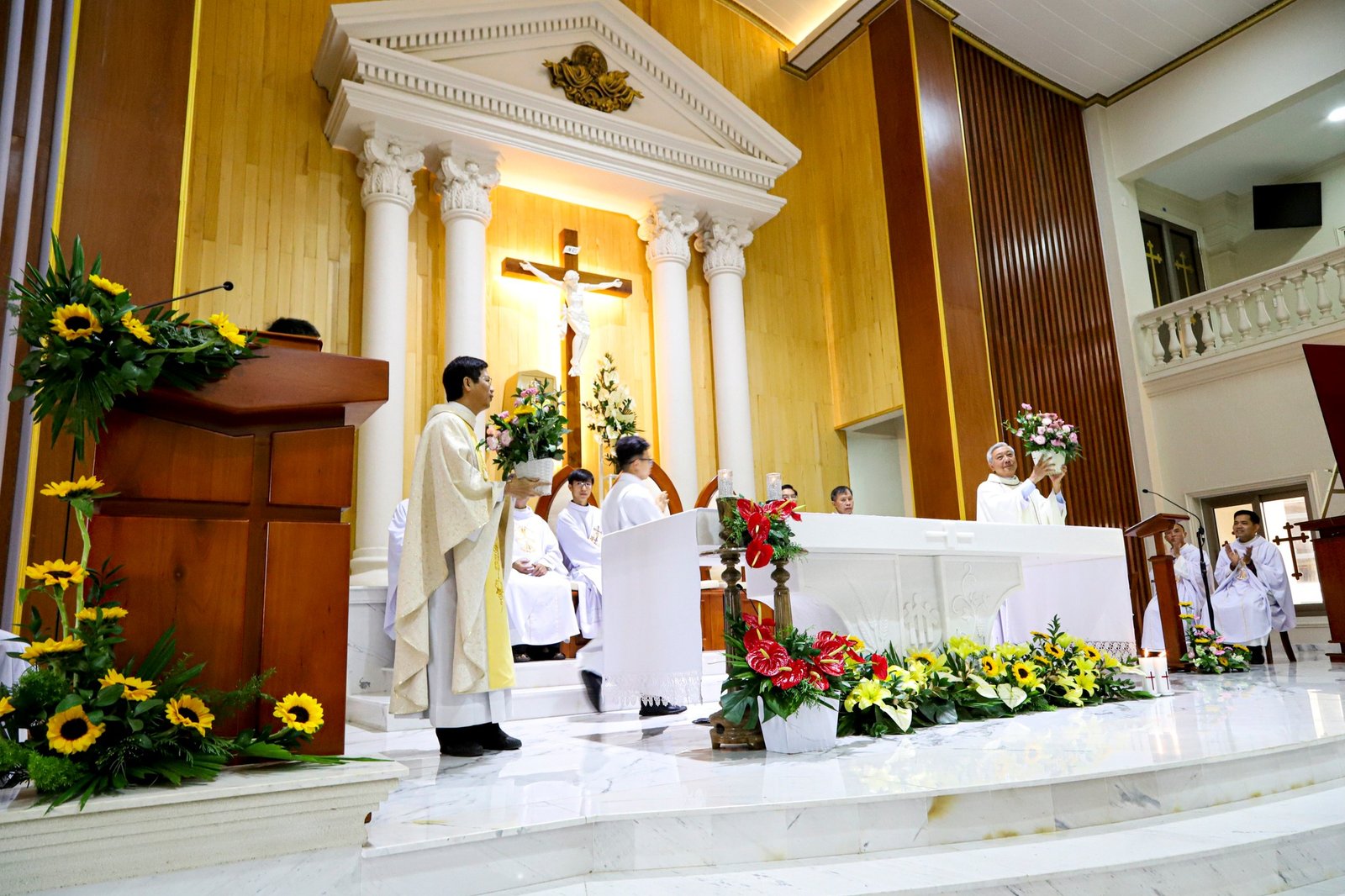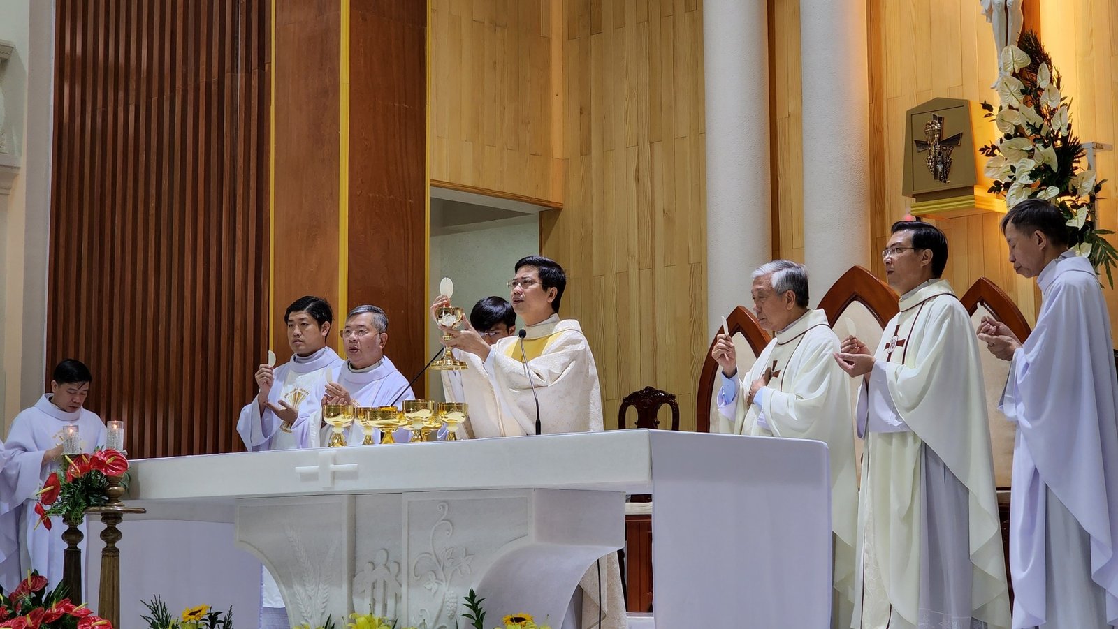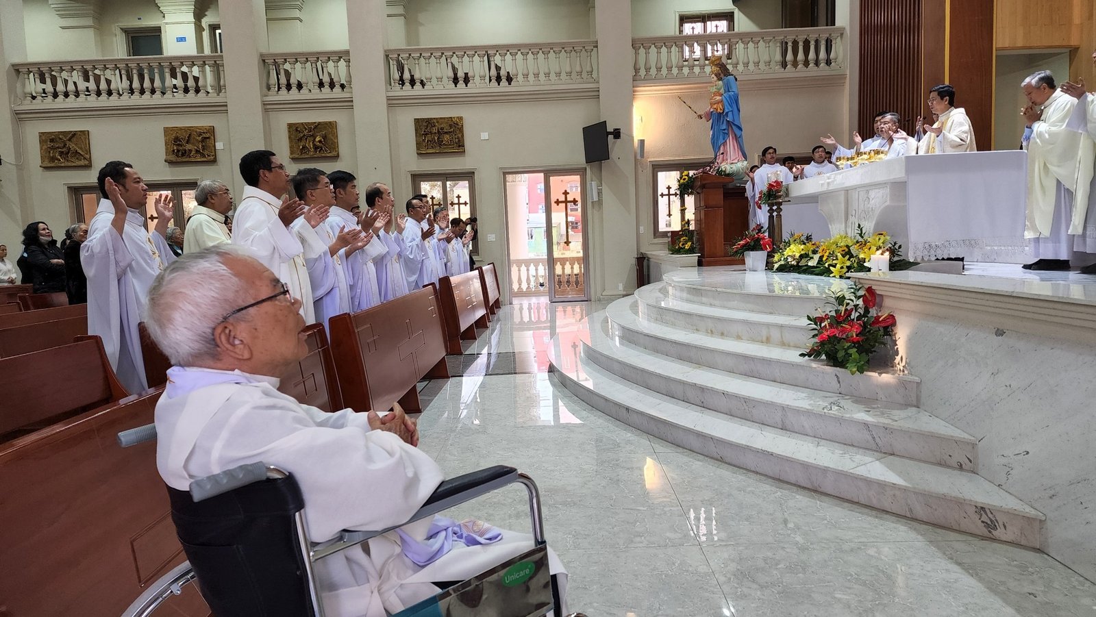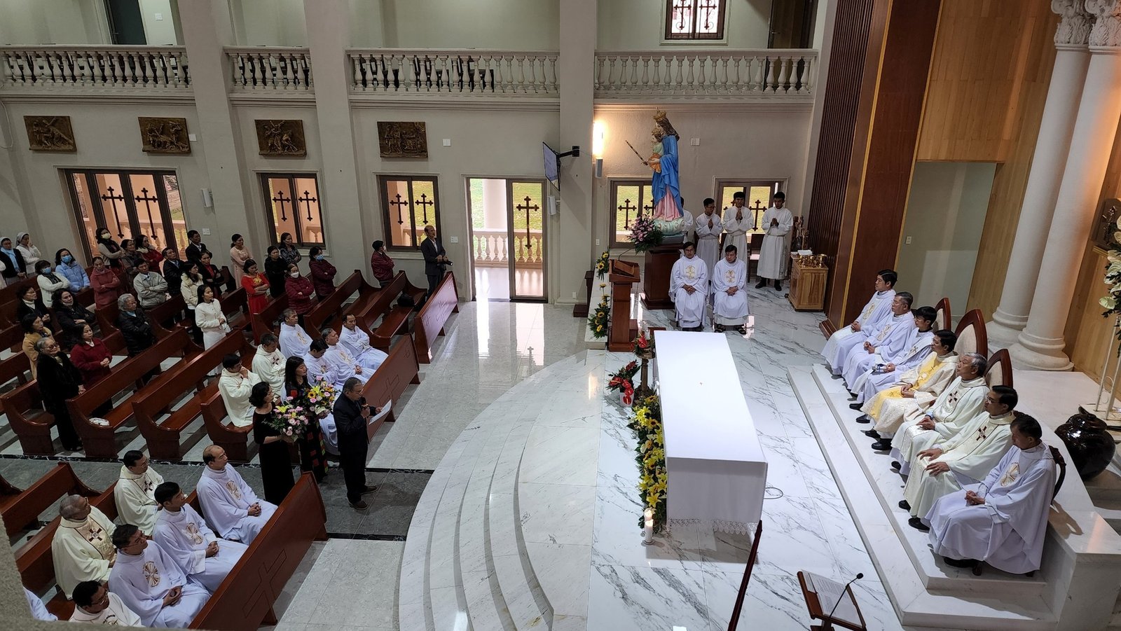 Đồng tế trong thánh lễ có Cha Toma Vũ Kim Long, SDB Giám đốc Học viện Don Rua Đà Lạt; qúy cha trong Ban cố vấn tỉnh, qúy cha SDB miền Đức Trọng, đặc biệt có sự hiện diện của qúy cha Dòng Vinh Sơn, Mẹ Chúa Cứu Chuộc và qúy nữ tu sỹ một số dòng tu tại Đà Lạt.