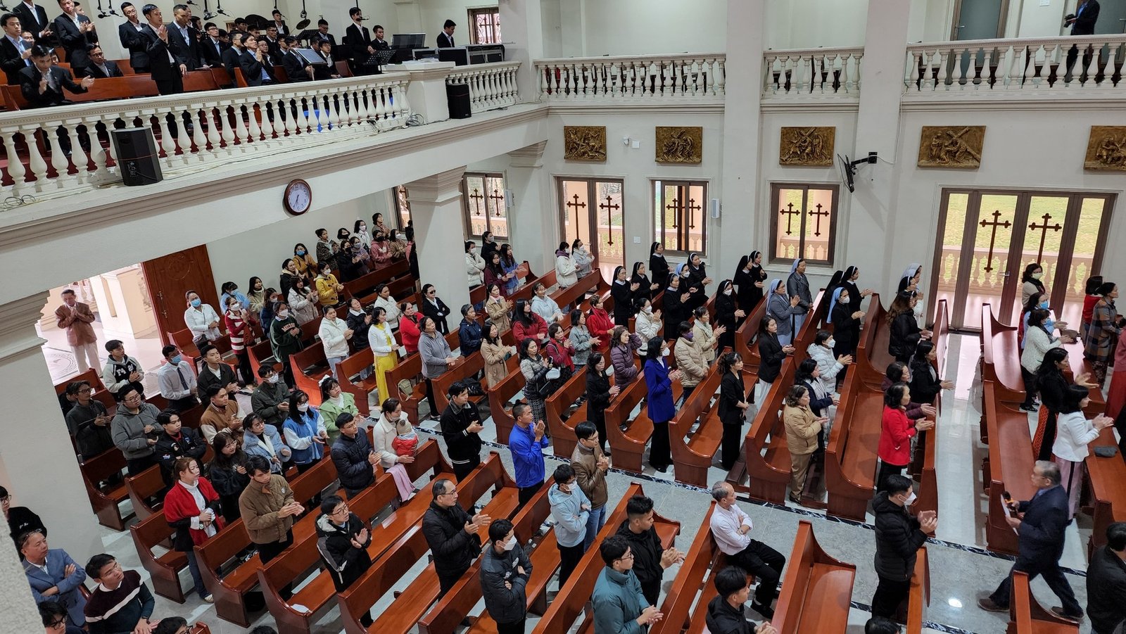 Sau thánh lễ, các thành phần dân Chúa chia sẻ niềm vui với học viện qua bữa điểm tâm thân tình và ấm cúng.