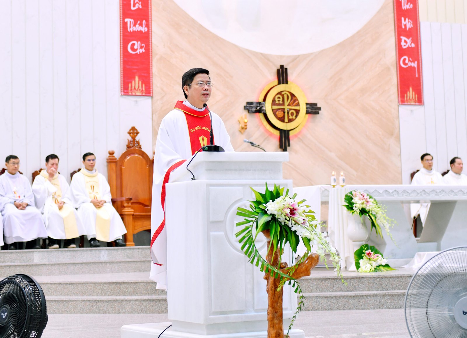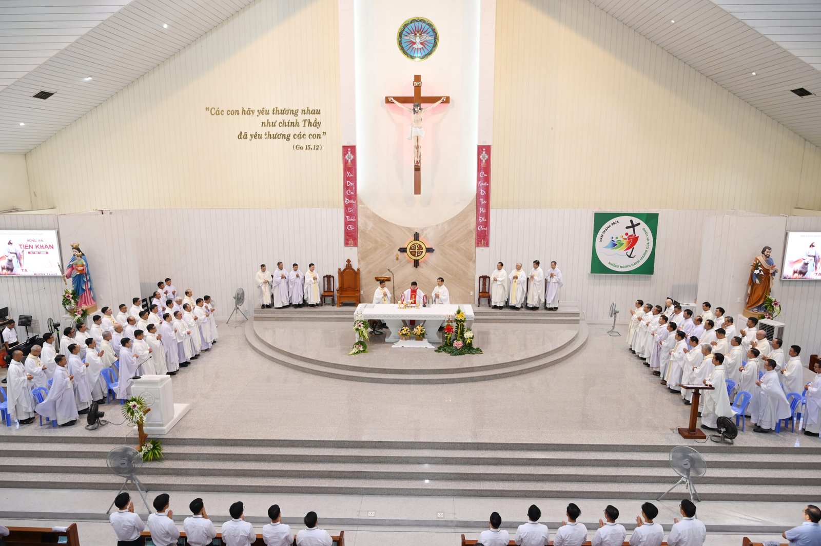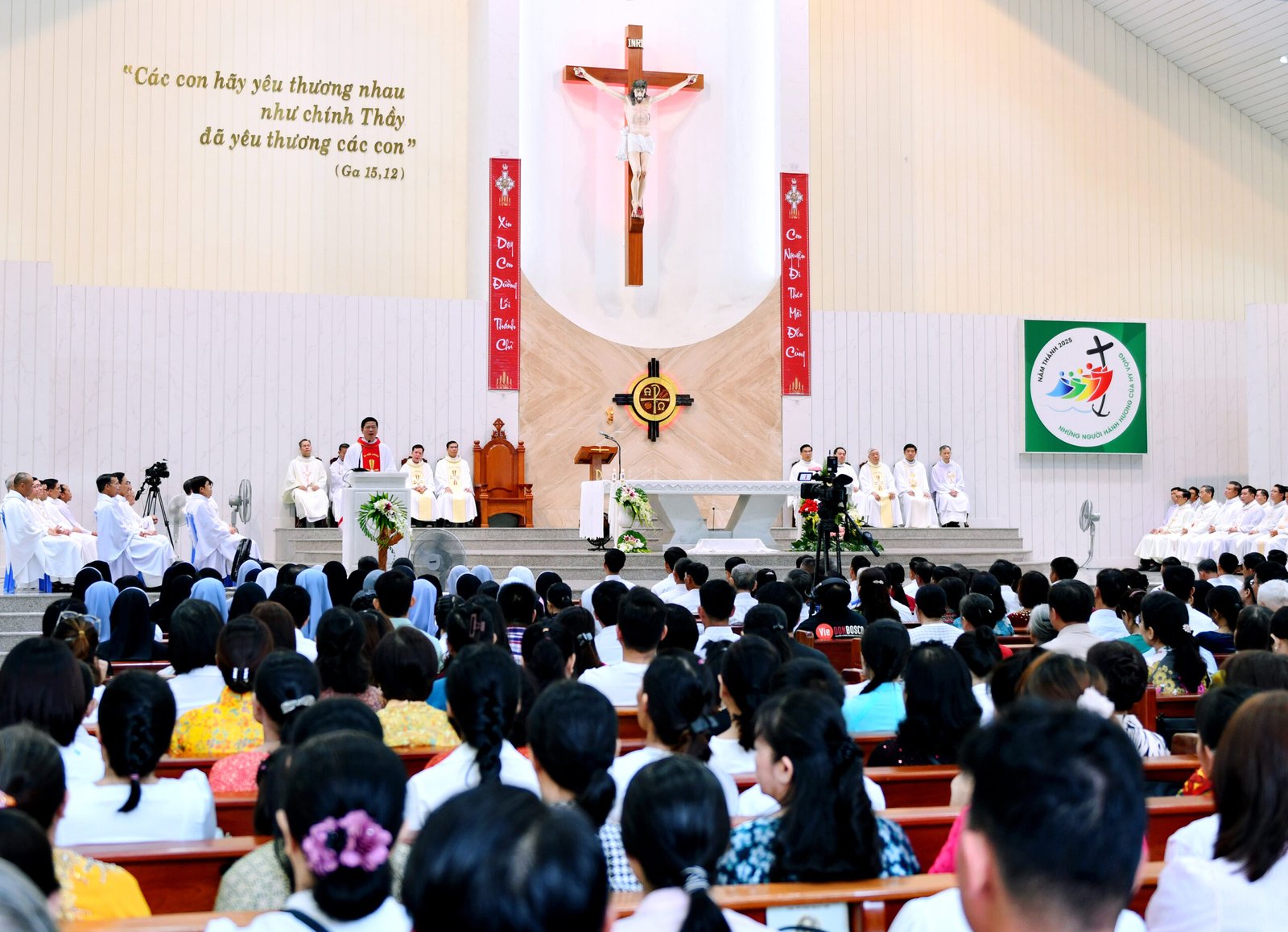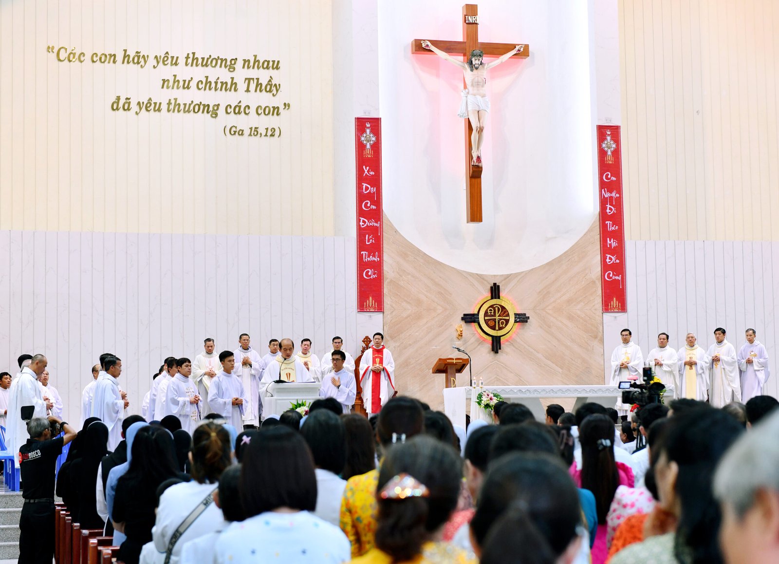 Chủ tế Thánh lễ là Cha Barnaba Lê An Phong, SDB, Giám tỉnh Tỉnh Dòng Salêdiêng Don Bosco Việt Nam. Cùng đồng tế với ngài có quý Cha trong và ngoài Tỉnh Dòng, với sự hiện diện hiệp thông của quý tu sĩ nam nữ, quý phụ huynh, ân nhân và cộng đoàn dân Chúa.