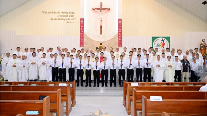 TP. HỒ CHÍ MINH – Trong bầu không khí trang nghiêm và hân hoan của tâm tình tạ ơn, vào lúc 6h00 sáng Thứ Năm, ngày 14 tháng 8 năm 2025, Tỉnh Dòng Salêdiêng Don Bosco Việt Nam cử hành Thánh lễ Tuyên khấn Lần đầu cho 12 tập sinh tại Thánh đường Giáo xứ Don Bosco Ba Thôn, Tổng Giáo Phận Sài Gòn.