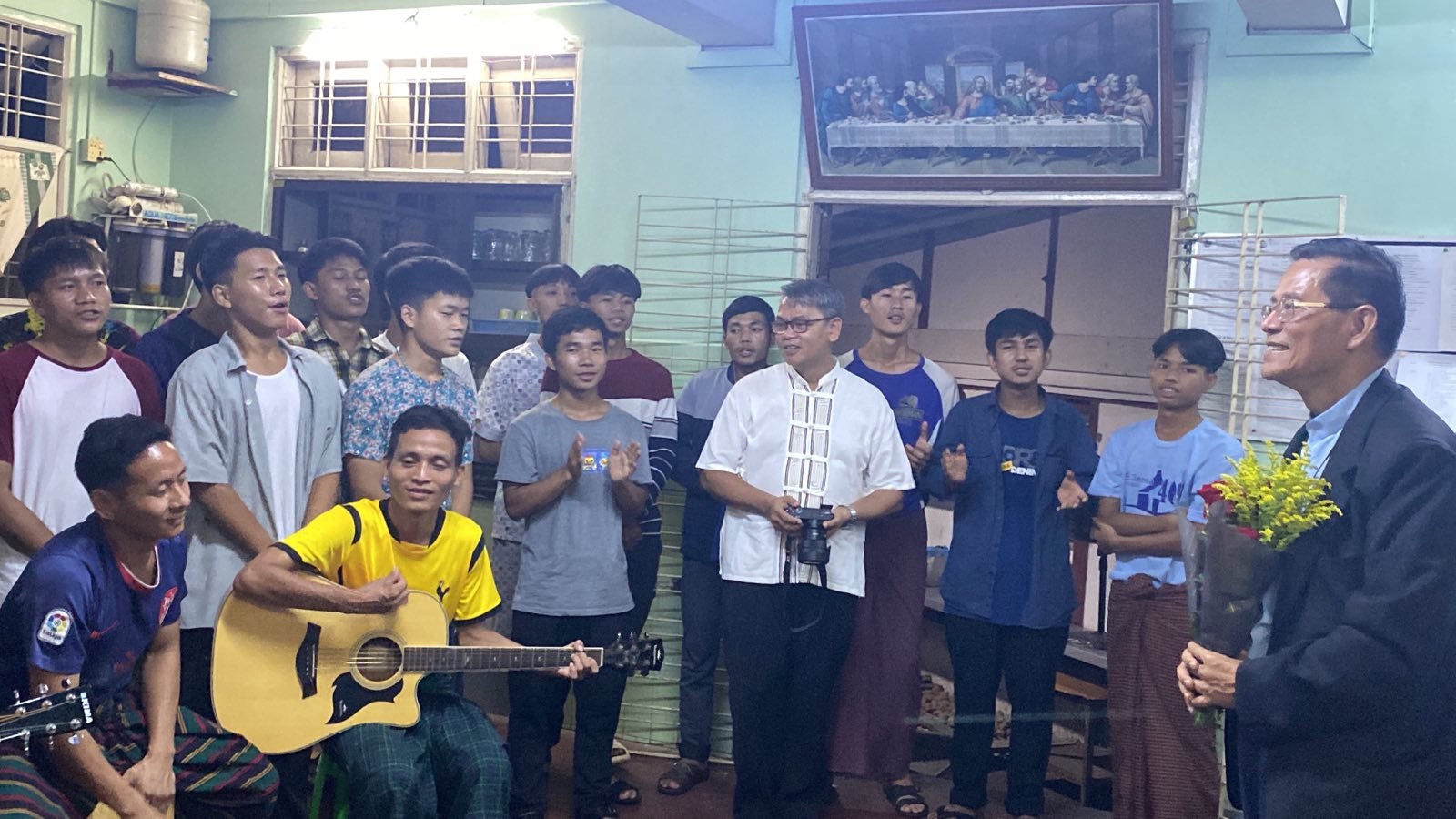 Anisakan, Myanmar – Tháng 8 năm 2023 – Chuyến viếng thăm ngoại thường của Cha Giuse Nguyễn Thịnh Phước, Cố vấn vùng Đông Á-Châu Đại Dương, đến Myanmar, bắt đầu vào ngày 26 tháng 7 và kết thúc vào ngày 17 tháng 8. Trong những tuần này, cha Cố vấn vùng đã đến thăm tất cả các cộng đoàn, gặp gỡ, nói chuyện và lắng nghe các hội viên, các bạn trẻ, các cựu học sinh, sinh viên và các thành viên của Gia đình Salêdiêng, bất chấp tình hình khó khăn trong nước. Đặc biệt, vào tối ngày 15 tháng 8, các hội viên đã tập trung tại Nhà Tỉnh để lắng nghe những lời đúc kết và sứ điệp của ngài. Cũng hiện diện trong dịp này có Cha Bosco Nyi Nyi, Bề Trên Á Tỉnh “Đức Mẹ Phù hộ các Giáo hữu” của Myanmar (MYM), ngài đã cảm ơn cha Cố vấn vì sự gần gũi và quan tâm của cha. Sau đó, các thầy hậu tập viện hát bài ca cám ơn. Ngày hôm sau, một bữa tiệc linh đình được tổ chức để mừng sinh nhật Don Bosco, với sự hiện diện của các Salêdiêng, FMA, Cựu học sinh và các bạn trẻ. Cuối thánh lễ, cha Giuse Phước hứa cầu nguyện cho Myanmar và bảo đảm sự gần gũi quan tâm của cha Bề Trên Cả đối với Á Tỉnh dòng.