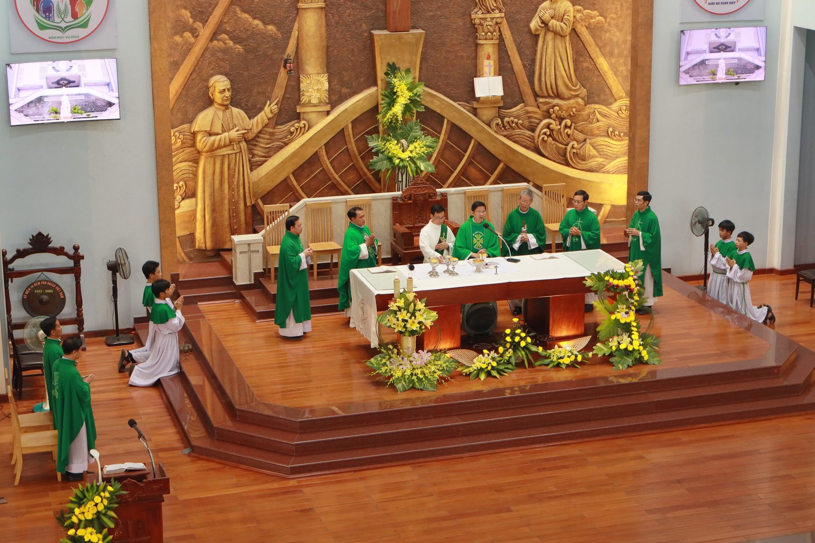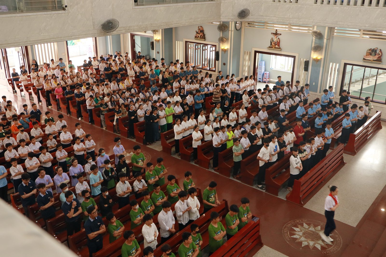Thánh lễ là trọng tâm của ngày Họp mặt và Hội Chợ, sau phần chào đón và ổn định, các bạn đã được hướng dẫn và chuẩn bị tâm hồn để tham dự Thánh Lễ một cách sốt sắng và thiêng liêng. Đặc biệt, trong Thánh lễ, Cha Giám Tỉnh, Barnaba Lê An Phong đã nhắn nhủ và chia sẻ cho các bạn trẻ qua bài giảng “Chúng con cần phải có cảm thức tri ân và cảm tạ Thiên Chúa vì muôn hồng ân người trao ban cho chúng ta, không chỉ qua ngày vui hôm nay, nhưng còn là mọi hồng ân tưởng chừng rất bình thường như cuộc sống, thời gian, sức khỏe, gia đình…những thứ mà xem chừng quá quen thuộc, nên dễ dàng bị chúng con quên lãng…”. Sau Thánh lễ, Ngày Hội Chợ được bắt đầu với phần khai mạc và thánh hóa của Cha Giám Đốc Giuse Lê Ngọc Anh, các bạn trẻ được Ban Tổ Chức thông báo một số điều lệ, giới thiệu hình thức chơi và các gian hàng. Sau đó, các gian hàng đồng loạt mở cửa chào đón và phục vụ các bạn trẻ.