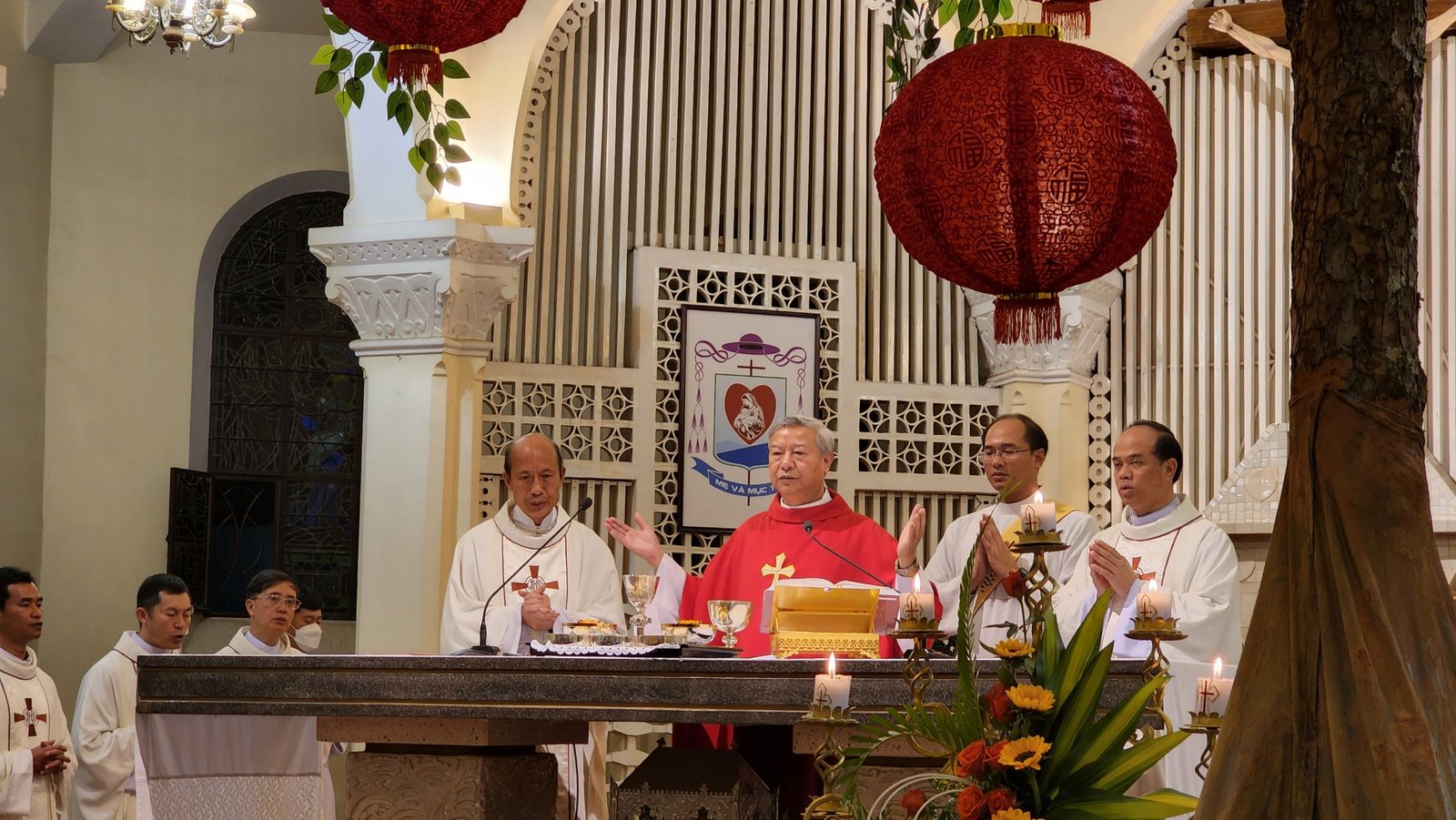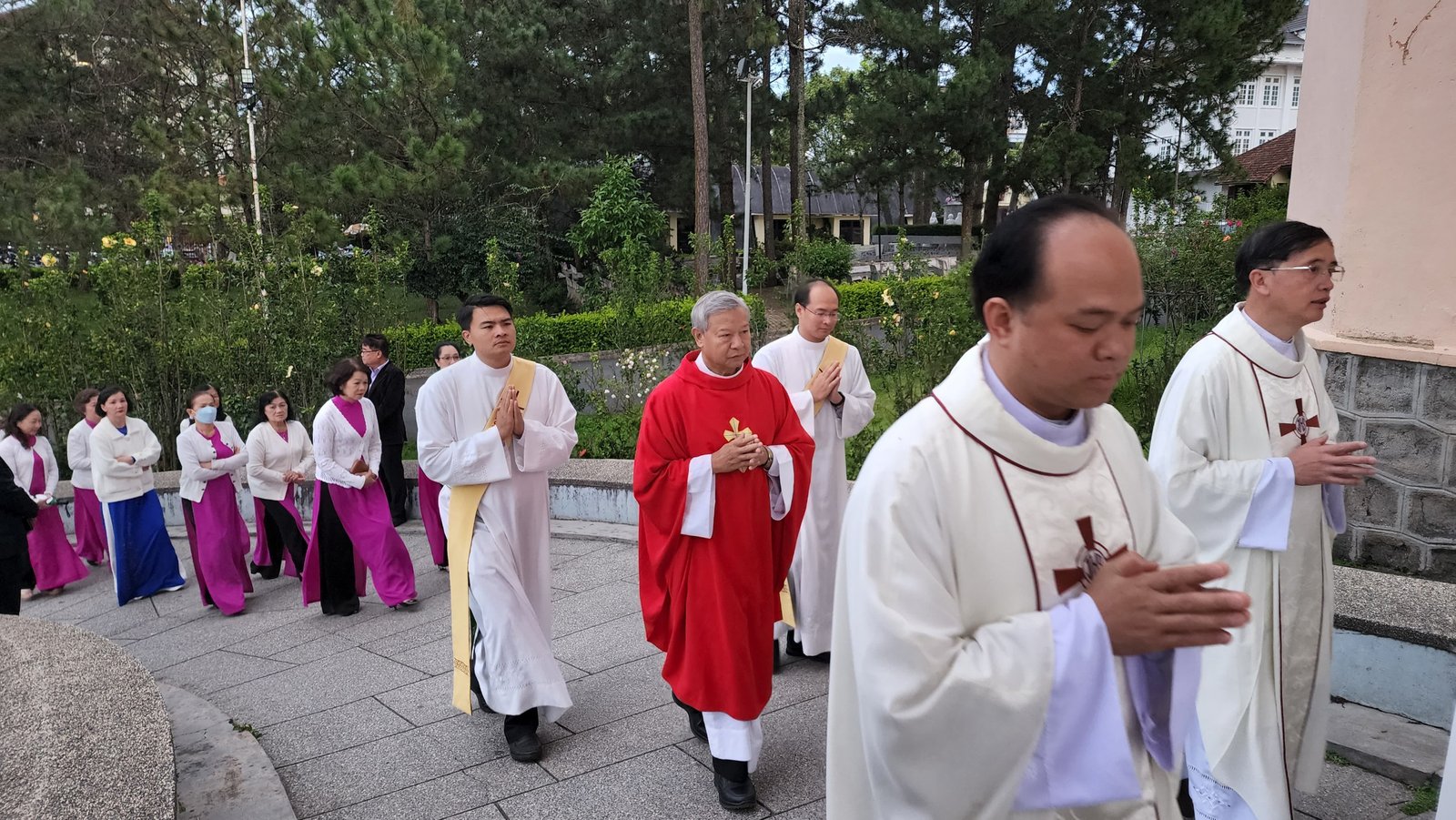 Lúc 17g30 Cha Tổng Đại diện- Gioan Bosco Hoàng Văn Chính chủ sự thánh lễ, cùng đồng tế có cha Phaolô Phạm Công Phương- Quản hạt Đà Lạt, Cha Giuse Nguyễn Minh Cường- Phó Chưởng ấn, kiêm Đặc trách Giới trẻ Giáo Phận, Cha Giuse Nguyễn Đình Thắng- Quản xứ Tà Nung, kiêm Đặc trách Giới trẻ giáo hạt Đà Lạt và gần 30 cha đến từ các Giáo xứ, Giáo sở, Trung tâm Mục vụ, Đại chủng viện và các dòng tu.