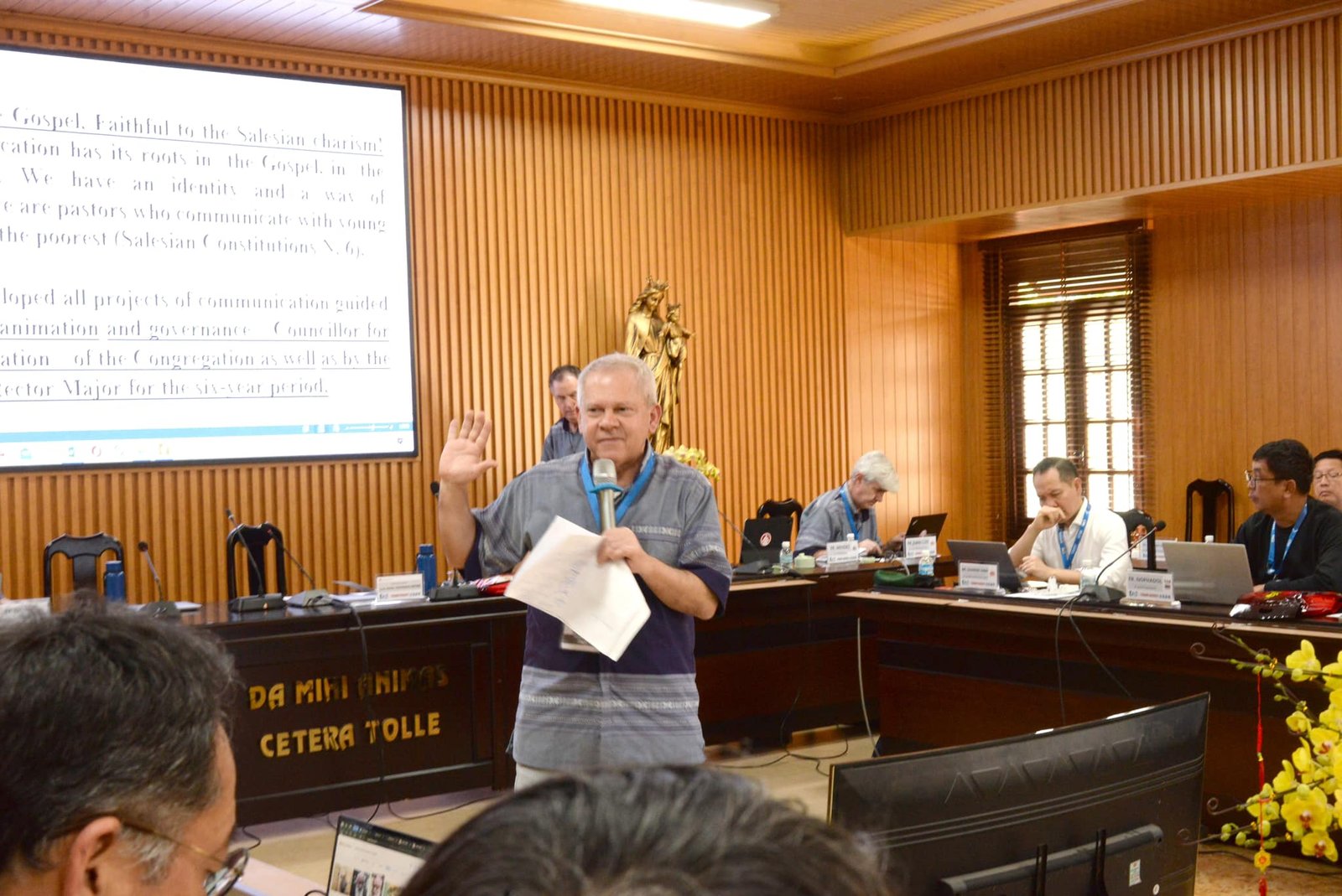 Ngài thông tri cho hội nghị được biết về việc Ban truyền thông đã triển khai tất cả các dự án được đưa ra cũng như các Ưu tiên của Bề Trên Cả trong thời gian sáu năm.