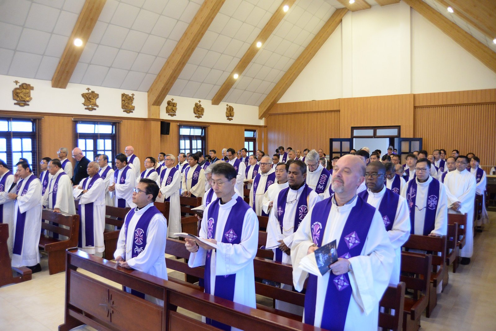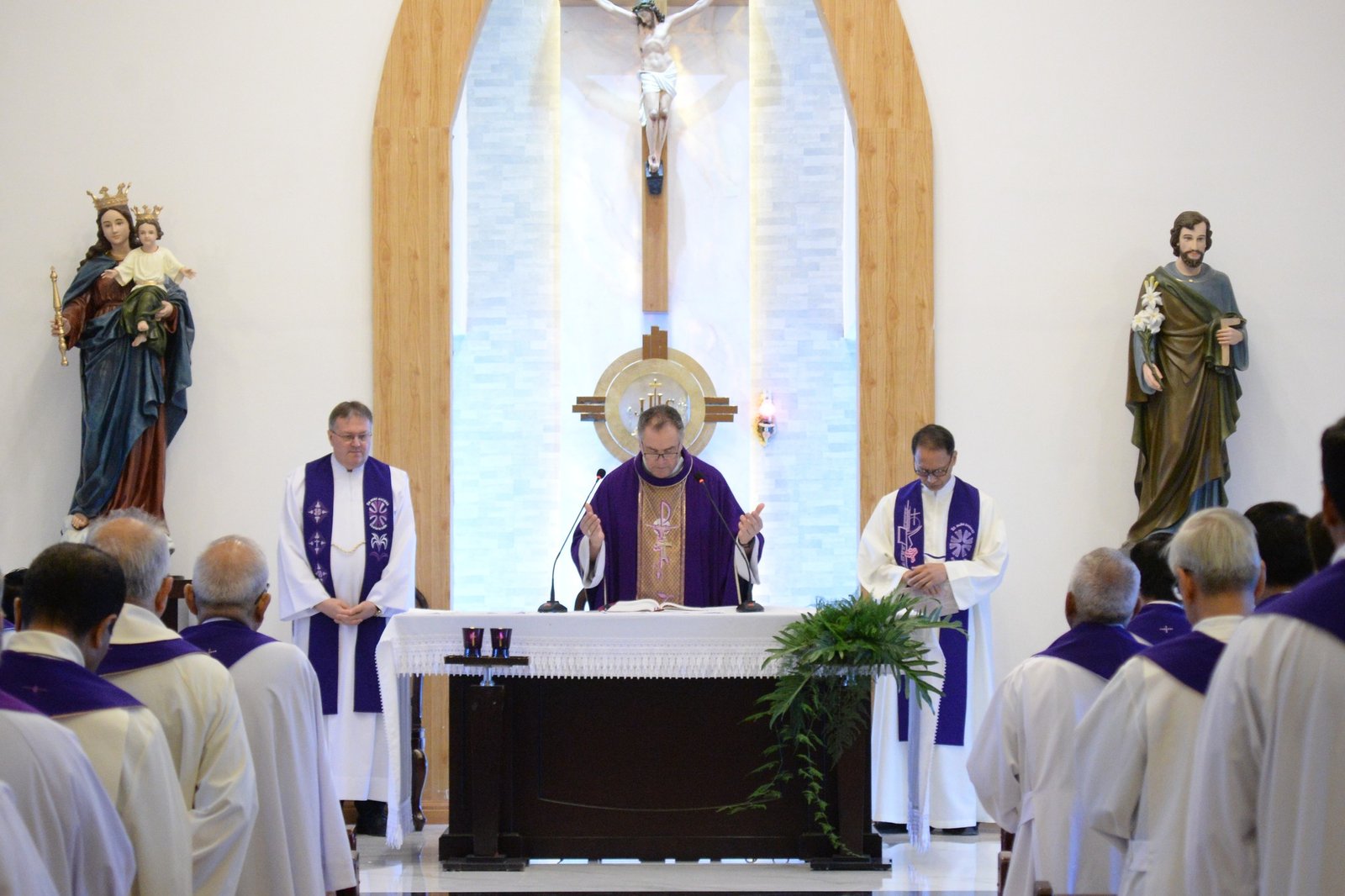 K’Long (Việt Nam) – Ngày 16.02.2024, các tham dự viên của cuộc họp “Team Visit 2024” vùng EAO bước vào ngày họp thứ ba. Như thường lệ, ngày họp được bắt đầu bằng Thánh Lễ và Kinh Sáng Phụng Vụ do Cha Bề Trên Cả chủ sự và cha García Morcuende Miguel Ángel (Tổng Cố vấn Mục vụ Giới trẻ) giảng lễ. Trong bài giảng, cha Miguel đã để cập với các tham dự viên về những đặc tính của Mùa Chay, qua đó ngài mời gọi các tham dự viên xét mình lại và đặt trọng tâm đời mình là yêu mến Chúa và sống vì người trẻ.