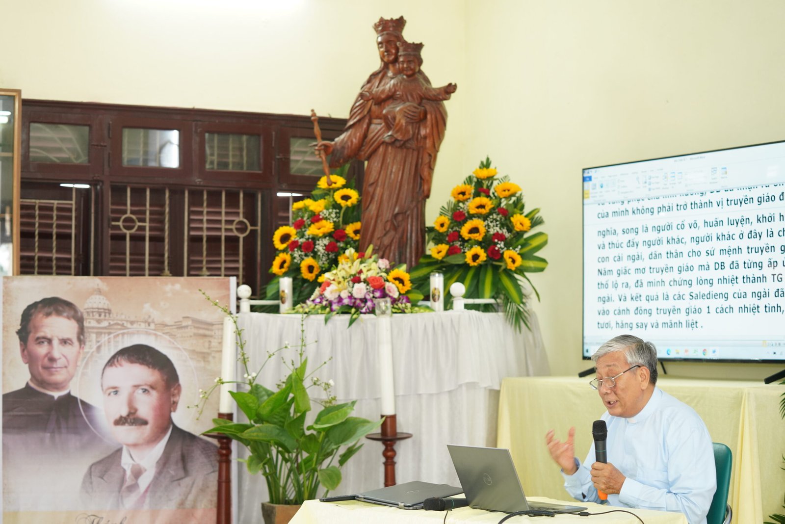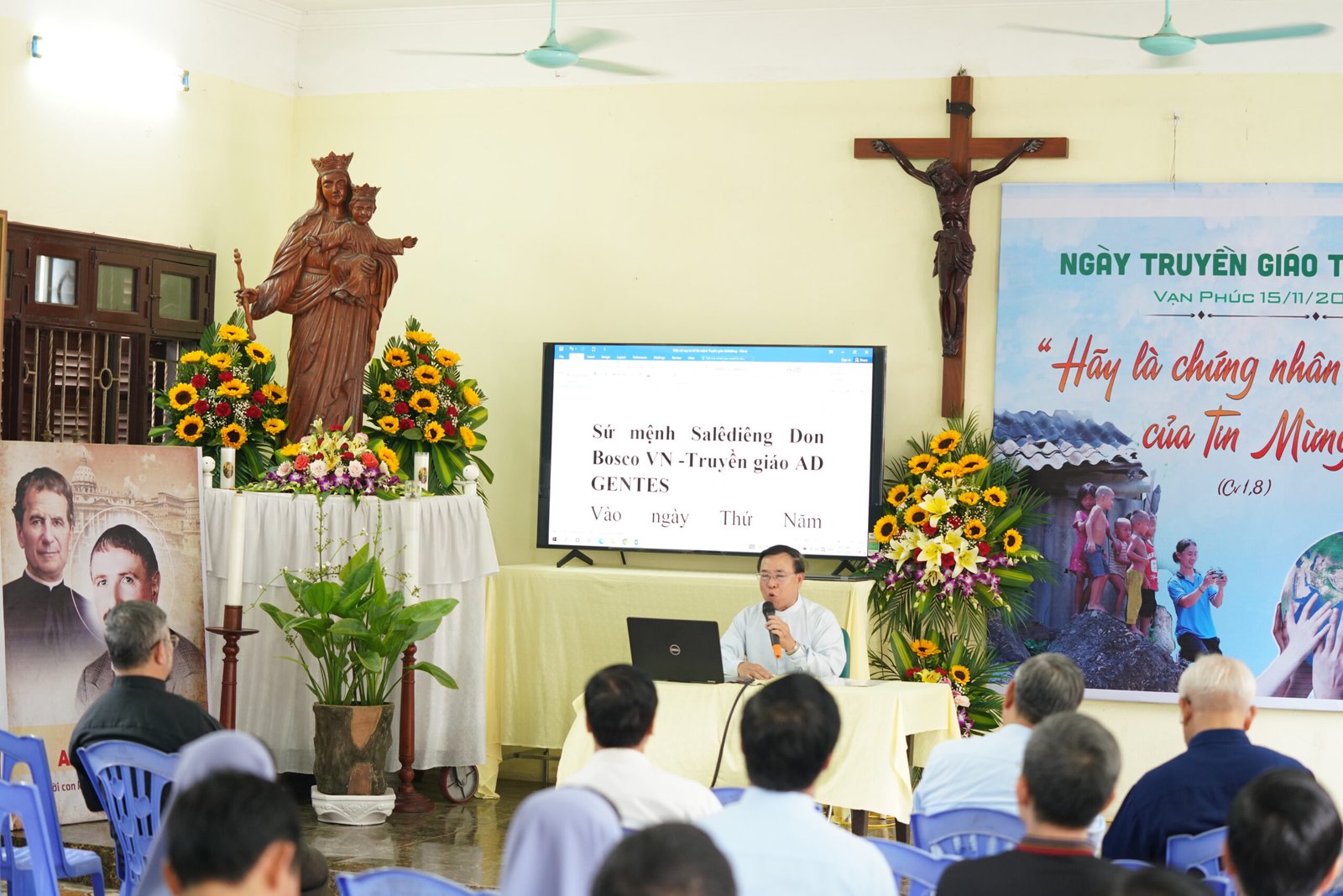 Cha Đặc trách Truyền giáo Tôma Vũ Kim Long đã giúp cộng đoàn hiểu rõ và đào sâu căn tính truyền giáo Salêdiêng. Ngài cũng mời gọi mọi người cầu nguyện và đồng hành với gia đình các hội viên truyền giáo tại các tỉnh phía Bắc. Tiếp theo, cha Giuse Trần Văn Hiển đã trình bày một số hoạt động, thuận lợi và khó khăn cũng như những góp ý và đường hướng để đồng hành tốt hơn với anh em. Sau đó, cha Giuse Nguyễn Đình Phúc chia sẻ về công cuộc truyền giáo tại Tây Nguyên, với hiện trạng và đường hướng tương lai.