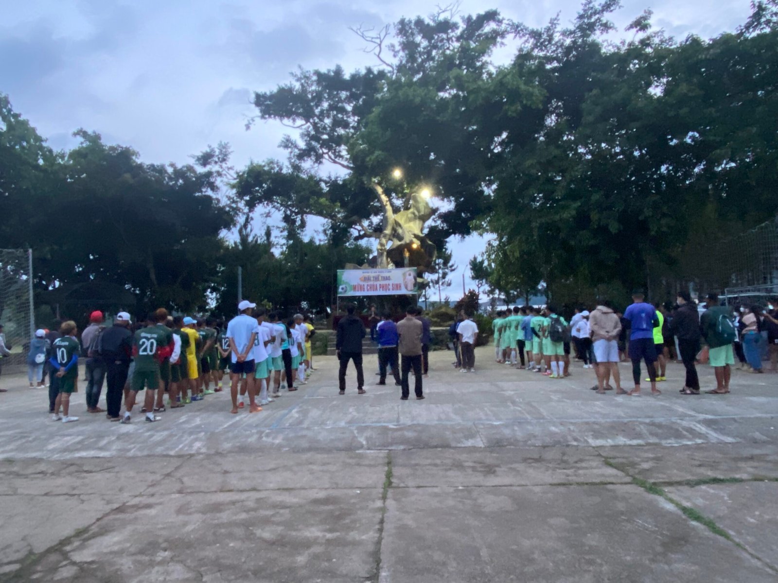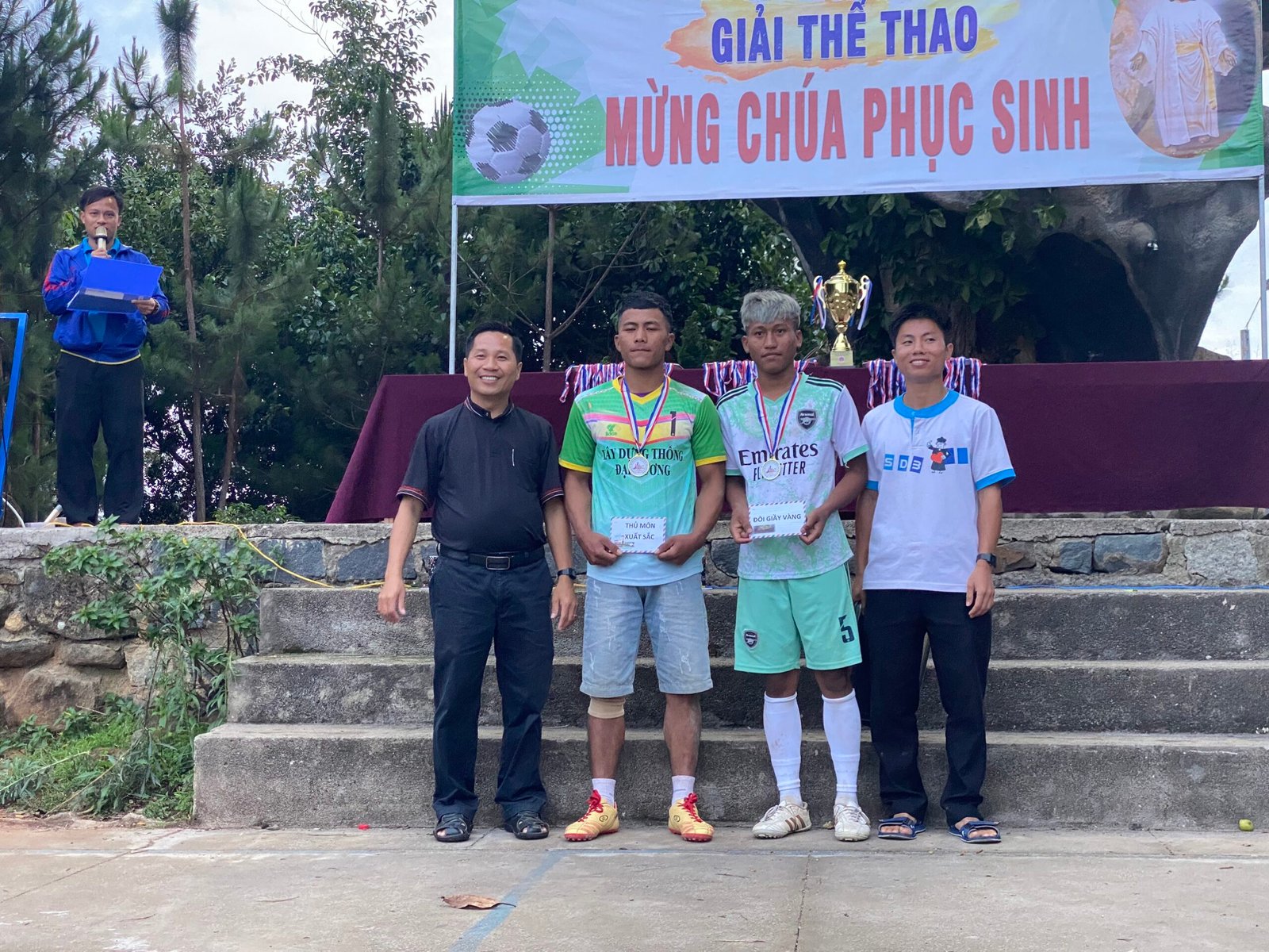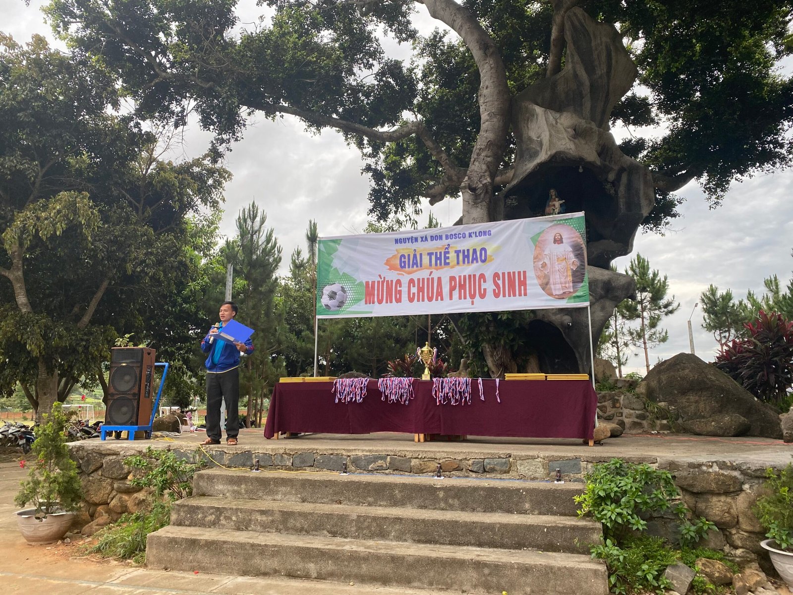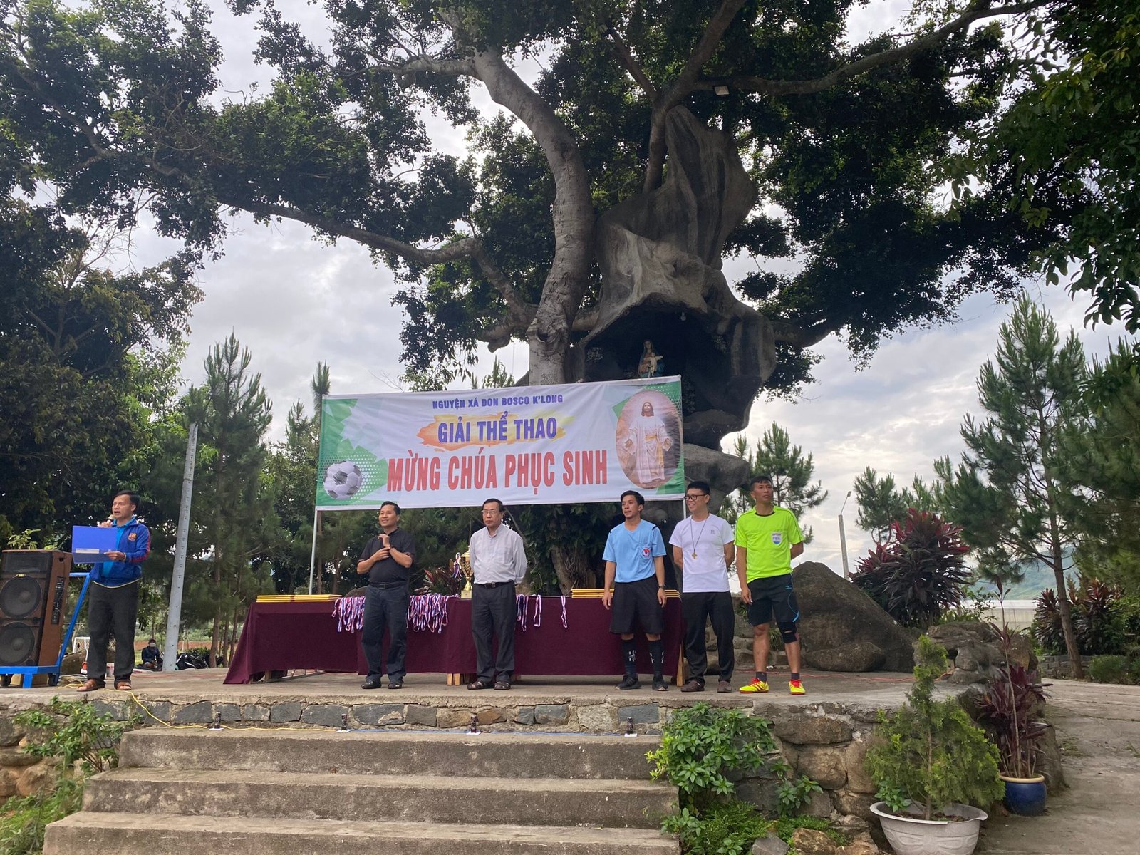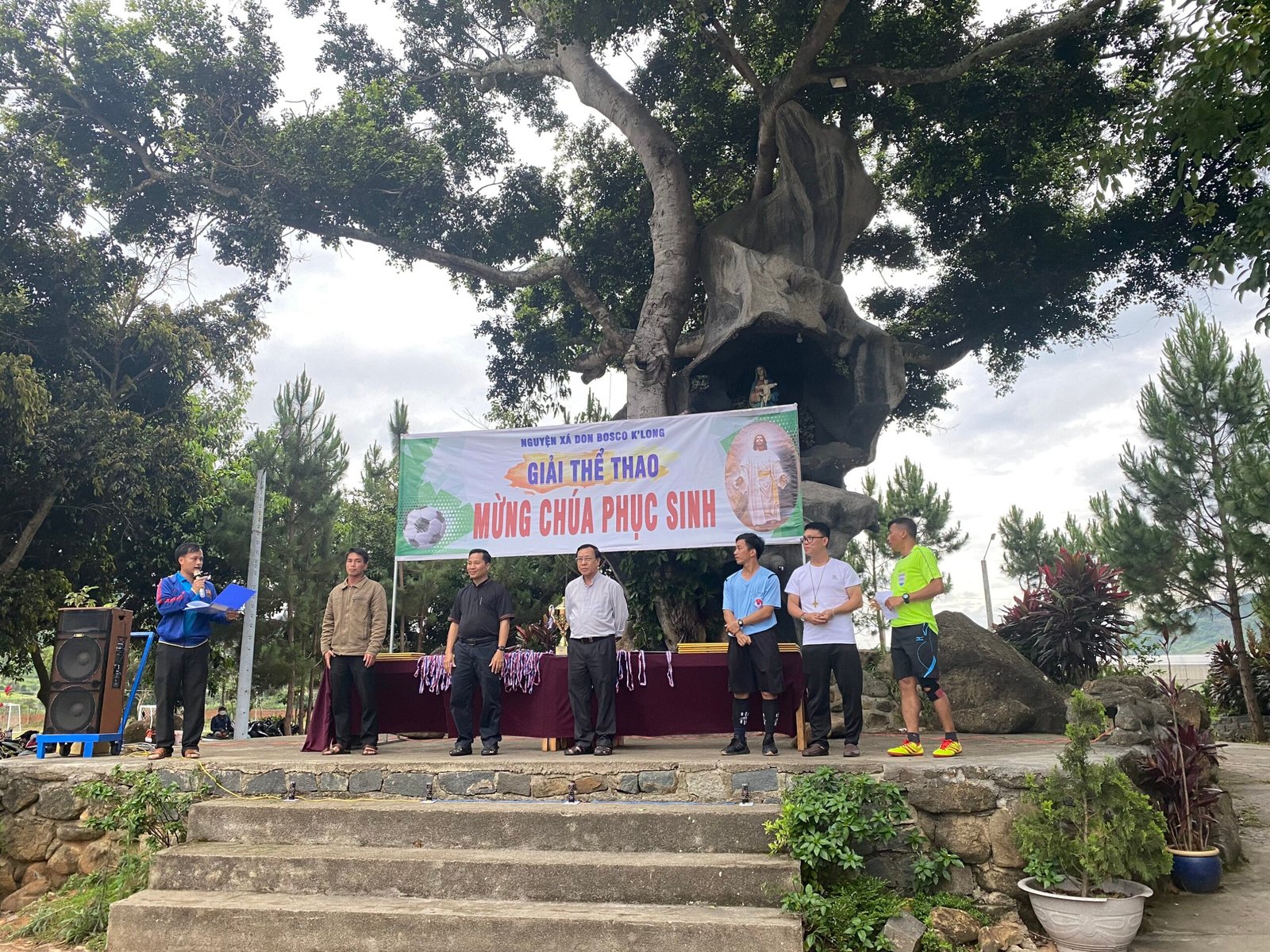 Kết thúc giải đấu, các đội bóng và người hâm mộ hân hoan chào đón cha Giám Đốc Giuse Trần Văn Hiển, quý cha-thầy thuộc cộng thể Don Bosco K’Long, quý thầy học viện triết học đang giúp tông đồ tại các giáo xứ cùng hiện diện và tham dự lễ Bế Mạc Giải truyền thống Mừng Chúa Phục Sinh.
