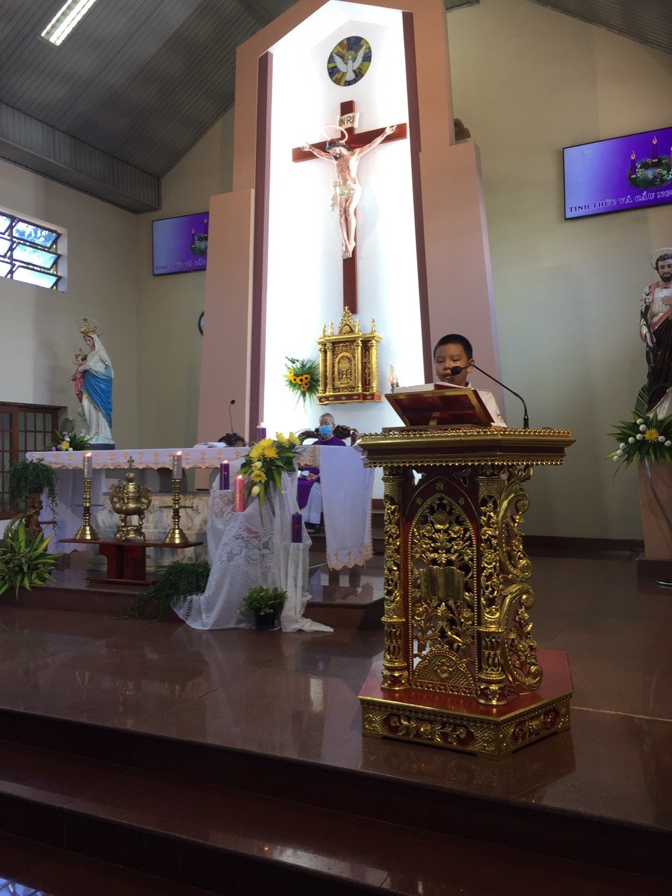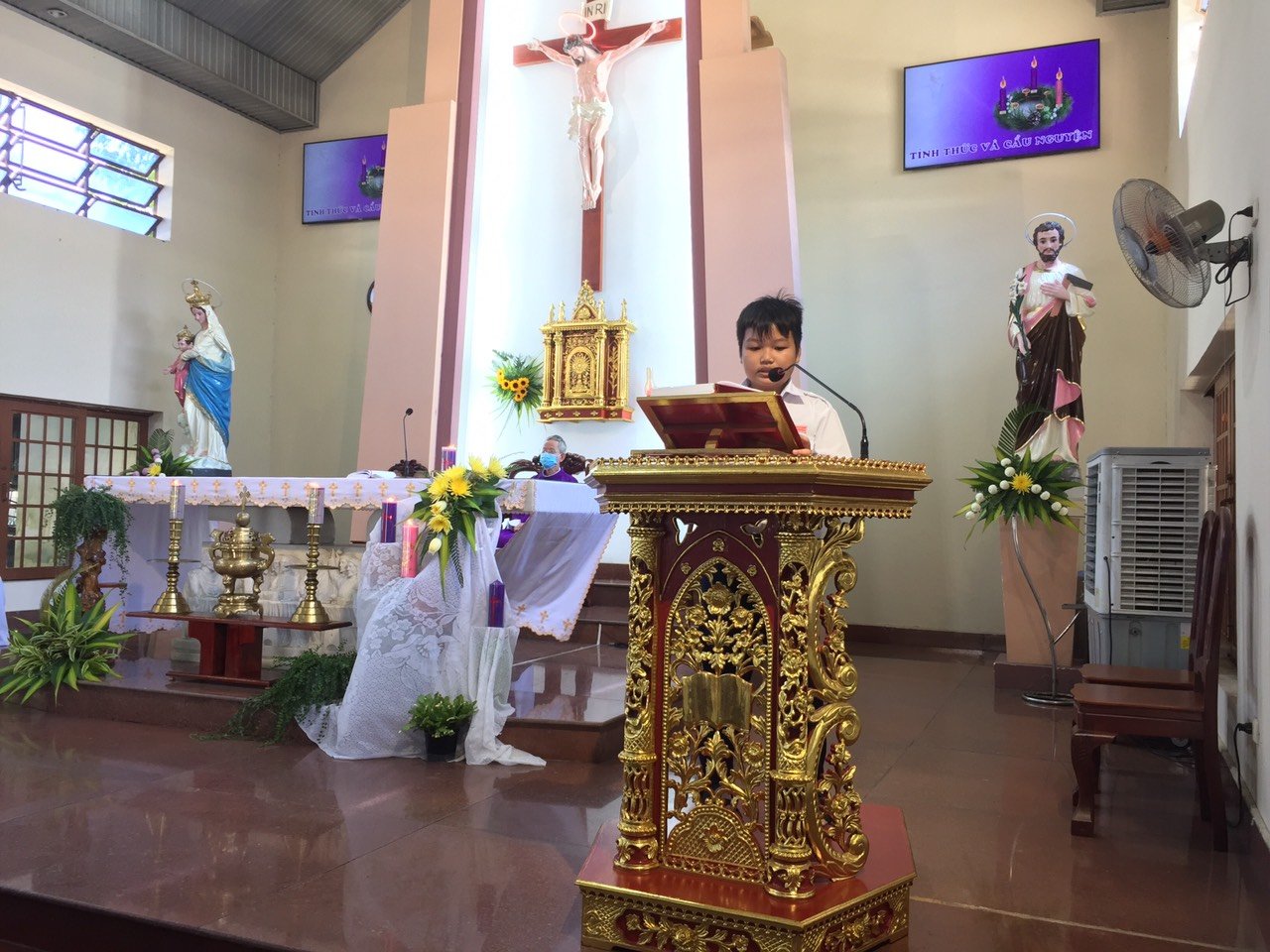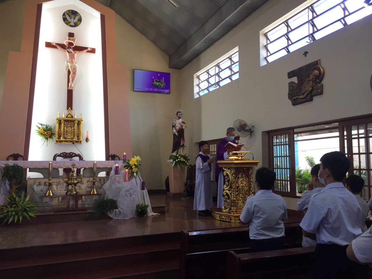 Tiếp theo là Thánh lễ đã diễn ra một cách rất sốt sắng và trang nghiêm do Cha Giám Đốc Giuse Lê Ngọc Anh chủ sự. Trong bài giảng, Cha Giám Đốc nhấn mạnh: “hôm nay Tin Mừng nói về dấu chỉ và nhờ dấu chỉ người ta nhận ra Chúa đến, vậy nên Cha mời gọi chúng con hãy cố gắng và nỗ lực trở nên những dấu chỉ để người khác nhận ra Chúa Giêsu nơi mỗi người chúng con, trong chính trách nhiệm của mình là học sinh, là con cái Don Bosco và là những Kitô hữu”. Thánh lễ kết thúc trong bầu khí trang nghiêm và sốt sắng, hòa cùng niềm vui.