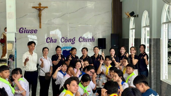 TẮC VÂN – Sáng Chúa Nhật, ngày 19/04/2026, trong không khí tràn đầy sức sống của Tin Mừng Phục Sinh, Nhóm tìm hiểu Cộng tác viên Salêdiêng Tắc Vân đã tổ chức chương trình “Bữa sáng yêu thương” dành cho hơn 40 em thiếu nhi tại Giáo xứ.