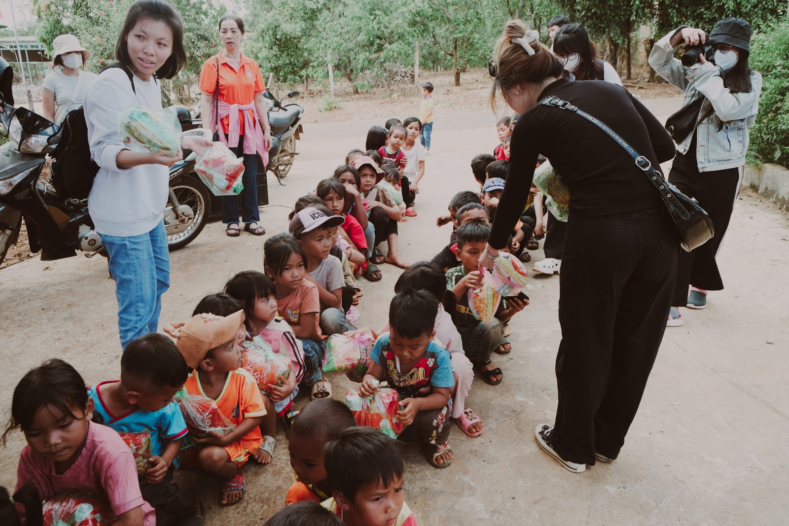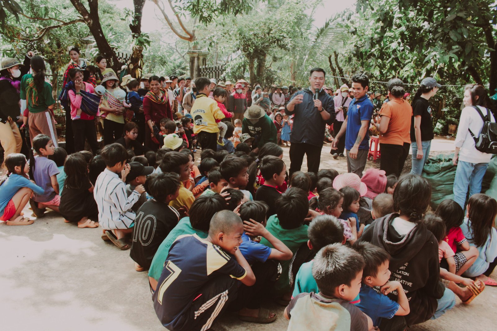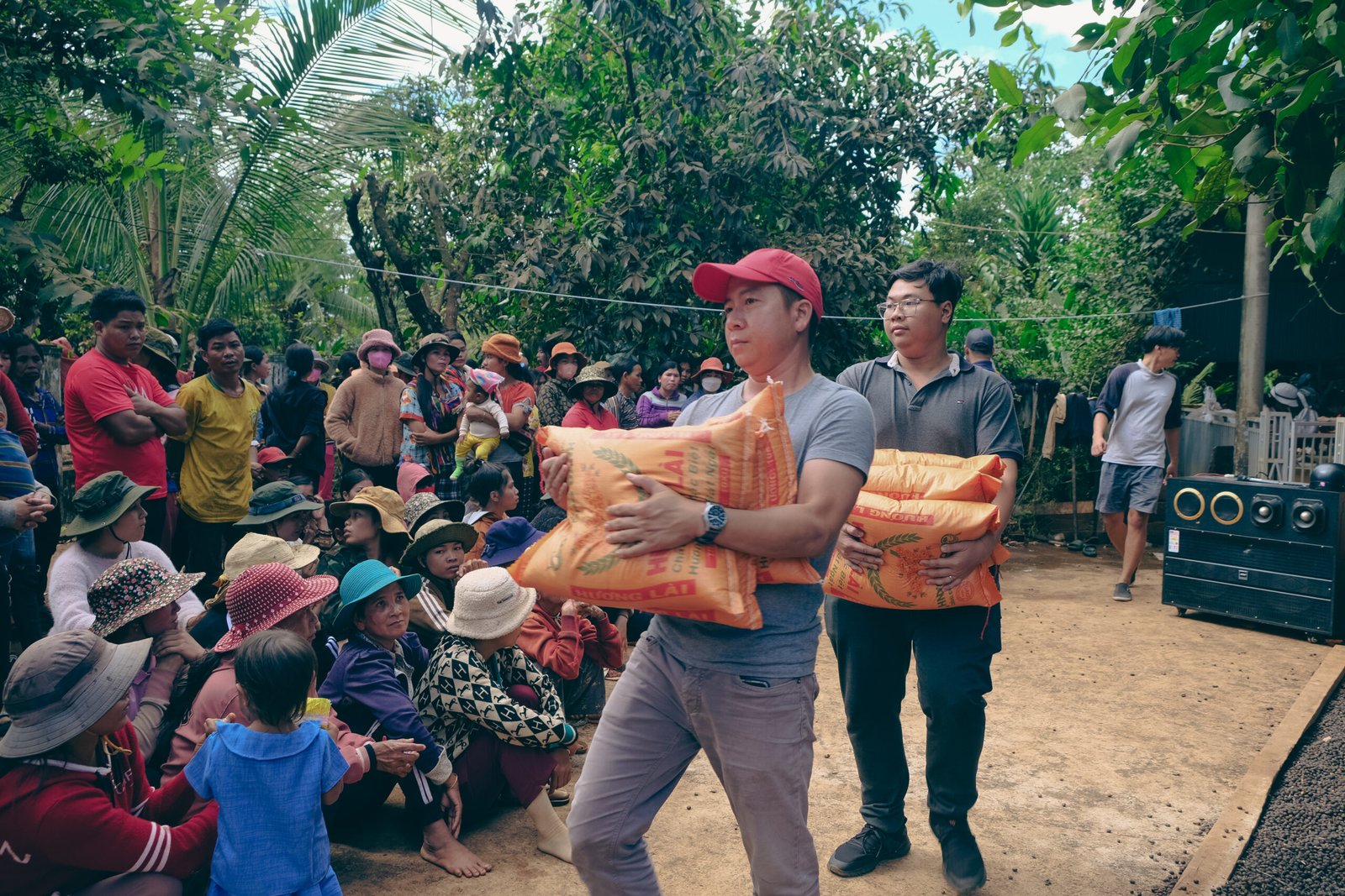 Sau hơn 12 tiếng đồng hồ di chuyển, Nhóm Giới trẻ chúng tôi đã đến và gặp gỡ người dân, cũng như trẻ em ở Vùng J’rai. Chúng tôi đã trao tặng những món quà yêu thương được chuẩn bị sẵn (1500 kg gạo, 150 bộ mền chiếu, nhu yếu phẩm, 500 phần ăn và quà cho trẻ em…). Dẫu biết những gì trao tặng cũng không bù đắp sự thiếu thôn nơi vùng cao, nhưng chúng tôi chỉ mong góp thêm chút gam màu “niềm vui”, và tin rằng Chúa sẽ tiếp tục viết nên câu chuyện của những người dân ở nơi đây.