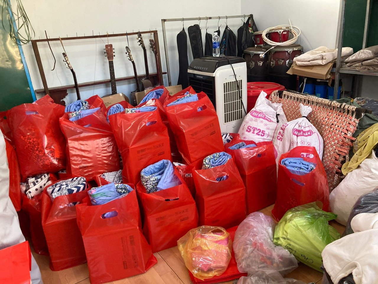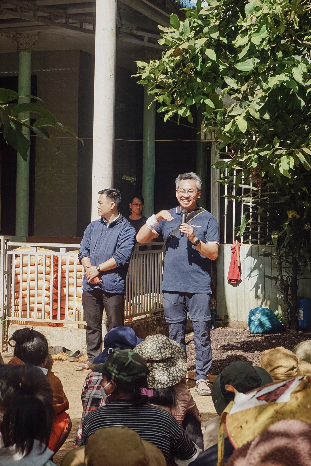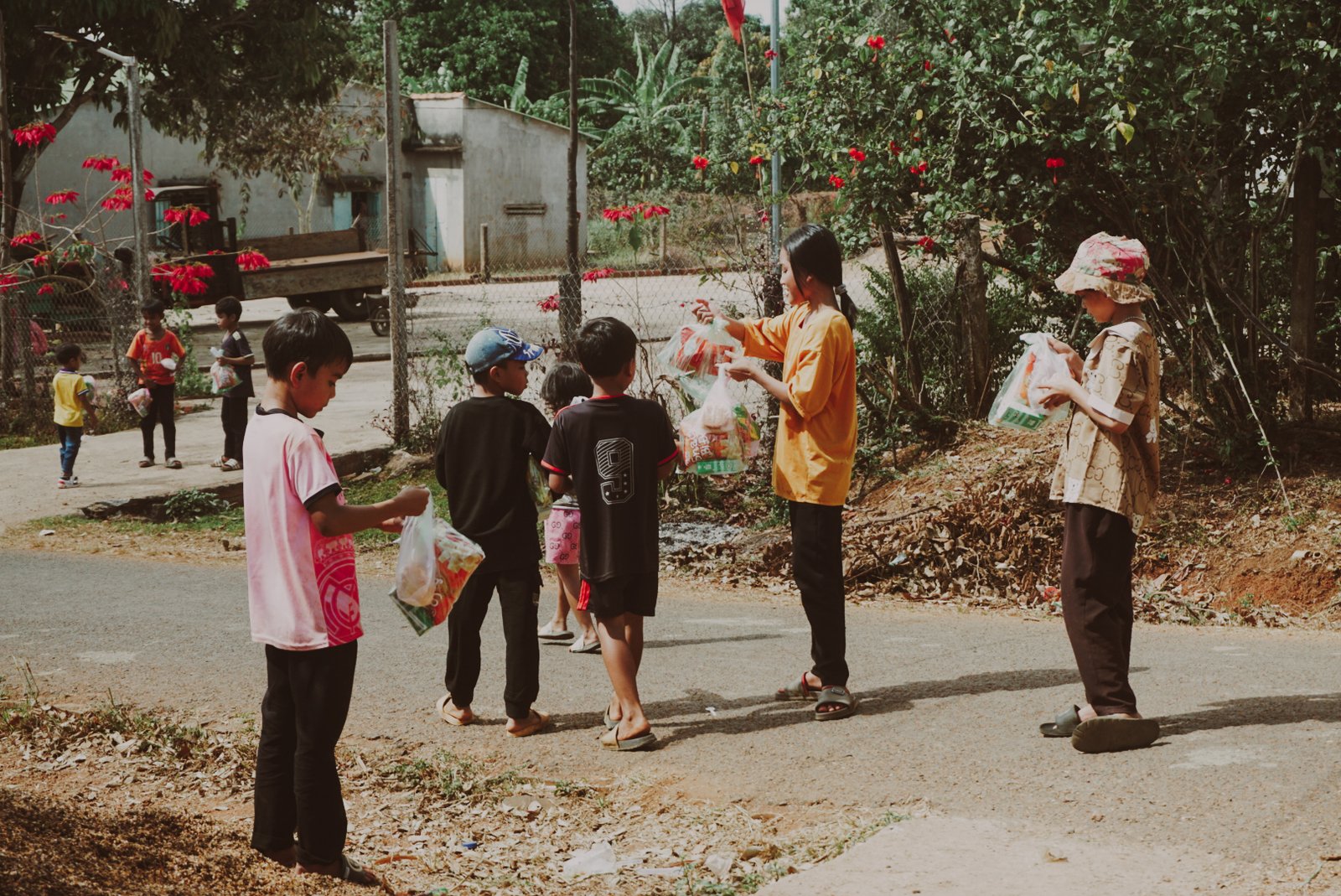 Sau hơn 12 tiếng đồng hồ di chuyển, Nhóm Giới trẻ chúng tôi đã đến và gặp gỡ người dân, cũng như trẻ em ở Vùng J’rai. Chúng tôi đã trao tặng những món quà yêu thương được chuẩn bị sẵn (1500 kg gạo, 150 bộ mền chiếu, nhu yếu phẩm, 500 phần ăn và quà cho trẻ em…). Dẫu biết những gì trao tặng cũng không bù đắp sự thiếu thôn nơi vùng cao, nhưng chúng tôi chỉ mong góp thêm chút gam màu “niềm vui”, và tin rằng Chúa sẽ tiếp tục viết nên câu chuyện của những người dân ở nơi đây.