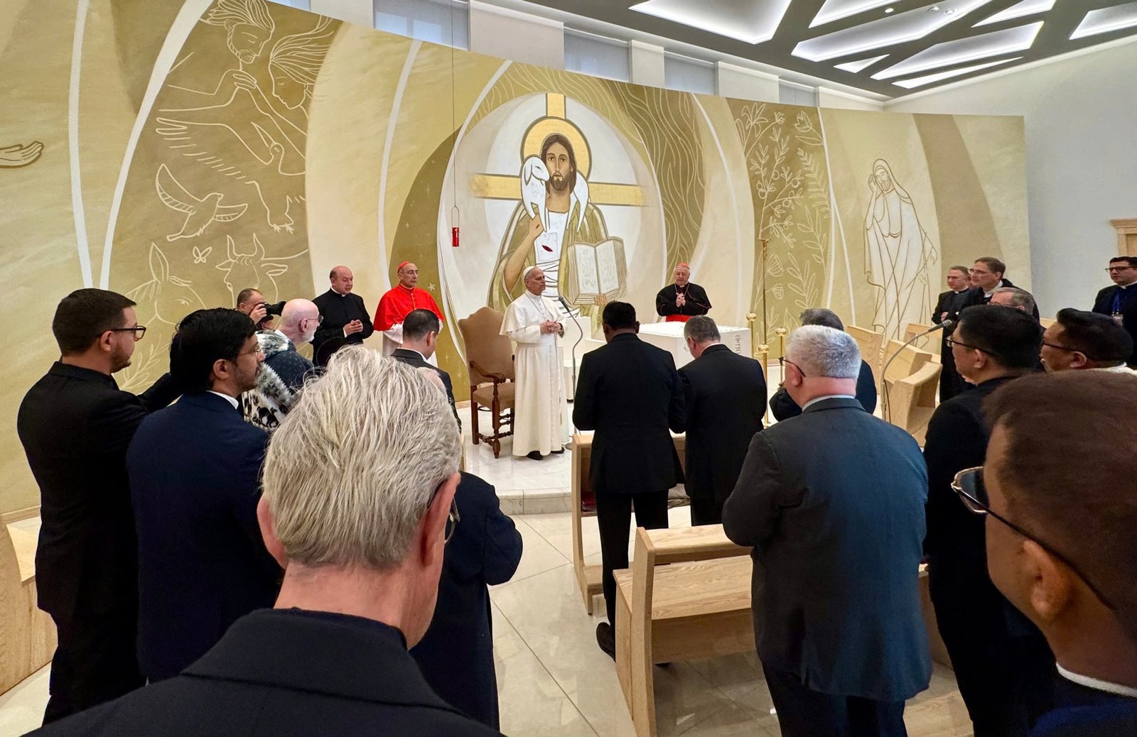 Trong huấn từ của mình, Đức Thánh Cha Lêô XIV đã muốn bắt đầu bằng những lời trong Tin Mừng theo Thánh Gioan (20,30-31), được khắc trên giảng đài của nguyện đường: “Chúa Giêsu đã làm nhiều dấu lạ khác nữa trước mặt các môn đệ, nhưng những dấu lạ đó không được ghi chép trong sách này… những điều này đã được chép lại để anh em tin”.
