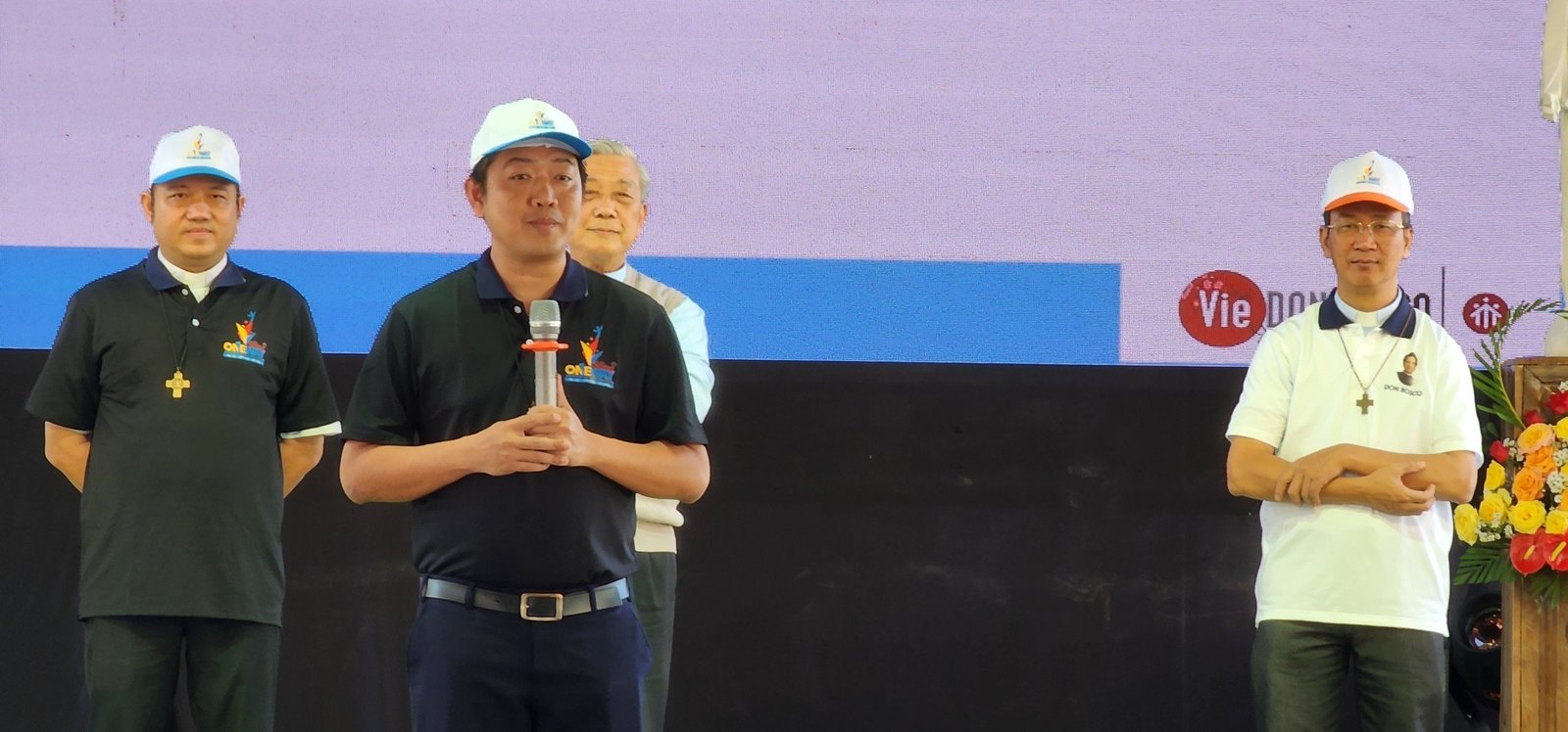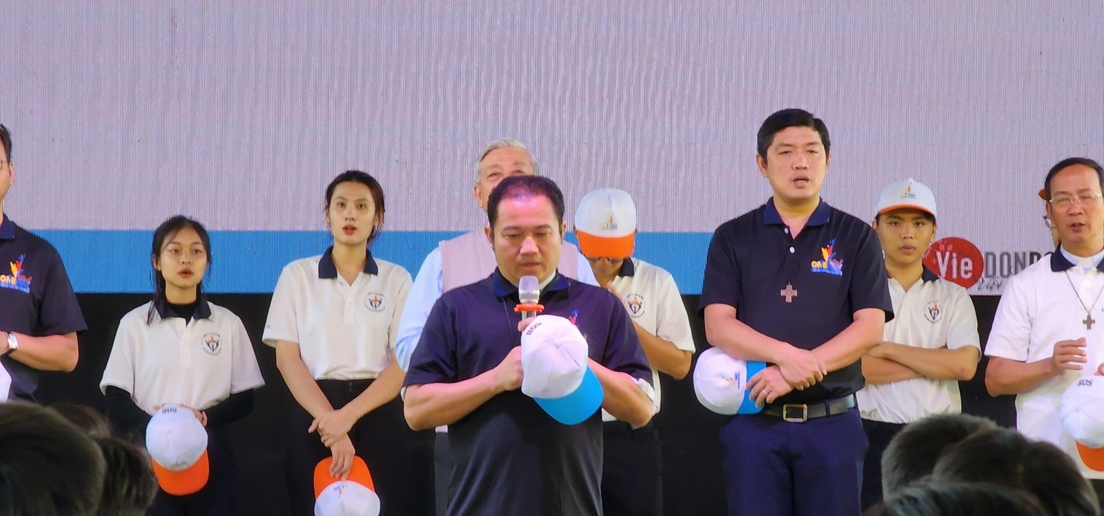 Cha Nicola Kiểu Long Hồ xin Chúa thánh hóa Đại hội và tuyên bố Khai mạc Đại hội sinh viên Don Bosco lần I năm 2023.