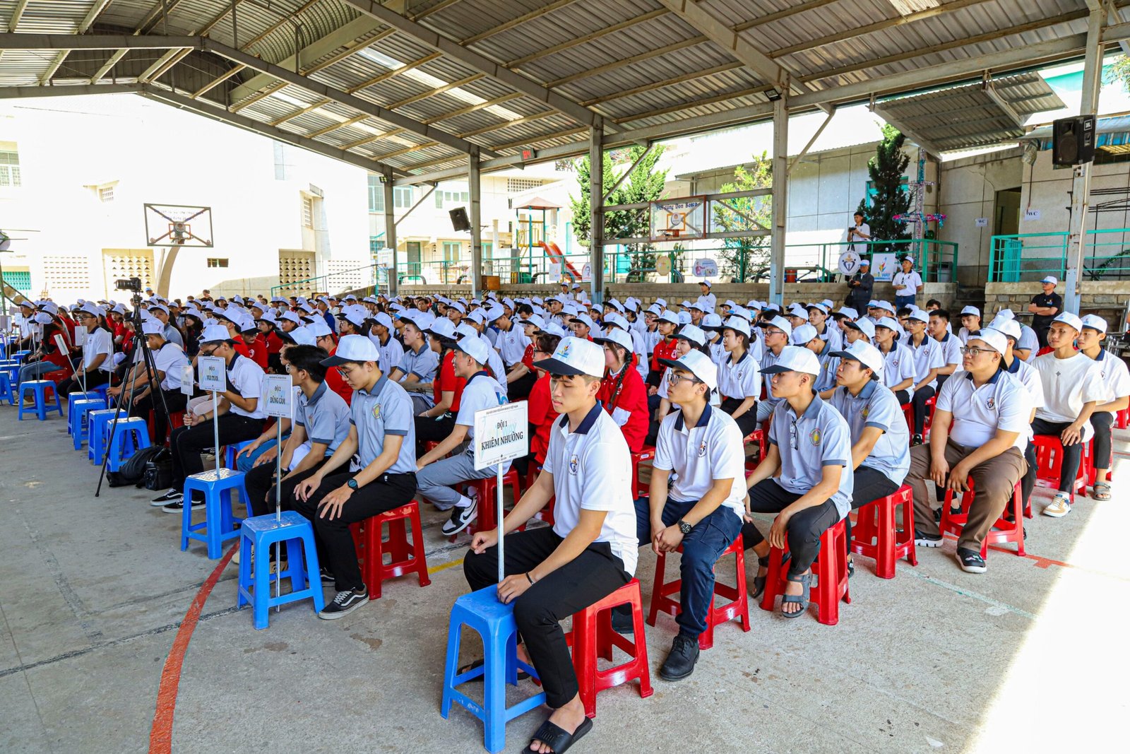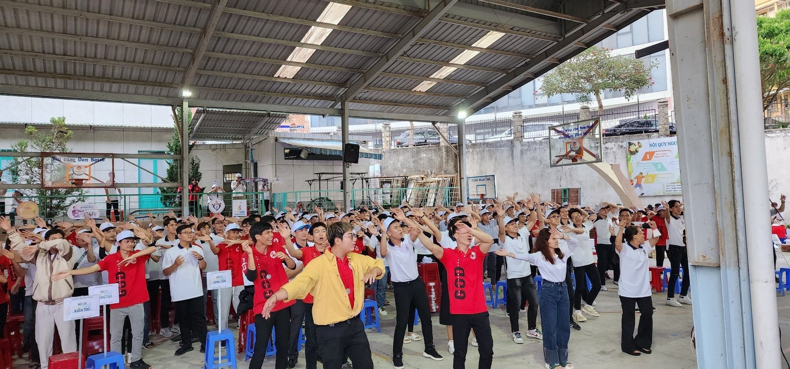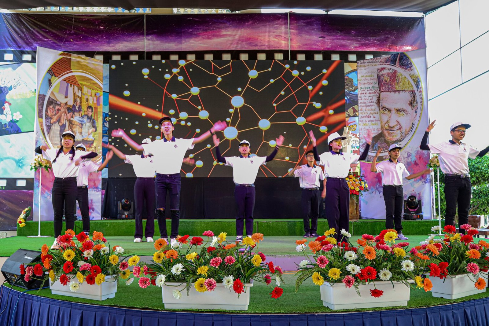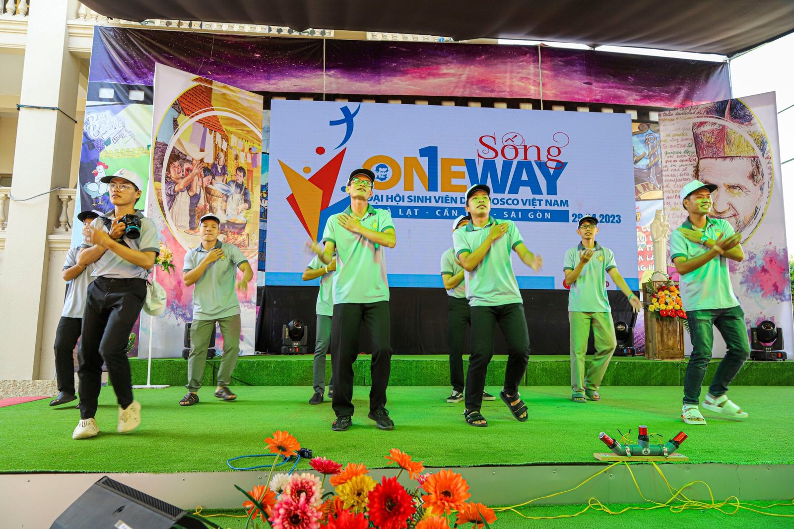 Sau vũ khúc và bằng reo chủ đề, các bạn sinh viên hân hoan chào đón Cha Giám tỉnh Dòng Salêdiêng Don Bosco Việt Nam – Barnaba Lê An Phong.