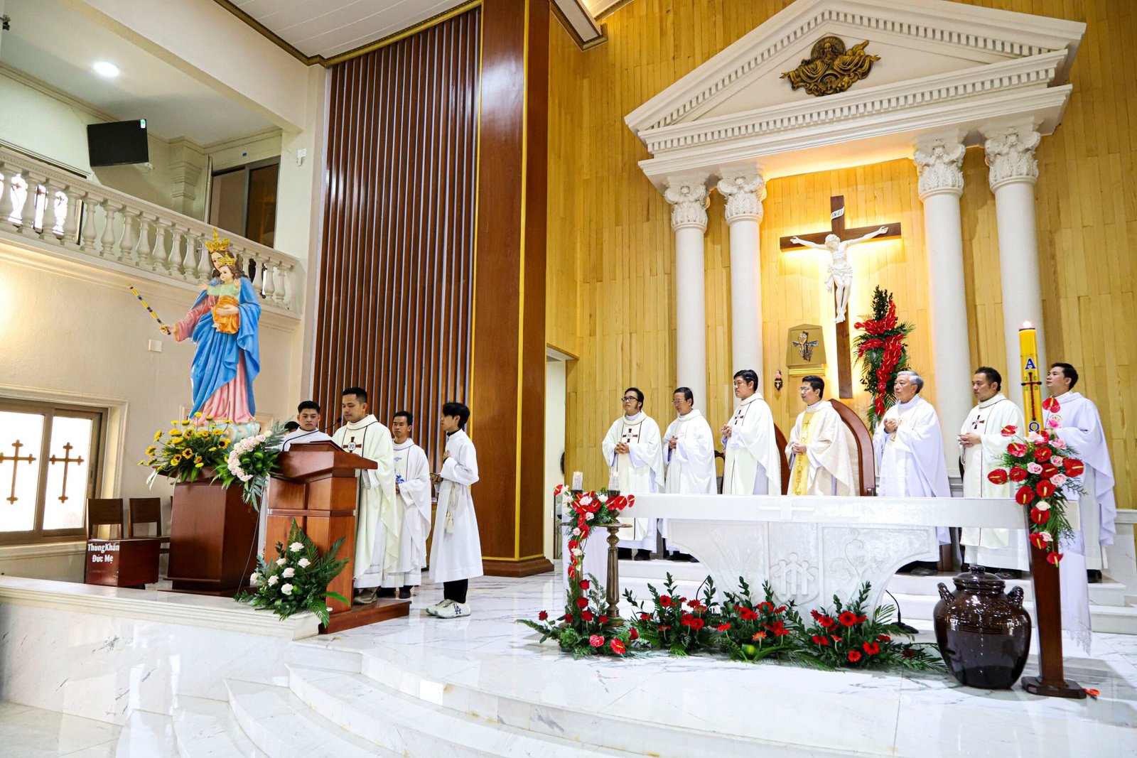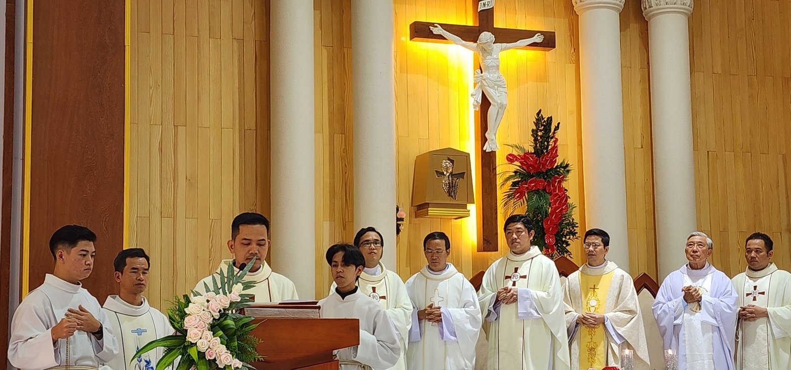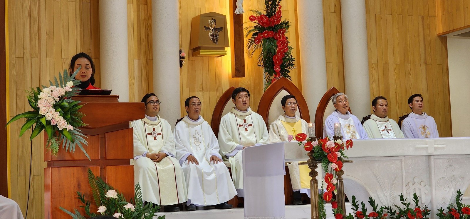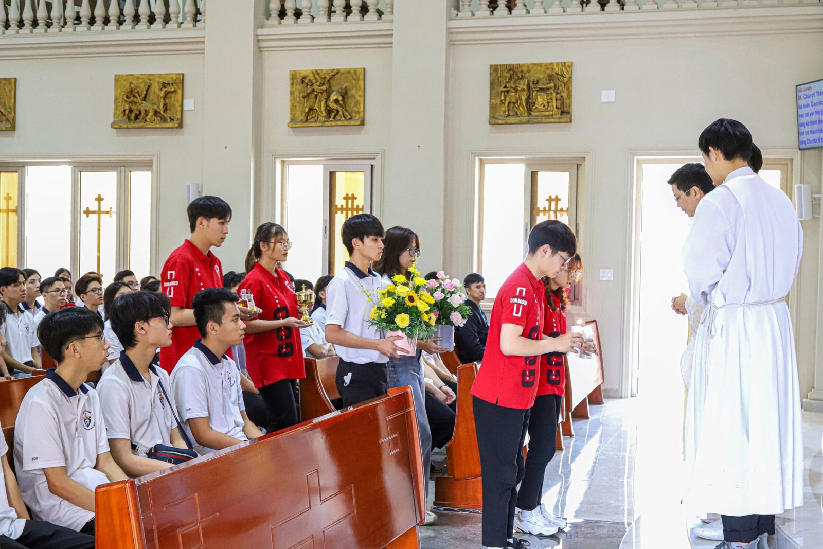 Lúc 10 giờ 30, Cha Giám tỉnh chủ sự thánh lễ tạ ơn, cùng đồng tế có quí Bề trên, Quí cha đồng hành với sinh viên.