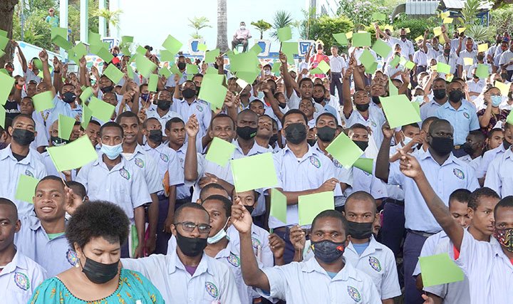 Gabutu, Port Moresby – Papua New Guinea 23/03/2022. Vào ngày 23/03 vừa qua, Cha Bề trên miền Giuse Nguyễn Thịnh Phước, đã thay mặt cha Bề Trên cả đến viếng thăm trường Kỹ Thuật Don Bosco ở Gabutu, thuộc đảo quốc Papua New Guinea. Hơn 1.000 học sinh cùng với ban giám hiệu nhà trường đã bày tỏ niềm vui với những lá cờ mầu sắc rực rỡ trên tay, chào đón cha Giuse một cách rất vui tươi và nhộn nhịp. Cùng chào đón cha Bề trên miền, có cha Bề trên Á tỉnh Gregorio Bicomong, cha Giám đốc Pedro Sachitula, cha Giám linh Ambrose Pereira, ông hiệu trưởng và một số quan khách.