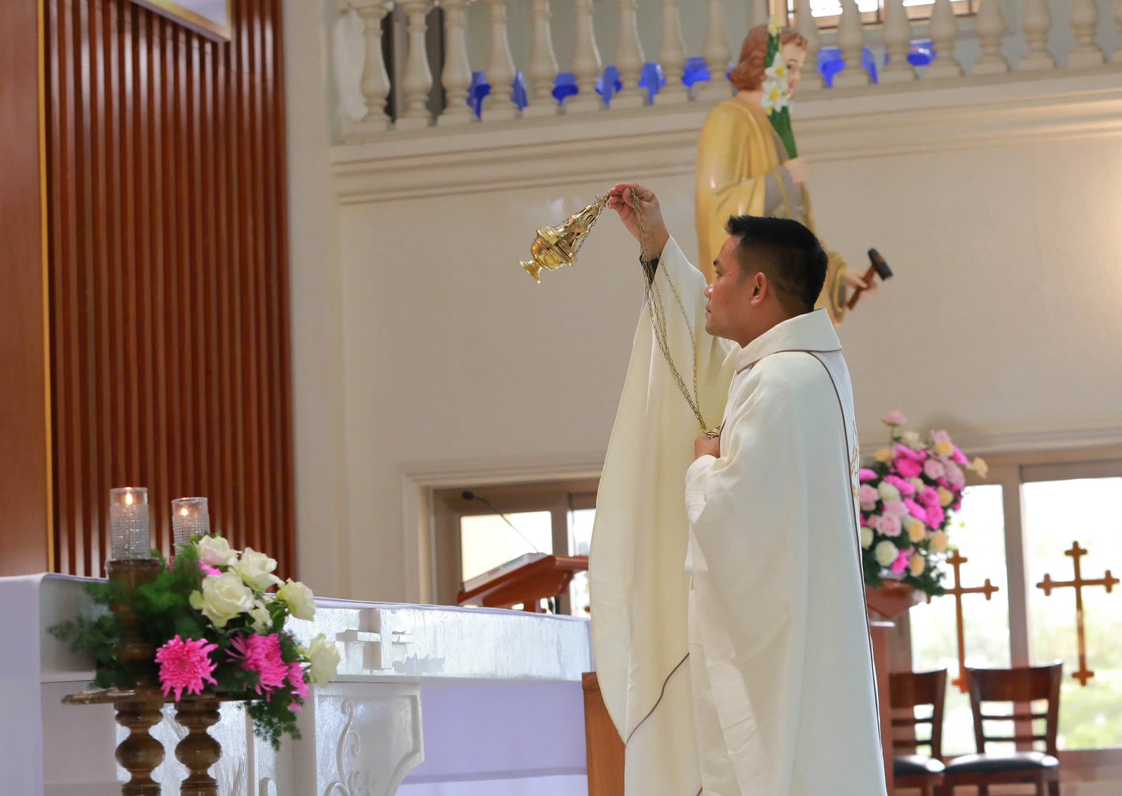 Trong bài giảng lễ, Cha Phanxicô Xaviê Trần Quốc Tuấn đã nhấn mạnh ý nghĩa quan trọng của Lễ Chúa Giêsu Thăng Thiên. Ngài khẳng định Chúa không bỏ lại chúng ta mà vẫn ở lại trong Lời Ngài, trong các Bí tích và trong chính nhịp sống yêu thương của những người tin. Ngài cũng mời gọi các bạn trẻ nỗ lực hướng về những điều thiện hảo và khơi nguồn sức mạnh ấy từ chính bản thân.