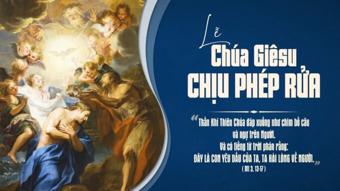 Hôm nay, toàn thể Giáo hội cử hành lễ Chúa Giêsu chịu phép rửa, một biến cố khép lại mầu nhiệm Giáng sinh và mở ra cánh cửa sứ vụ công khai của Chúa Giêsu. Nếu lễ Hiển Linh chúng ta thấy Chúa tỏ mình cho các nhà chiêm tinh qua ánh sao, thì hôm nay, Ngài tỏ mình cho toàn dân Israel qua tiếng phán từ trời và sự hiện diện của Chúa Thánh Thần.