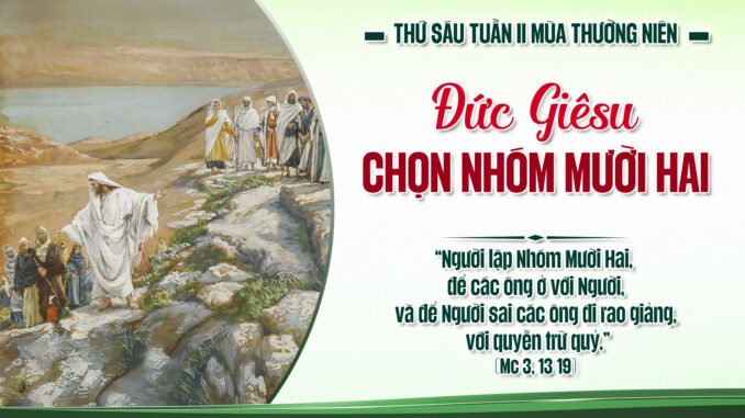 Kính thưa cộng đoàn, trên hành trình rao giảng, Đức Giêsu không đi một mình. Hôm nay, Tin Mừng Marcô dẫn chúng ta lên một ngọn núi – nơi thường diễn ra những cuộc gặp gỡ quan trọng giữa Thiên Chúa và con người. Tại đó, Người đã gọi những kẻ Người muốn để thiết lập Nhóm Mười Hai. Đây không phải là một cuộc tuyển chọn dựa trên bằng cấp hay tài năng xuất chúng, mà là một lời mời gọi xuất phát từ tình yêu tự do của Thiên Chúa. Lời Chúa hôm nay nhắc nhớ mỗi chúng ta về ơn gọi làm Kitô hữu: chúng ta được chọn không phải vì chúng ta xứng đáng, nhưng để “ở với Người” và để “được sai đi”.