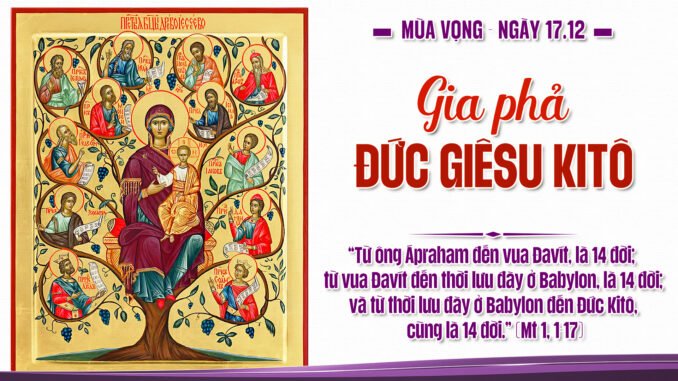 Trong Phụng vụ Mùa Vọng, đặc biệt khi ngày lễ Giáng Sinh cận kề, Giáo Hội mời gọi chúng ta suy niệm về Gia phả của Chúa Giêsu. Thánh sử Mátthêu mở đầu Tin Mừng của mình bằng cách đưa ra danh sách các thế hệ, một hành động rất quan trọng đối với độc giả Do Thái thời bấy giờ.