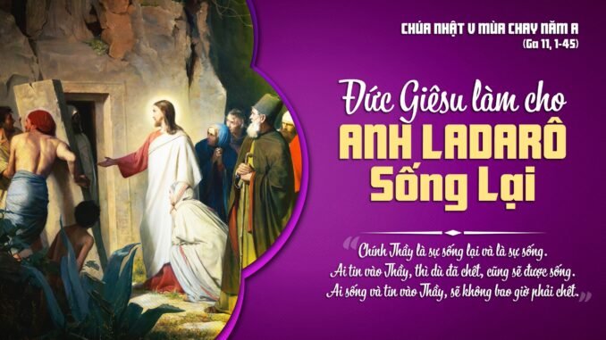 Cái chết là ẩn số lớn nhất mãi luôn đeo bám phận người. Làm người ai cũng phải chết. Ẩn số này là bài toán không có lời giải đối với bao triết gia cũng như các lãnh tụ tôn giáo từ xưa đến nay. Nhưng đáp án cho bài toán nan giải này đã được Chúa Giêsu khải thị trong trình thuật Tin Mừng hôm nay. Trước khi cho Lazarô sống lại, Chúa đã nói với Matta : “Thầy là sự Phục sinh và là Sự Sống. Ai tin vào Thầy thì dù đã chết cũng sẽ được sống. Ai sống và tin vào Thầy thì không bao giờ phải chết”. Phép lạ làm cho Lazarô trỗi dậy sau 4 ngày được mai táng trong huyệt mộ đã chứng minh quyền năng Thiên Chúa nơi Đức Giêsu.