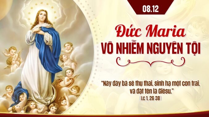 Ngày 08 tháng 12 năm 1854 Đức Thánh Cha Piô IX đã long trọng công bố tín điều Đức Maria Vô nhiễm Nguyên tội qua thông điệp “ Ineffabilis Deus”. Bốn năm sau, khi hiện ra với thánh nữ Bernadetta tại hang đá Lộ đức, chính Đức Mẹ đã tái khẳng định: “ Ta là Đấng Vô nhiễm nguyên tội”. Cũng vào ngày này năm 2016, Giáo hội đã khai mở năm thánh tôn kính Lòng Thương Xót Chúa. Không phải tình cờ mà Giáo hội cử hành phụng vụ tôn kính Mẹ Vô nhiễm thai trong mùa vọng. Và cũng không phải là sự trùng hợp ngẫu nhiên mà Đức Thánh Cha Phanxicô chọn ngày lễ hôm nay để mở cửa năm thánh tôn vinh Lòng Thương Xót Chúa. Mẹ Maria Vô nhiễm chính là Evà mới đã chiến thắng con rắn xưa, mở ra cho chúng ta kỷ nguyên cứu độ, để cùng với Giáo hội chúng ta sống tâm tình mùa vọng mong chờ Đấng Cứu thế, Đấng sẽ đến trong ngày cánh chung để hoàn tất ơn cứu độ theo hoạch định của Chúa Cha. Đồng thời Mẹ cũng được gìn giữ khỏi vết nhơ nguyên tội để cưu mang Đức Giêsu, Đấng đã đến trần gian nhằm diễn bày lòng thương xót Chúa cho nhân loại tội lỗi. Mẹ Đấng Cứu thế cũng chính là Mẹ của Lòng Thương Xót (Mater Misericordiae).