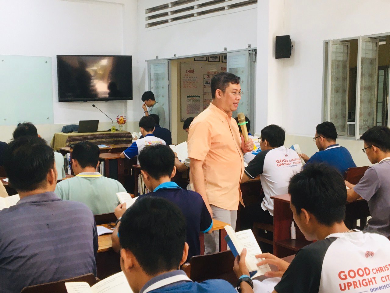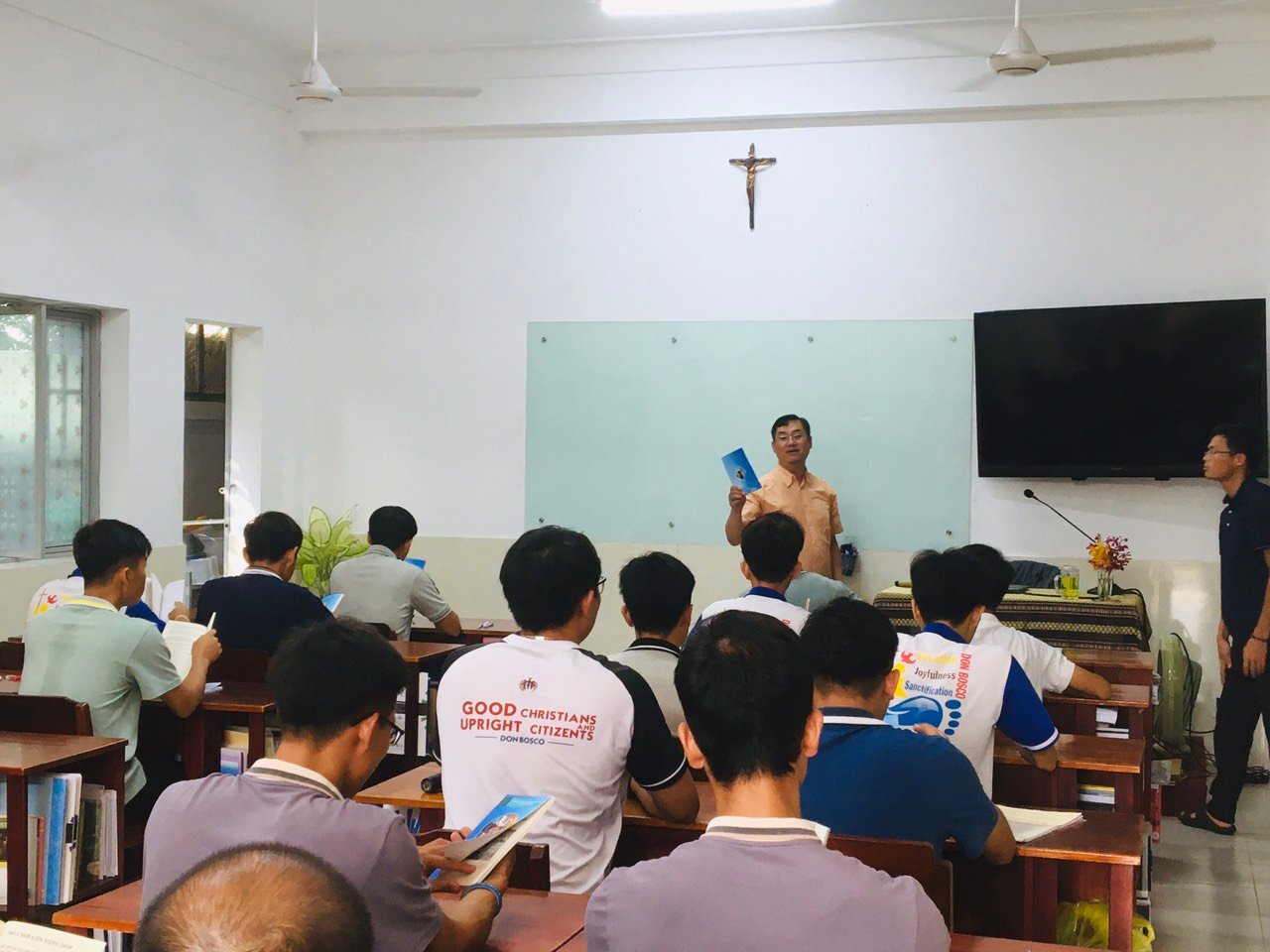 Sáng ngày 13/05/2023, buổi tập huấn tông đồ hè 2023 dành cho Tiền Tập Sinh Don Bosco đã diễn ra tại Cộng thể Tiền Tập Viện Đaminh Saviô Cầu Bông từ 8h00-11h00. Chương trình được thực hiện bởi ban MVGT Tỉnh dòng, do Cha Giuse Nguyễn Xuân Quang, SDB chủ trì.