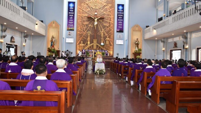 Tiếp theo là nghi thức tiễn biệt và linh cữu của cha Giuse được an táng tại nghĩa trang Giáo xứ Tân Thịnh, Hóc Môn, Tp HCM.
