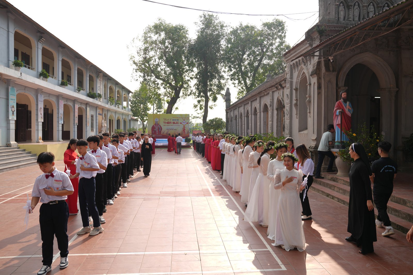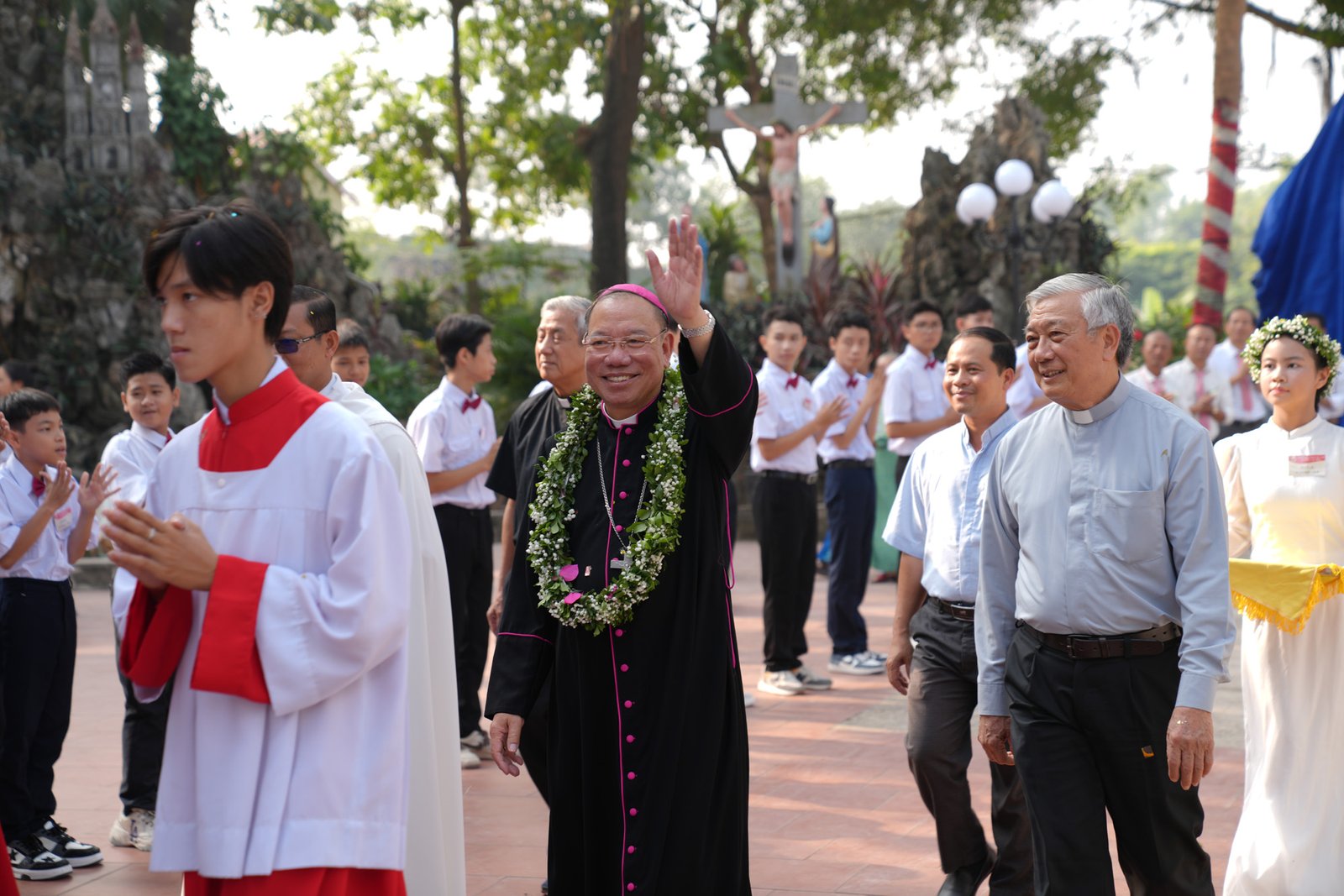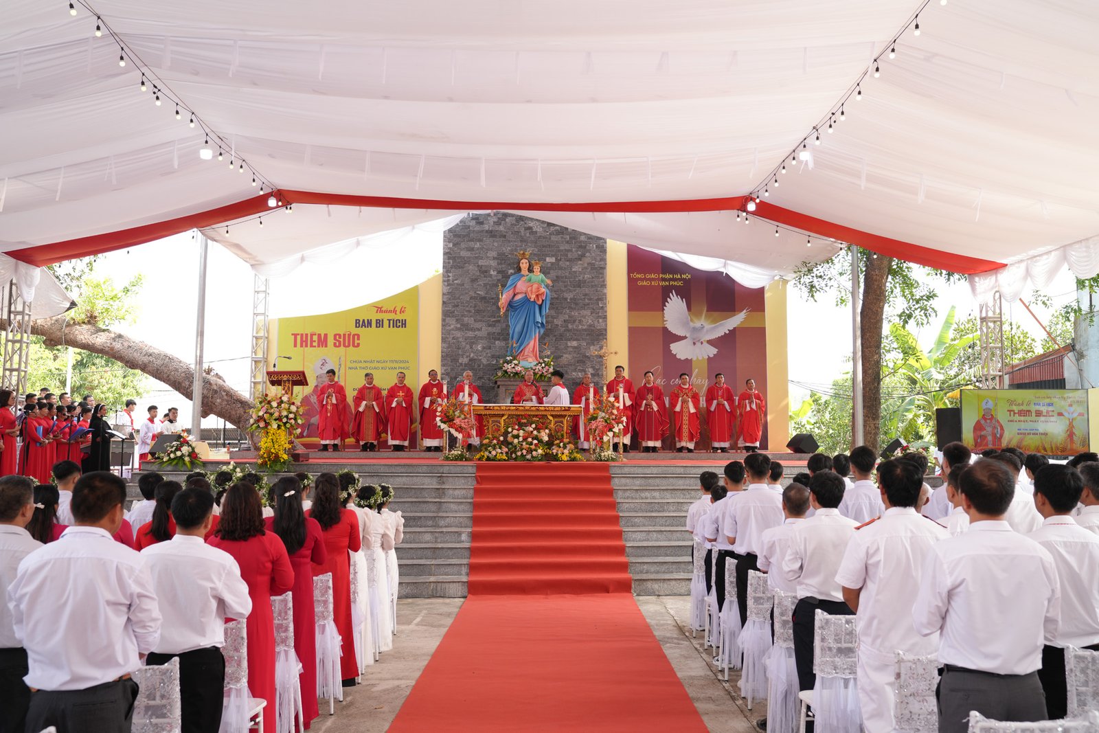 Vào lúc 9h30 sáng Chủ Nhật, ngày 17 tháng 11 năm 2024, Giáo xứ Don Bosco Vạn Phúc đã hân hoan chào đón Đức Tổng Giám Mục Giuse Vũ Văn Thiên, Tổng Giáo Phận Hà Nội, đến thăm và cử hành Thánh lễ Ban Bí Tích Thêm Sức cho 33 em thiếu nhi trong giáo xứ. Đồng tế với Đức Tổng Giám Mục Giuse có cha Tôma Vũ Kim Long, Bề Trên Phụ Tỉnh Mẹ La Vang (Don Bosco Miền Bắc), cha Chánh xứ Martinô Mai Quyết Thắng, SDB, cùng quý cha các xứ lân cận và quý cha trong Cộng đoàn Don Bosco Vạn Phúc. Đông đảo giáo dân, đặc biệt là 33 em lãnh nhận Bí Tích Thêm Sức cùng cha mẹ và người đỡ đầu, cũng hiện diện và hiệp dâng Thánh lễ.