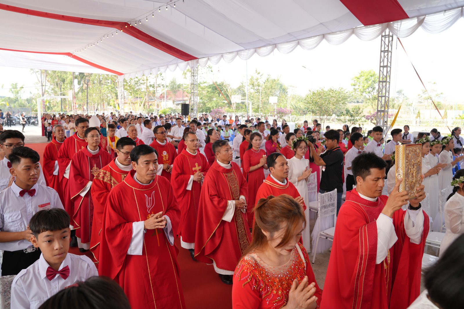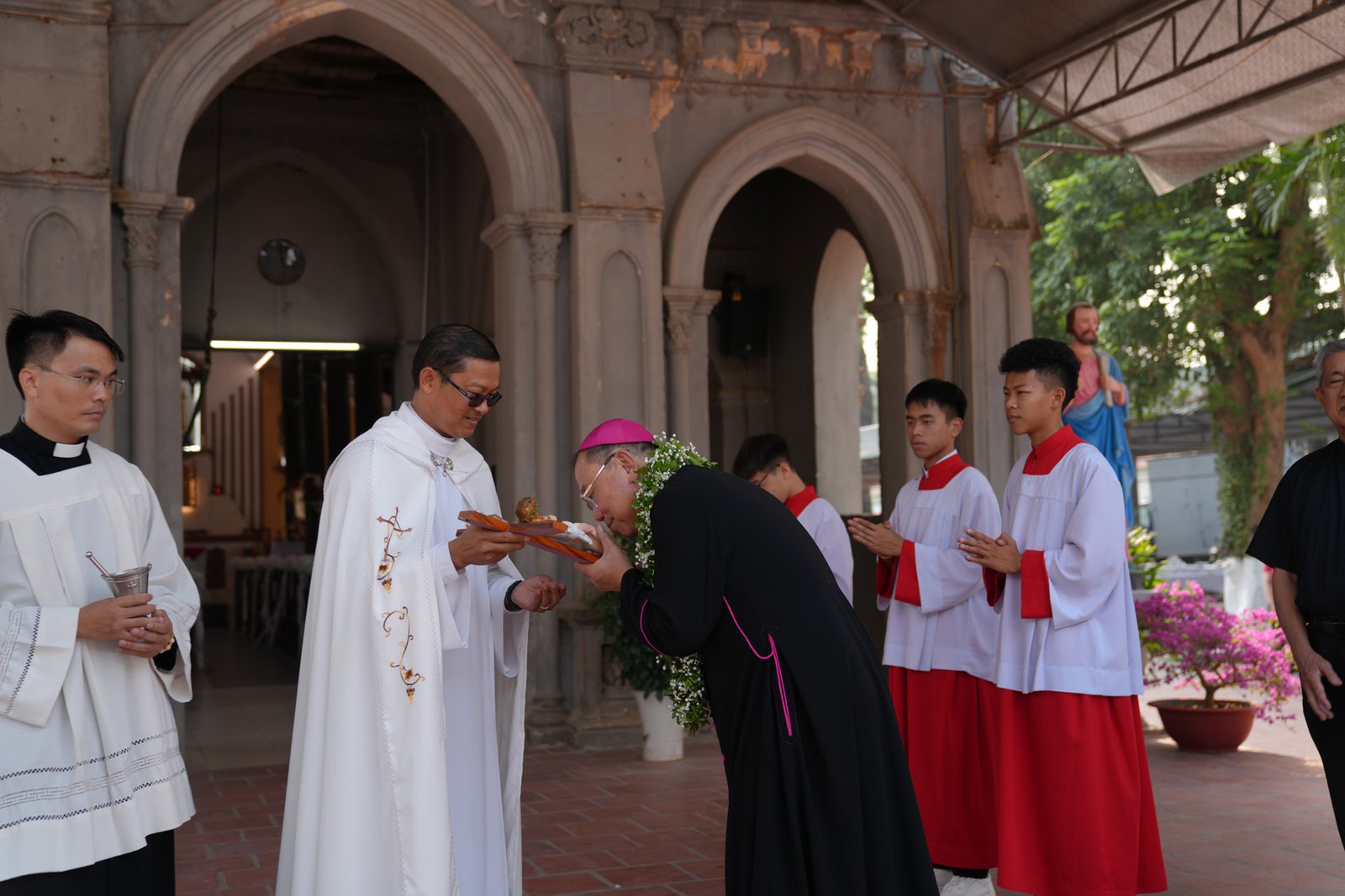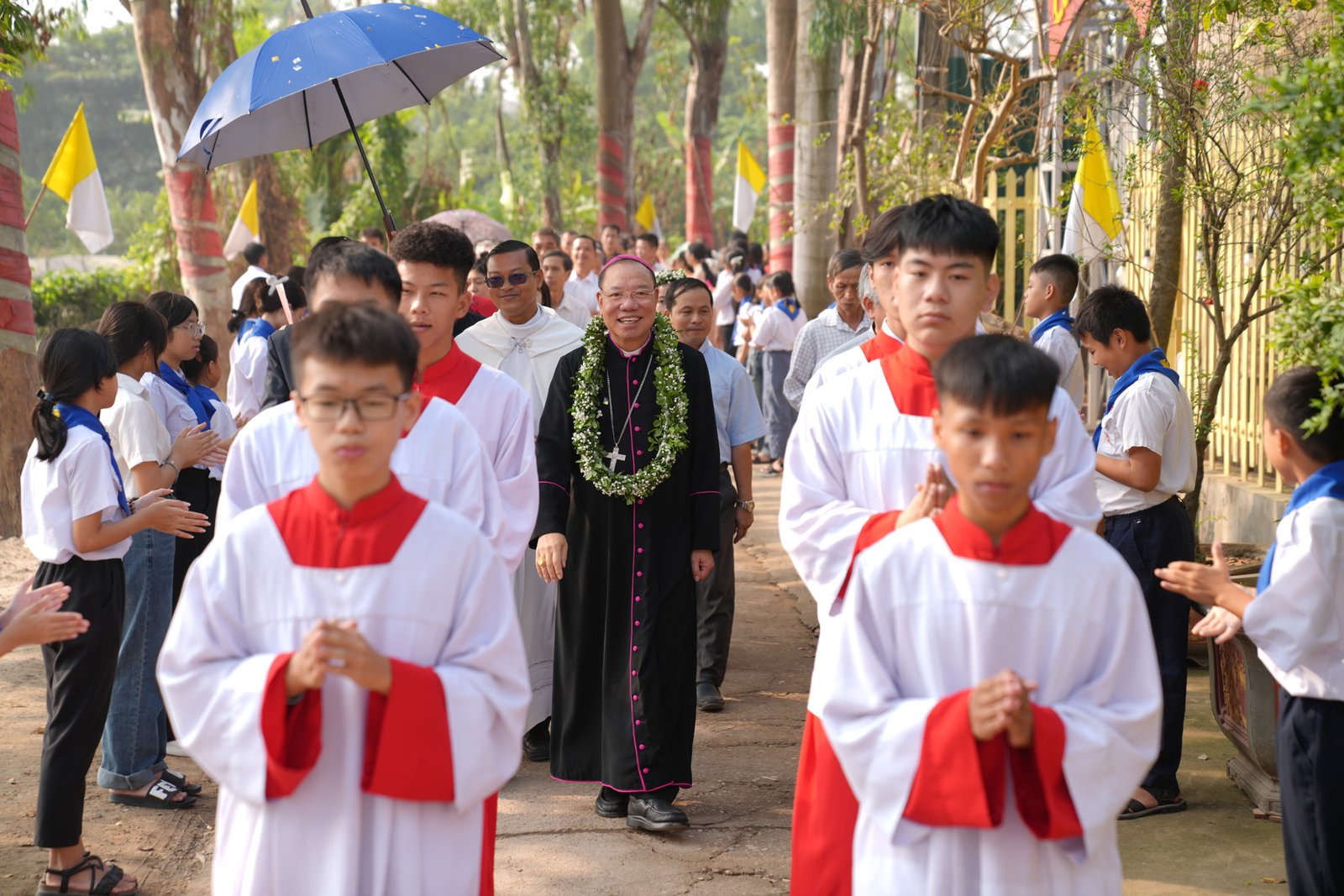 Vào lúc 9h30 sáng Chủ Nhật, ngày 17 tháng 11 năm 2024, Giáo xứ Don Bosco Vạn Phúc đã hân hoan chào đón Đức Tổng Giám Mục Giuse Vũ Văn Thiên, Tổng Giáo Phận Hà Nội, đến thăm và cử hành Thánh lễ Ban Bí Tích Thêm Sức cho 33 em thiếu nhi trong giáo xứ. Đồng tế với Đức Tổng Giám Mục Giuse có cha Tôma Vũ Kim Long, Bề Trên Phụ Tỉnh Mẹ La Vang (Don Bosco Miền Bắc), cha Chánh xứ Martinô Mai Quyết Thắng, SDB, cùng quý cha các xứ lân cận và quý cha trong Cộng đoàn Don Bosco Vạn Phúc. Đông đảo giáo dân, đặc biệt là 33 em lãnh nhận Bí Tích Thêm Sức cùng cha mẹ và người đỡ đầu, cũng hiện diện và hiệp dâng Thánh lễ.