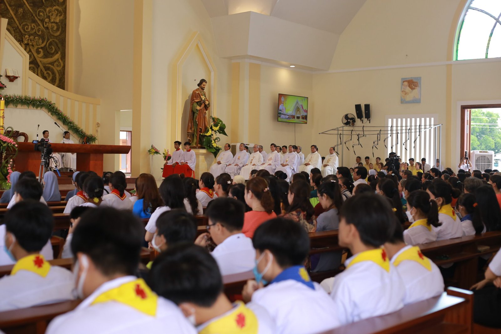 Thánh lễ khép lại với phép lành trọng thể được Đức Cha sốt sắng ban cho cộng đoàn. Sau đó, mọi người tiếp tục kéo dài niềm vui bằng bữa cơm gia đình trong khuôn viên của Giáo xứ. Xin Thiên Chúa tiếp tục tuôn tràn muôn Ơn Lành xuống trên các vị mục tử và đoàn chiên của Giáo xứ Don Bosco Tân Cang.