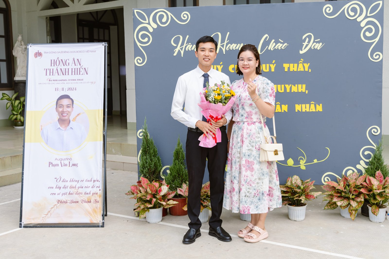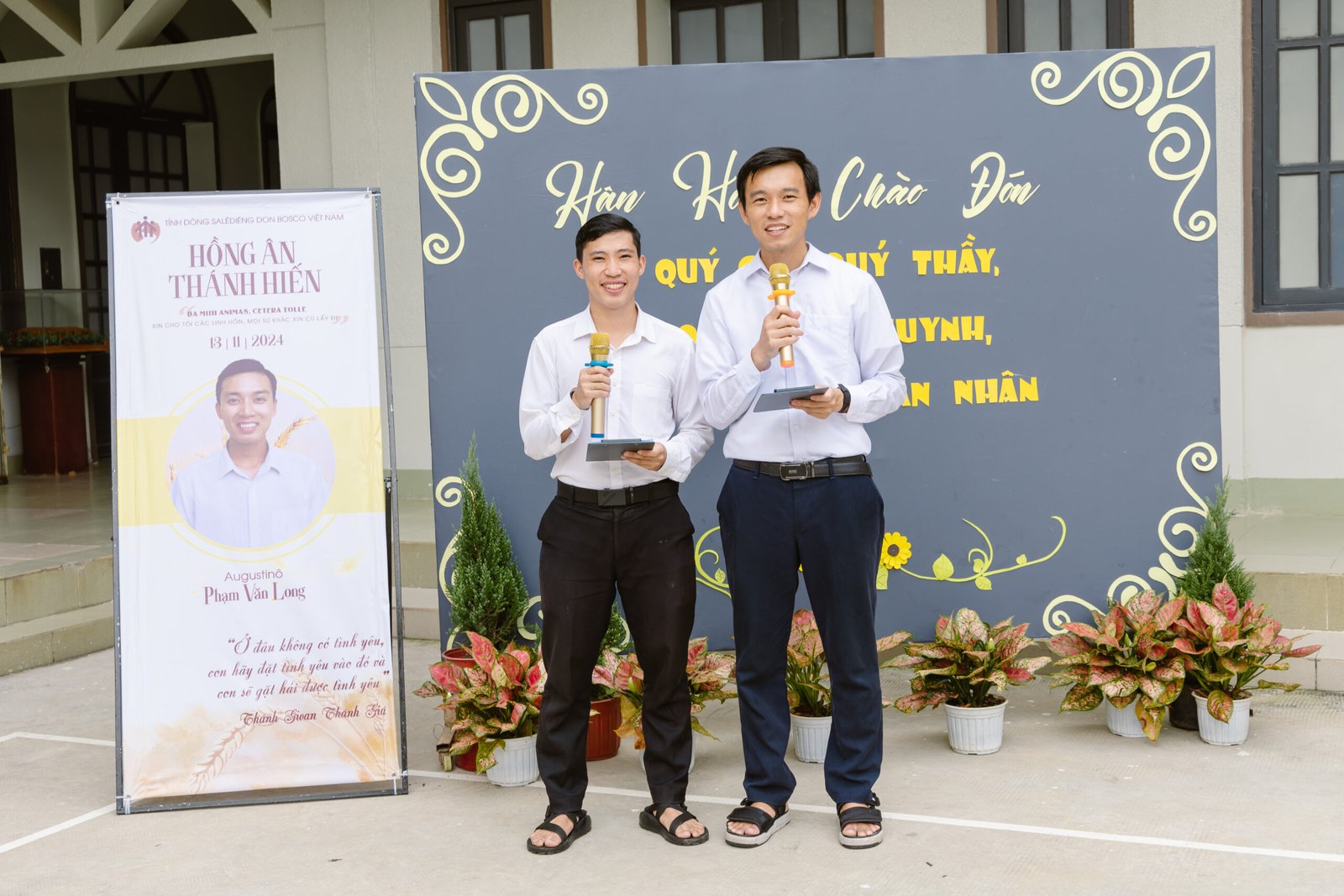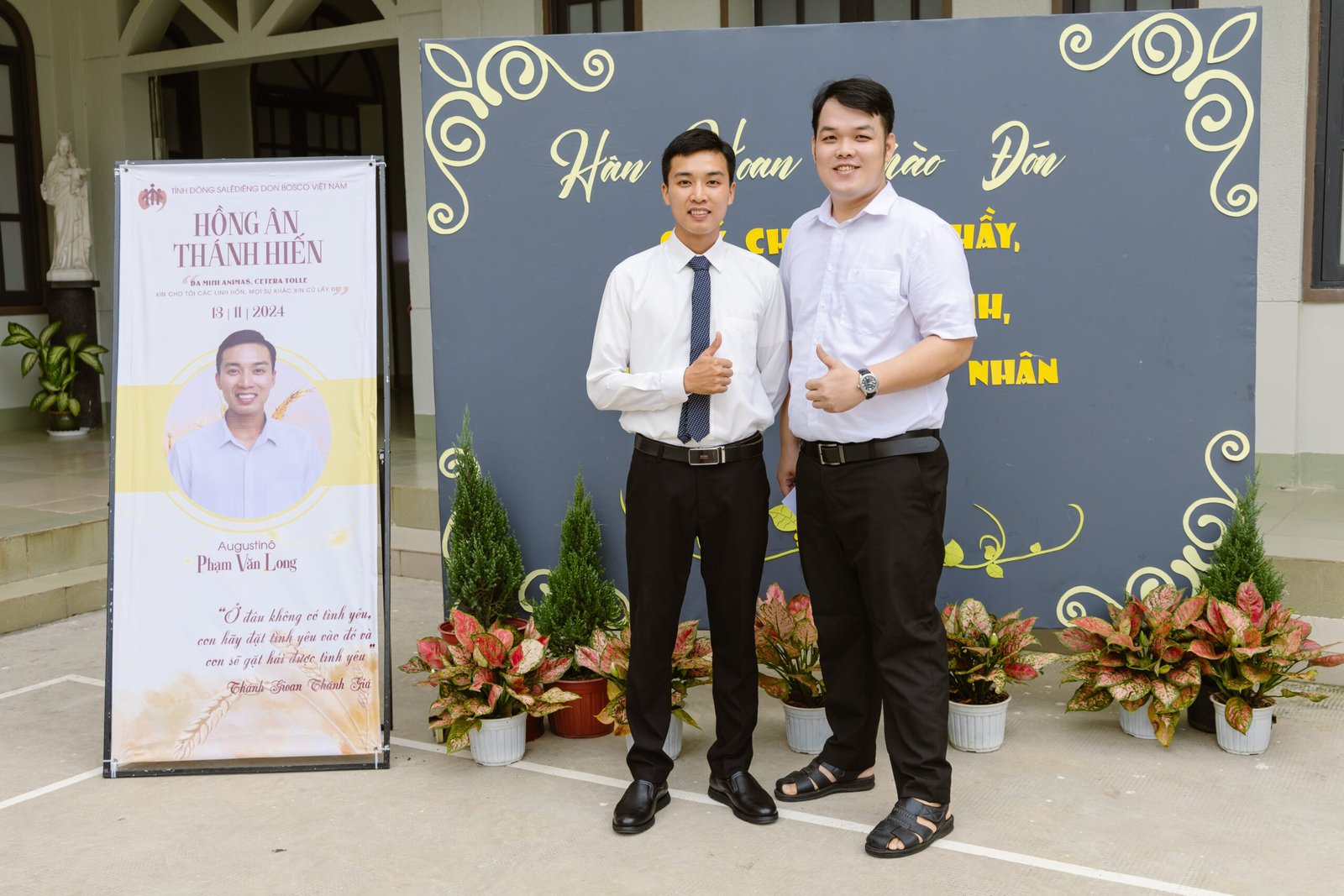 Kết thúc phần giảng lễ là phần nghi thức thánh hiến Salêdiêng: trước sự hiện diện của cha Giám Tỉnh Barnaba đại diện Bề Trên Cả, với sự chứng kiến của hai nhân chứng là cha Gioan Nguyễn Văn Kích và Sư huynh Giuse Phạm Hùng Cường, cùng cộng đoàn dân Chúa, thầy Augustino Phạm Văn Long đã tự do tuyên khấn dâng hiến trọn vẹn đời mình cho Thiên Chúa qua việc cam kết sống vâng phục, nghèo khó và thanh khiết theo đường lối Phúc Âm đã được vạch ra trong Hiến luật Salêdiêng. Nghi thức kết thúc với phần trao huy hiệu và Hiến luật Tu hội. Thánh lễ được tiếp tục với phần phụng vụ Thánh Thể.