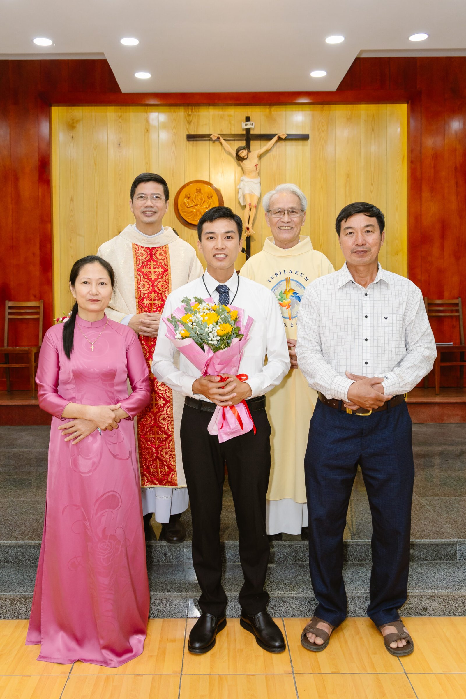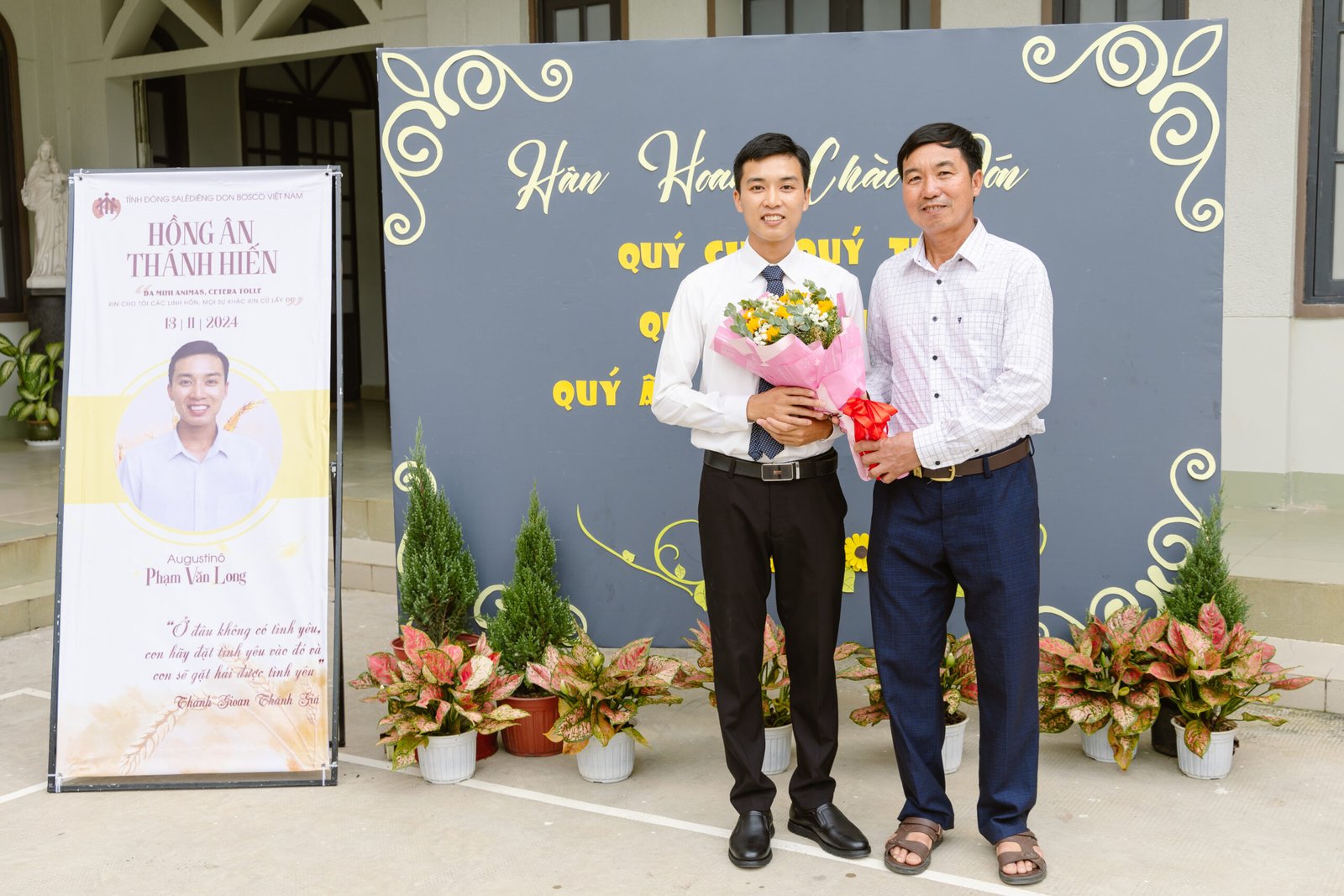 Kết thúc thánh lễ, gia đình thầy Augustino Phạm Văn Long và anh em Tập sinh lớp Artemide Zatti đã chụp hình lưu niệm cùng Cha Giám tỉnh, quý cha và quý thầy sư huynh. Sau Thánh lễ mọi người đã cùng nhau chung chia niềm vui trong bữa tiệc thân mật đậm tình gia đình.