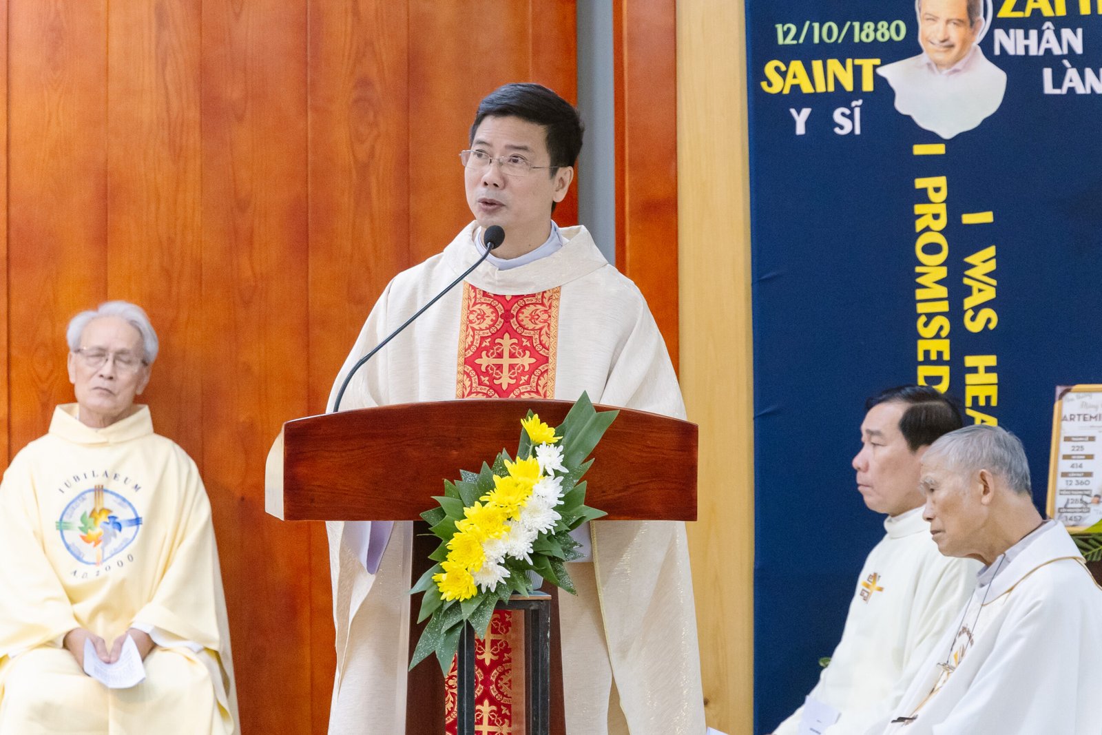 Trong phần chia sẻ Lời Chúa, cha Giám tỉnh Barnaba đã nhấn mạnh về ba thái độ của con người đối với nhau qua dụ ngôn “Người Samaritano nhân hậu” trong Tin Mừng. Thái độ đầu tiên là “Chiếm đoạt – cướp của người khác”, ngày nay có rất nhiều người bất chấp để cướp của người khác: cướp tiền của, cướp tình yêu, … Thái độ thứ hai là “Chuyện của anh, không phải chuyện của tôi”, đây là một thái độ được chấp nhận và rất phổ biến. Thật vậy, người ta có thể ngó lơ mọi người và mọi sự kiện xung quanh mình, cho rằng những chuyện đó không liên quan tới bản thân. Thái độ thứ ba là “Người bao đồng” đây là những người xem chuyện của người khác là của mình, thậm chí khi lo cho người khác bản thân họ có thể bị thiệt thân hay rước hoạ vào thân. Nhưng thái độ thứ ba chính là thái độ của người Samaritano đã chọn và thánh Artemide Zatti cũng đã sống trọn vẹn Đức ái Mục Tử qua thái độ sống ấy. Thái độ “bao đồng” được Tin Mừng mời gọi mỗi người tín hữu sống theo, đặc biệt đối với người tu sĩ Salêdiêng. Cha Giám Tỉnh đã nhắn nhủ rằng: bước theo ơn gọi Salêdiêng là bao đồng “ôm lấy” những chuyện của người trẻ, của những thanh thiếu niên nghèo khổ, bị bỏ rơi. Như Don Bosco, người bước theo Đức Kitô bước trên giàn hoa hồng nhưng chân cũng rướm máu vì gai nhọn, đây chính là Thập giá Chúa đã trao riêng cho người Salêdiêng và cũng là con đường nên thánh Chúa đã dành cho chúng ta.