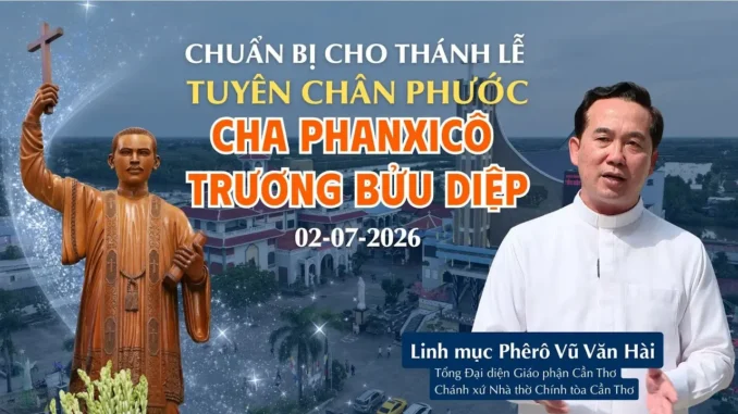 WHĐ (27/01/2026) – Linh mục Phêrô Vũ Văn Hài, Tổng Đại diện Giáo phận Cần Thơ, Chánh xứ Nhà thờ Chính tòa Cần Thơ, chia sẻ những thông tin chính thức liên quan đến công tác chuẩn bị cho Thánh lễ Tuyên Chân phước Cha Phanxicô Xaviê Trương Bửu Diệp, dự kiến cử hành vào ngày 02/7/2026.