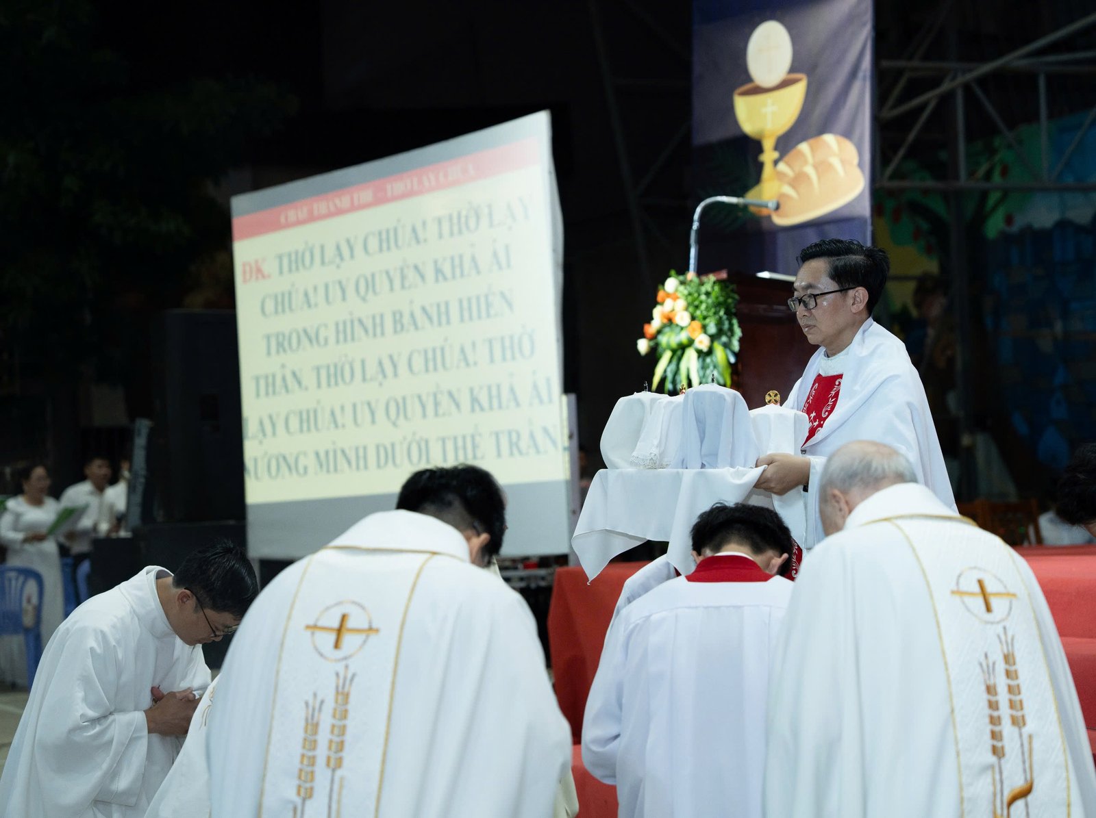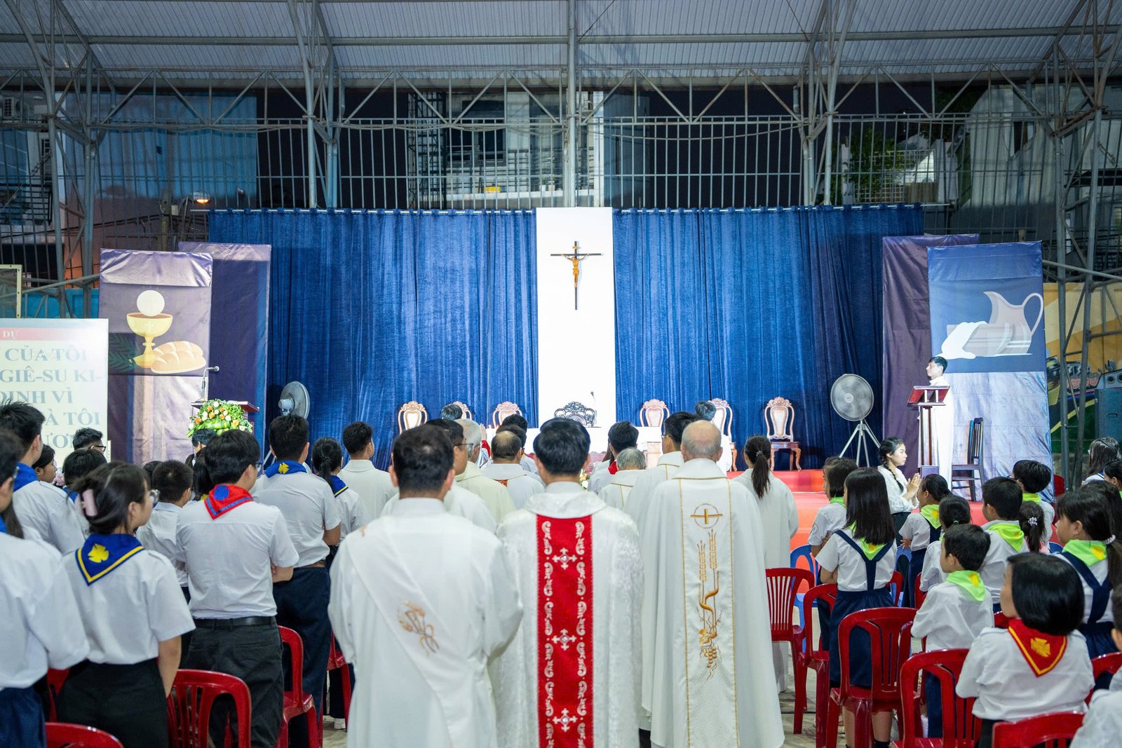 Thánh lễ do Cha Phó Giám đốc Giuse Vũ Đức Huân, SDB chủ tế. Trong sự trang nghiêm của phụng vụ, cộng đoàn đã cùng nhau tái hiện biến cố Chúa Giêsu thiết lập Bí tích Thánh Thể và Chức linh mục.