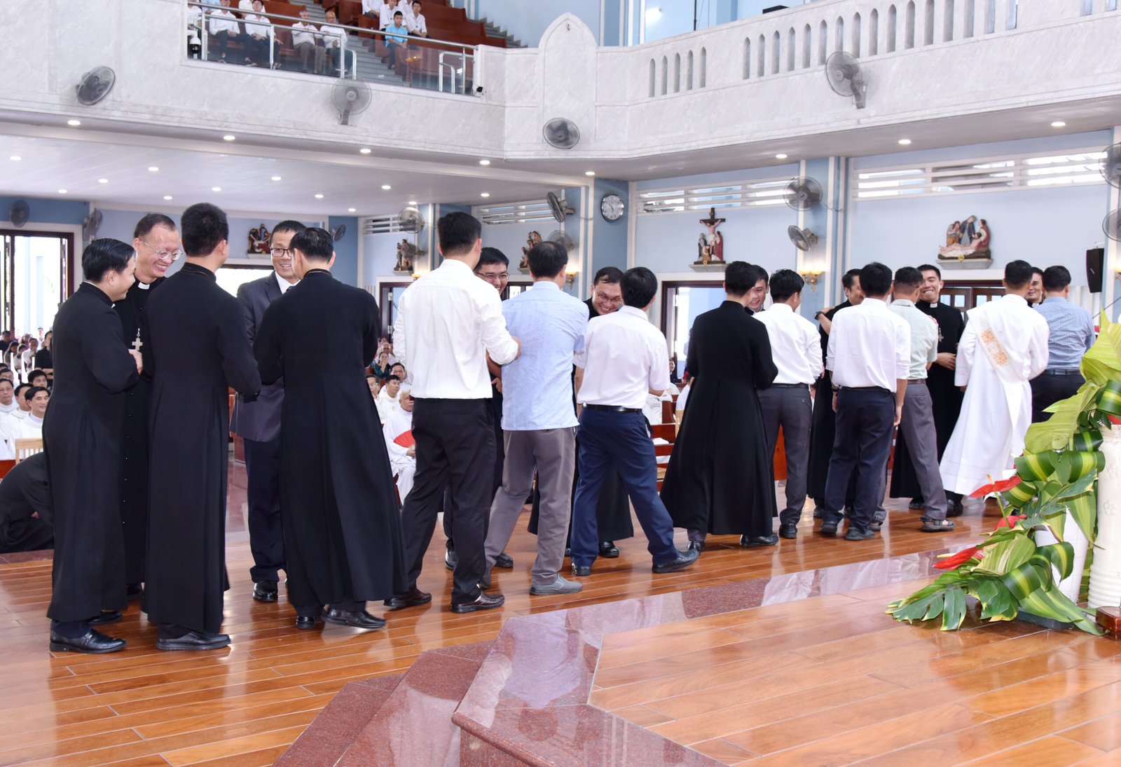 Nghi thức Tuyên khấn được tiếp tục và kết thúc tốt đẹp trong bầu khí trang nghiêm và linh thánh. Quý cha đồng tế trên gian cung thánh đã đại diện cộng đoàn bày tỏ nghĩa cử chia vui và chúc mừng quý thầy trong giây phút trọng đại.