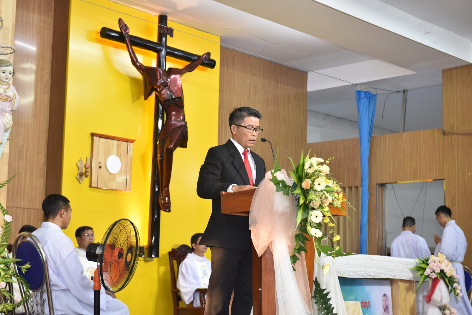 Trước khi kết thúc Thánh lễ, cha Phêrô Phạm Văn Bộ – Giám đốc cộng thể Thánh Tâm Ba Thôn đã cám ơn cha giám tỉnh và toàn thể cộng đoàn trong các vai trò khác nhau, đã hiện diện, phục vụ và cầu nguyện cho các Tân khấn sinh – những người em út trong Gia đình Salêdiêng.