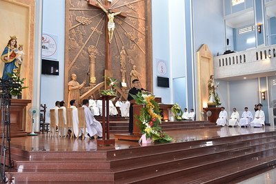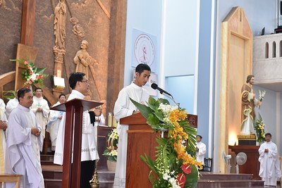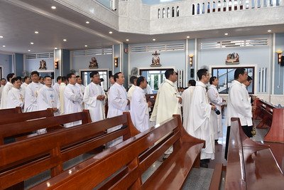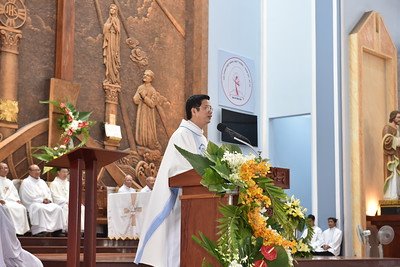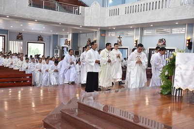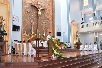 Đúng 8h30, Thánh lễ tạ ơn bắt đầu trong bầu khí ấm cúng và linh thiêng với bài ca nhập lễ mang ý nghĩa về vẻ đẹp của đời Tận hiến. Chủ sự thánh lễ là cha Barnaba Lê An Phong.
