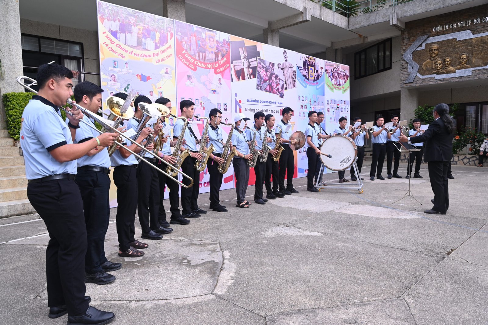 Từ 8 giờ, khuôn viên Học viện Don Bosco Đà Lạt rộn ràng với tiếng kèn, tiếng nhạc do một số nhạc công Ban kèn Vạn Thành và các Thầy biểu diễn để chào đón quý Cha, quý Tu sĩ và các tham dự viên.