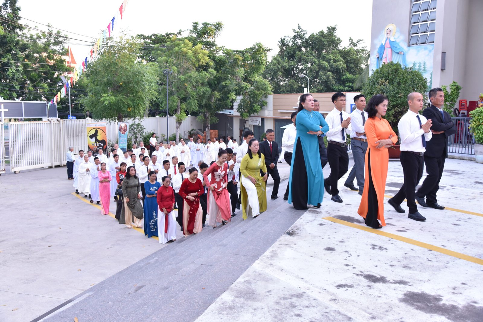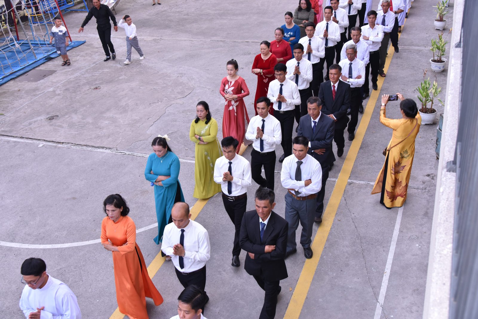 Sau Thánh lễ, mọi người cùng nhau chụp chung tấm hình kỷ niệm và tiếp tục chia sẻ niềm vui chúc mừng các Tân hội viên Salêdiêng trong bữa điểm tâm tại Hội trường Giáo xứ.