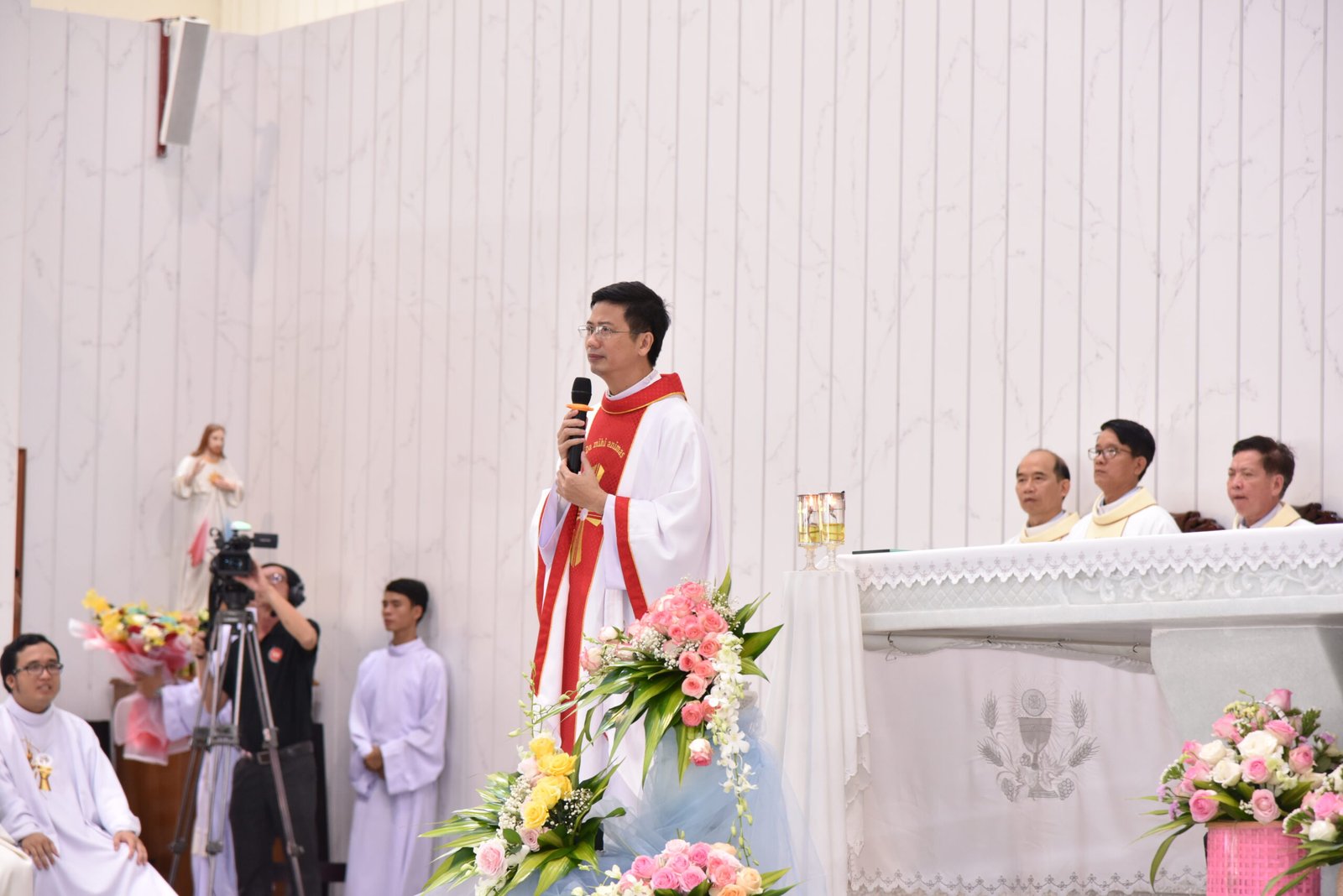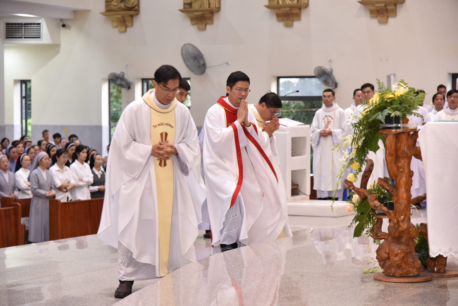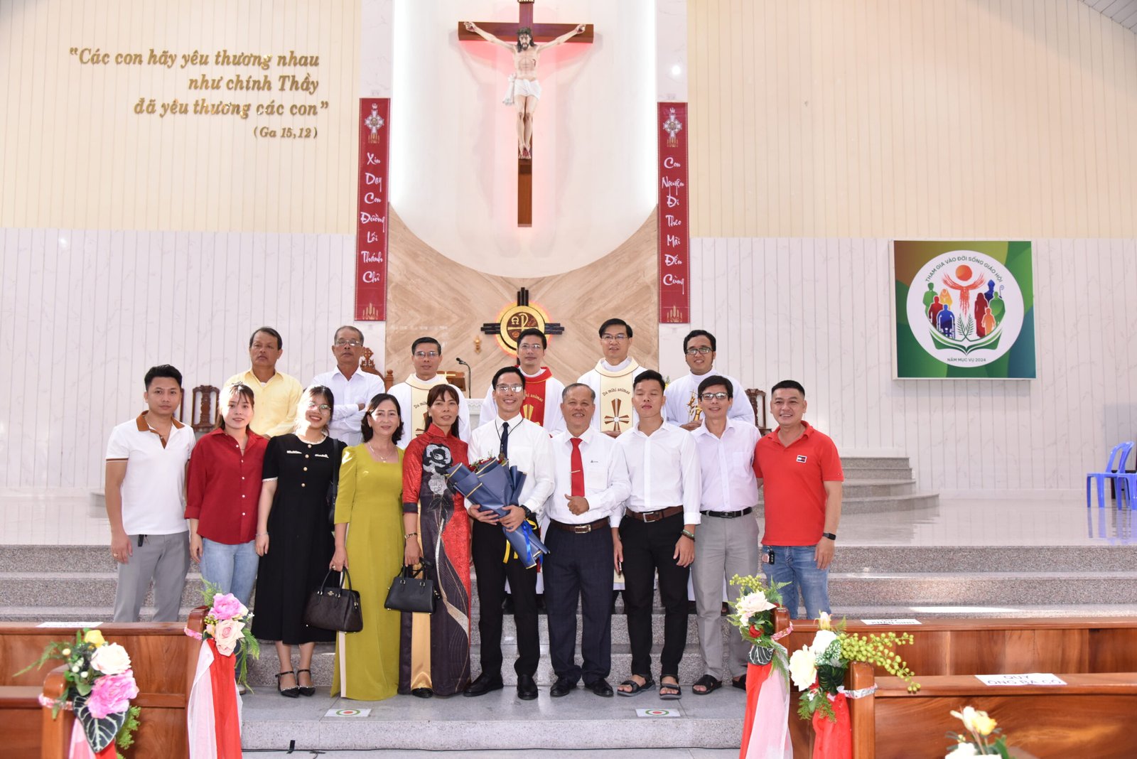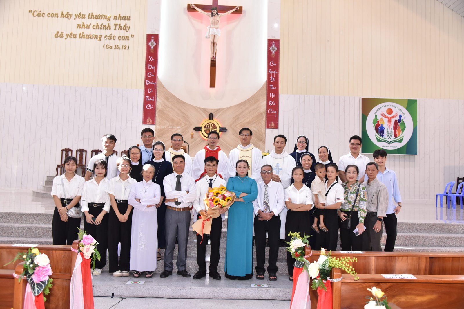 Cha Barnaba, Giám tỉnh Tỉnh dòng Salêdiêng Don Bosco, đã hiện diện và chủ tế Thánh lễ. Đồng tế với ngài có quý Cha trong ban cố vấn Tỉnh và quý Cha Salêdiêng, cũng như quý cha khách mời thuộc các Giáo phận lân cận. Có sự hiện diện của quý Tu sĩ Nam Nữ, các ân nhân, thân nhân cùng gia đình quý tân khấn sinh và ông bà, anh chị em giáo dân Giáo xứ Ba Thôn.