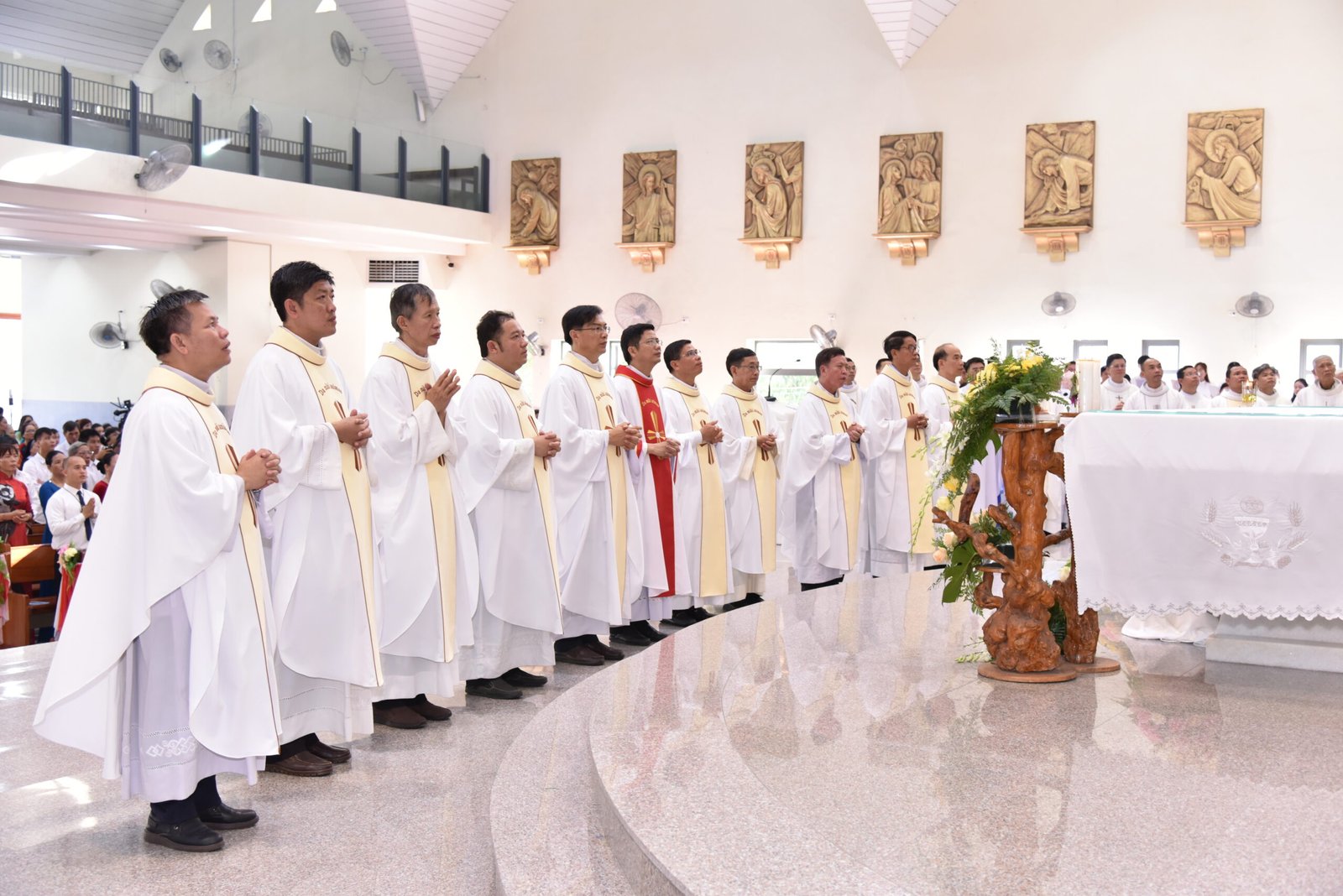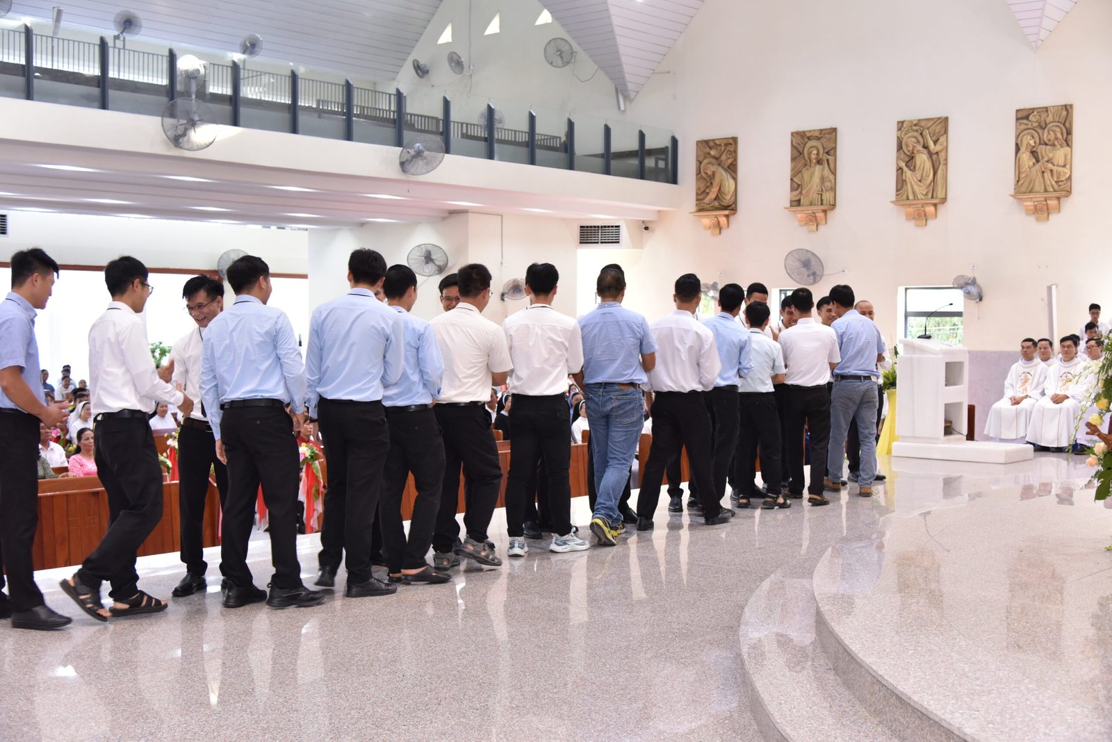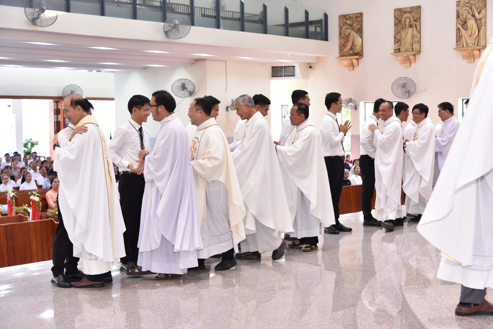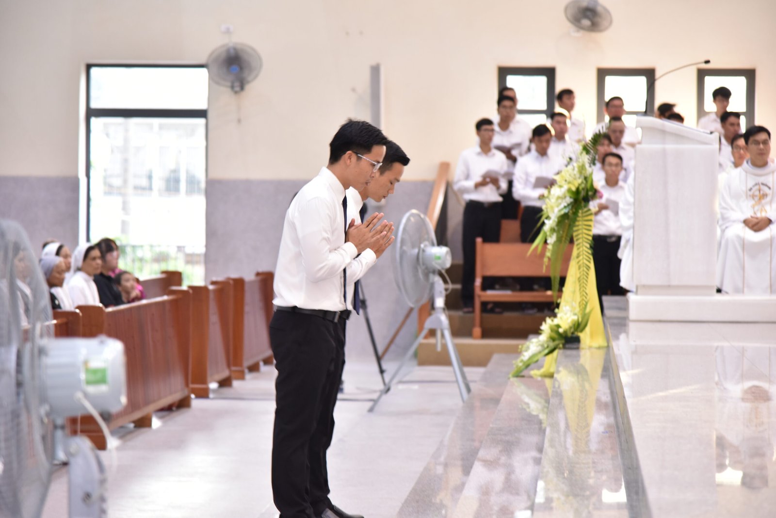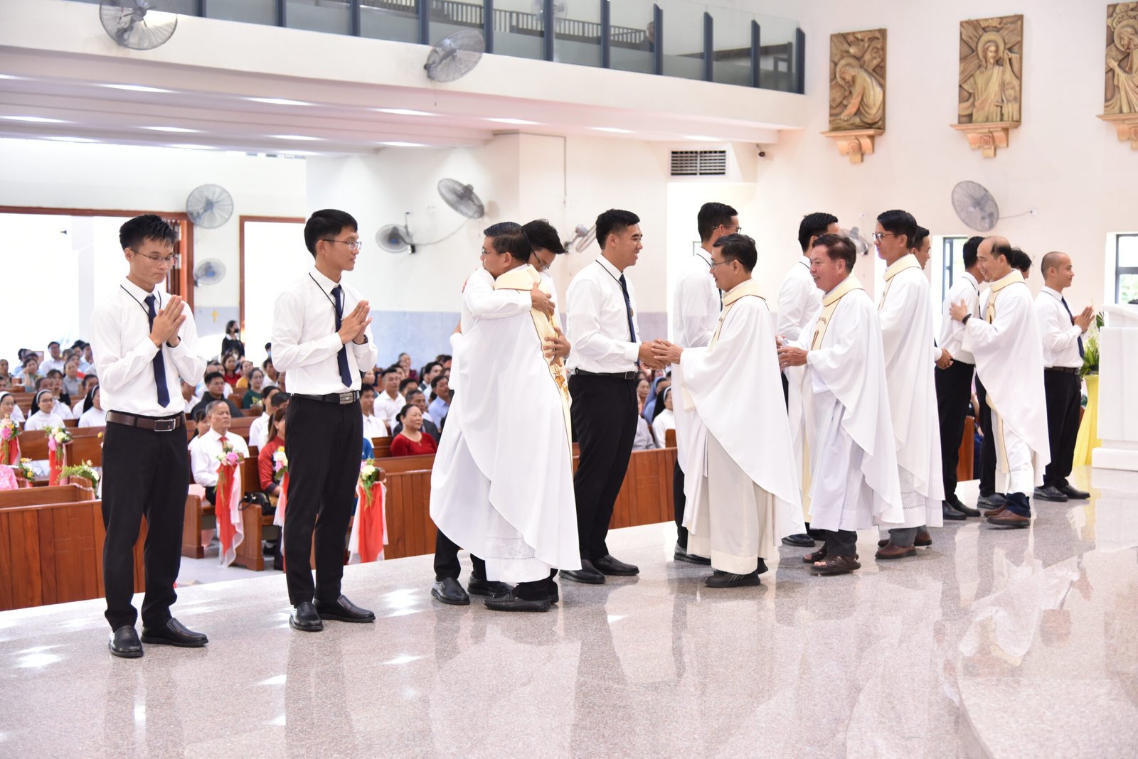 Cha Barnaba, Giám tỉnh Tỉnh dòng Salêdiêng Don Bosco, đã hiện diện và chủ tế Thánh lễ. Đồng tế với ngài có quý Cha trong ban cố vấn Tỉnh và quý Cha Salêdiêng, cũng như quý cha khách mời thuộc các Giáo phận lân cận. Có sự hiện diện của quý Tu sĩ Nam Nữ, các ân nhân, thân nhân cùng gia đình quý tân khấn sinh và ông bà, anh chị em giáo dân Giáo xứ Ba Thôn.