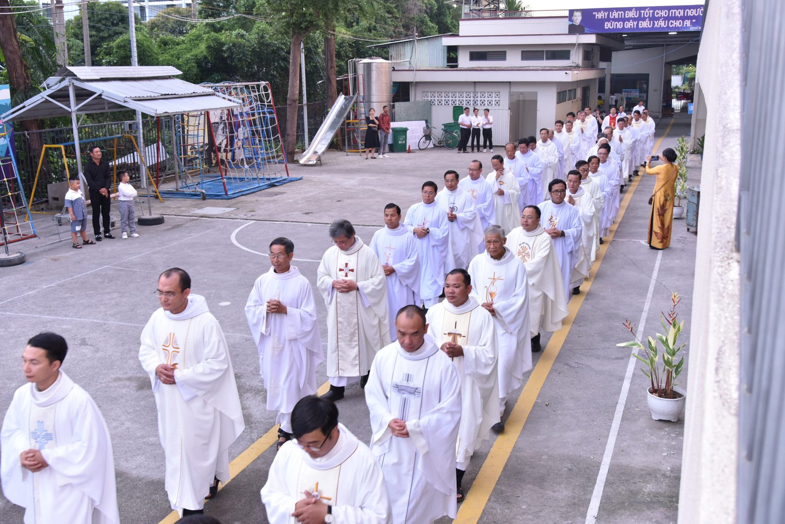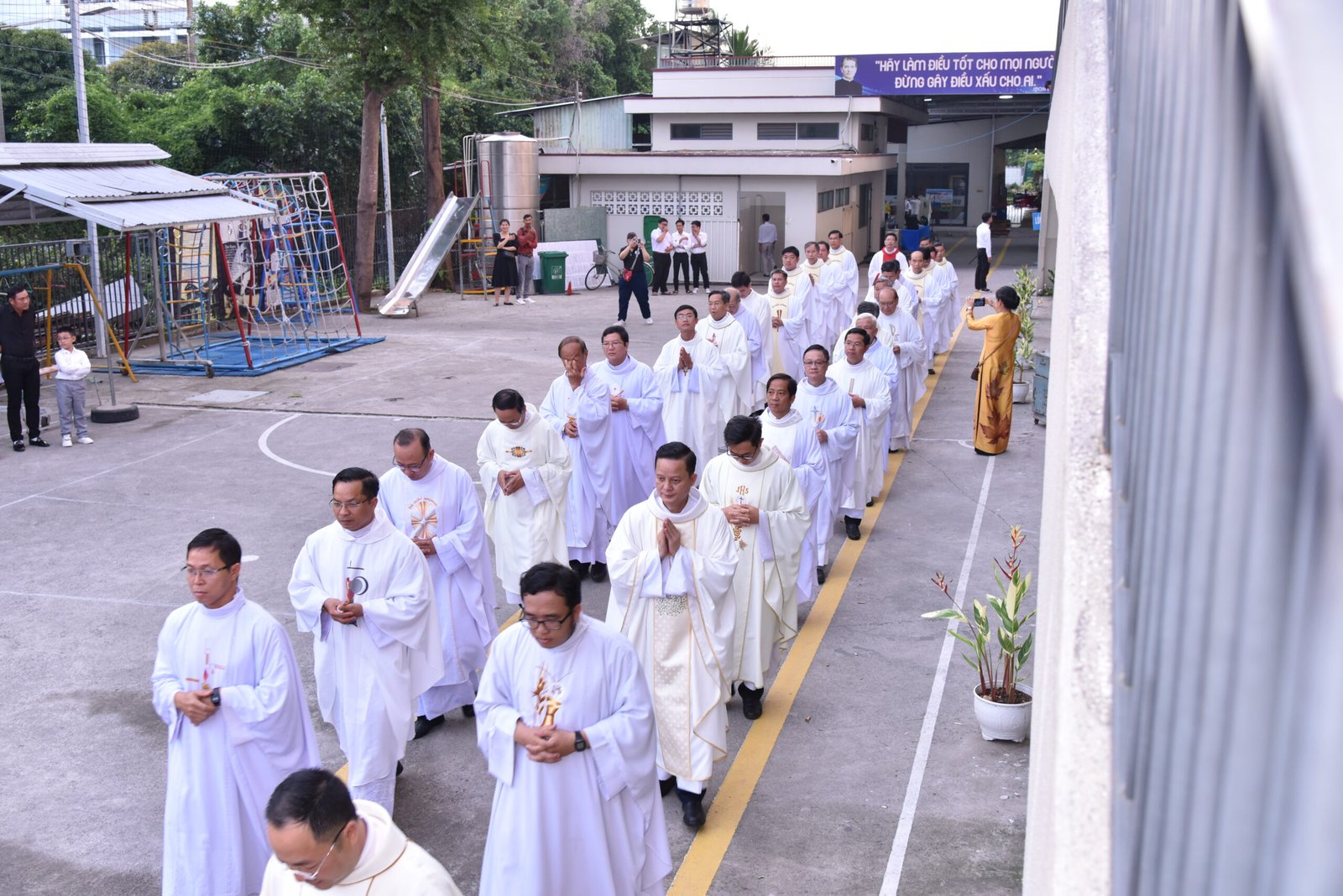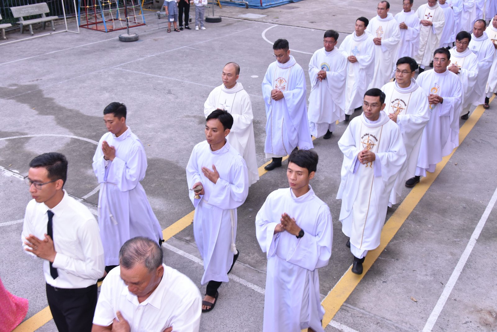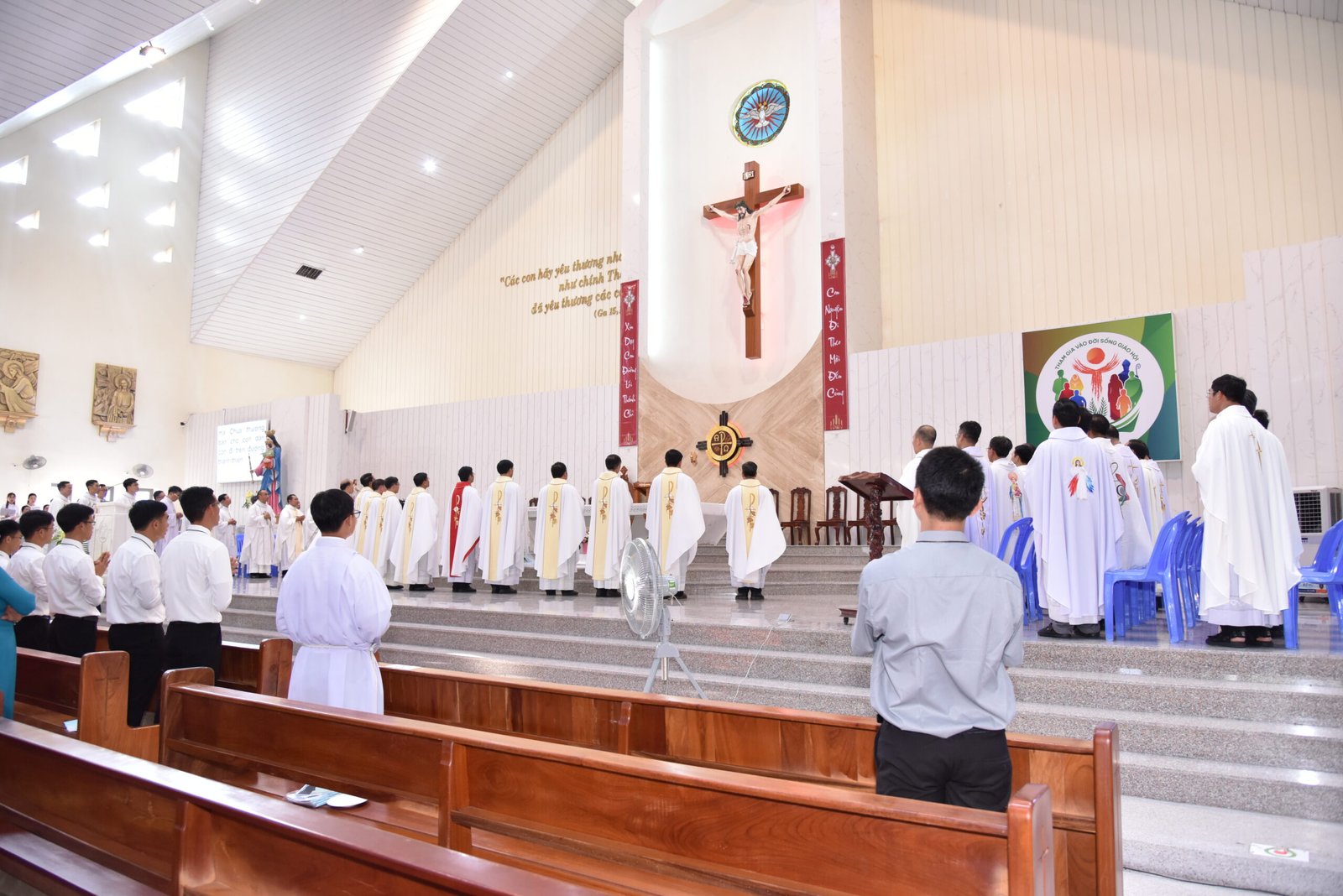 Cha Barnaba, Giám tỉnh Tỉnh dòng Salêdiêng Don Bosco, đã hiện diện và chủ tế Thánh lễ. Đồng tế với ngài có quý Cha trong ban cố vấn Tỉnh và quý Cha Salêdiêng, cũng như quý cha khách mời thuộc các Giáo phận lân cận. Có sự hiện diện của quý Tu sĩ Nam Nữ, các ân nhân, thân nhân cùng gia đình quý tân khấn sinh và ông bà, anh chị em giáo dân Giáo xứ Ba Thôn.