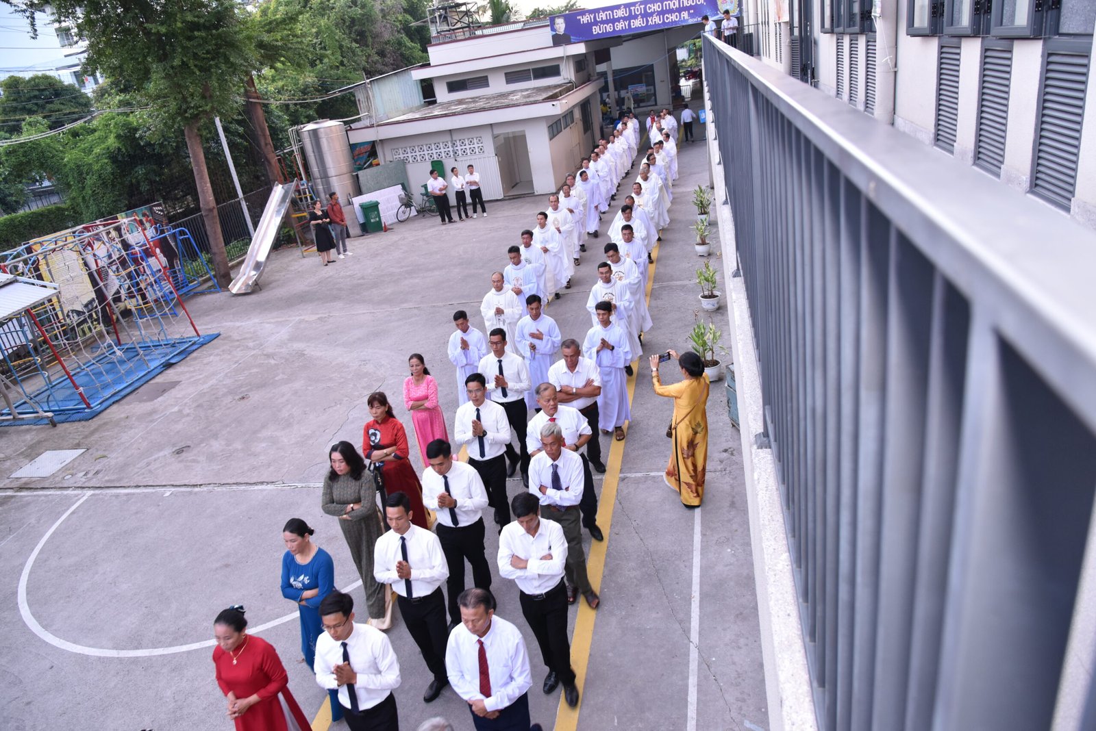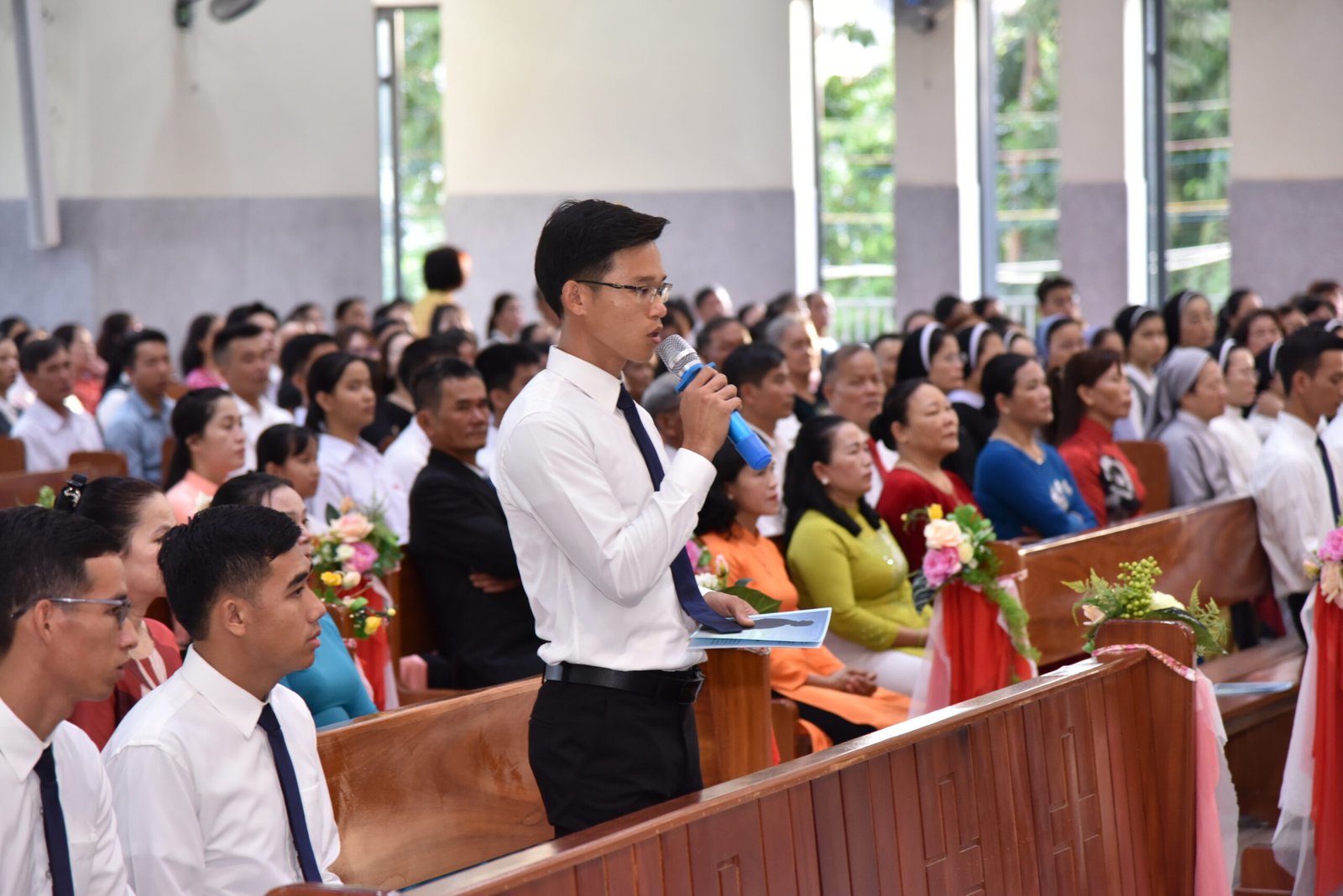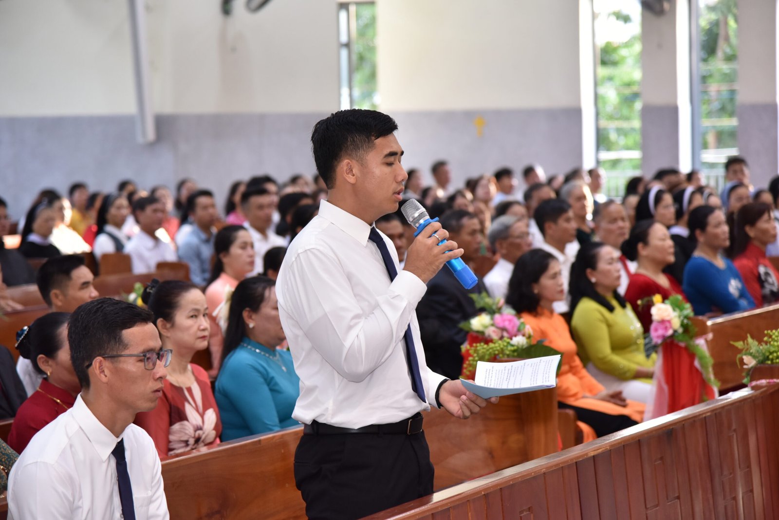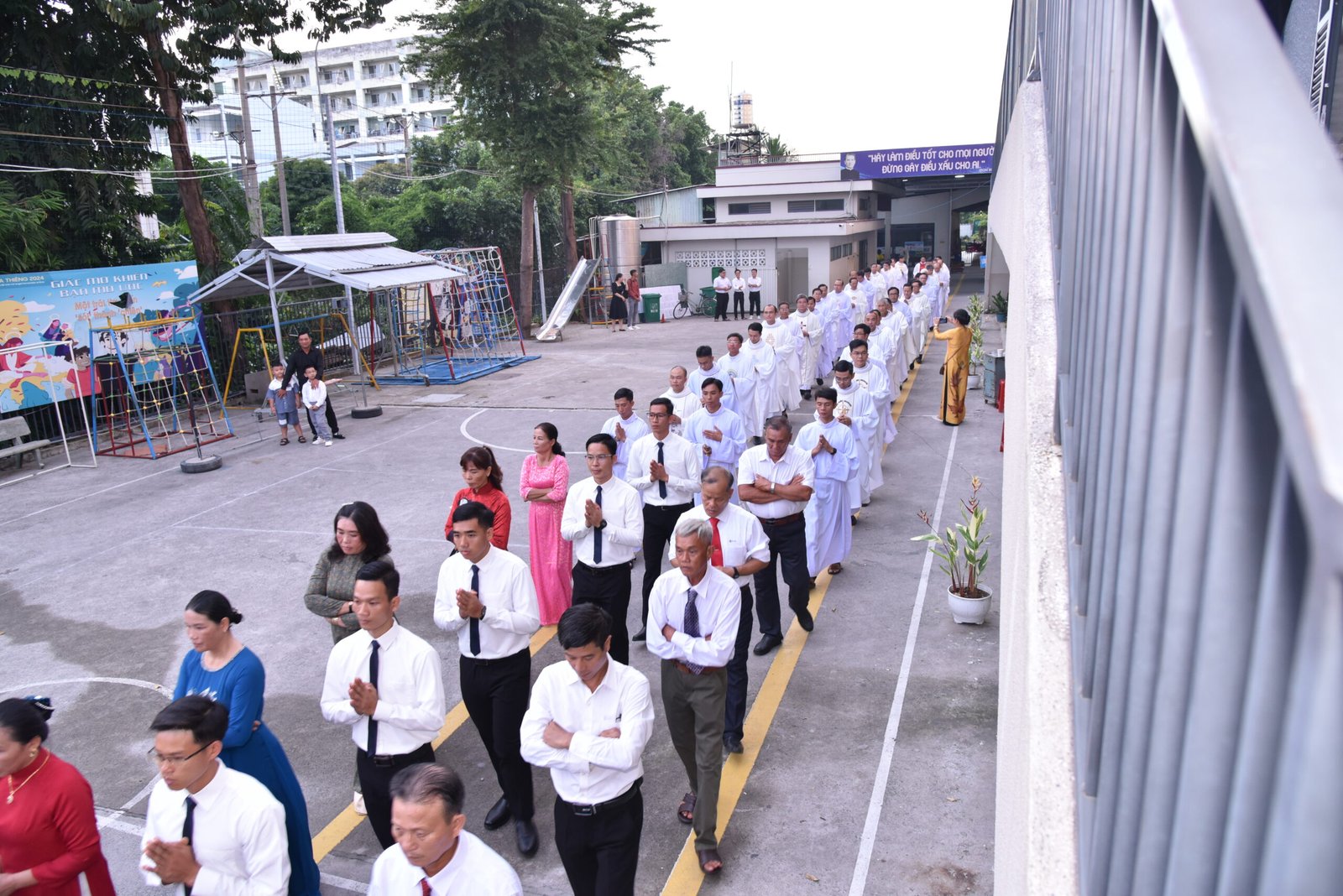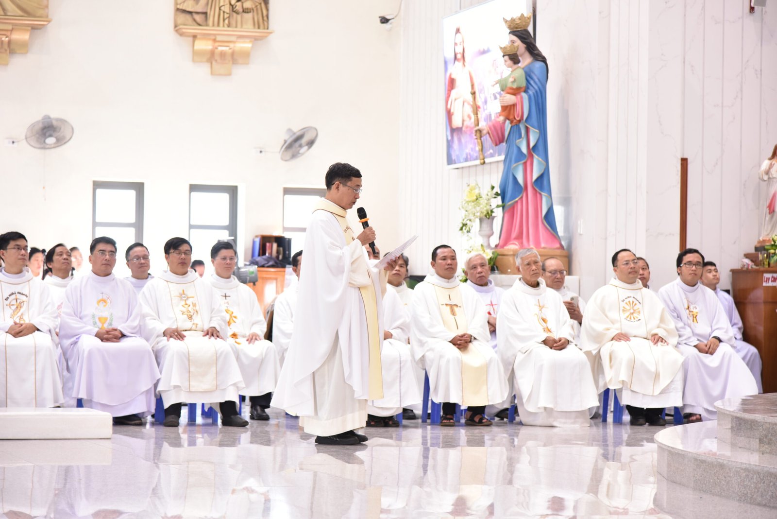 Cha Barnaba, Giám tỉnh Tỉnh dòng Salêdiêng Don Bosco, đã hiện diện và chủ tế Thánh lễ. Đồng tế với ngài có quý Cha trong ban cố vấn Tỉnh và quý Cha Salêdiêng, cũng như quý cha khách mời thuộc các Giáo phận lân cận. Có sự hiện diện của quý Tu sĩ Nam Nữ, các ân nhân, thân nhân cùng gia đình quý tân khấn sinh và ông bà, anh chị em giáo dân Giáo xứ Ba Thôn.