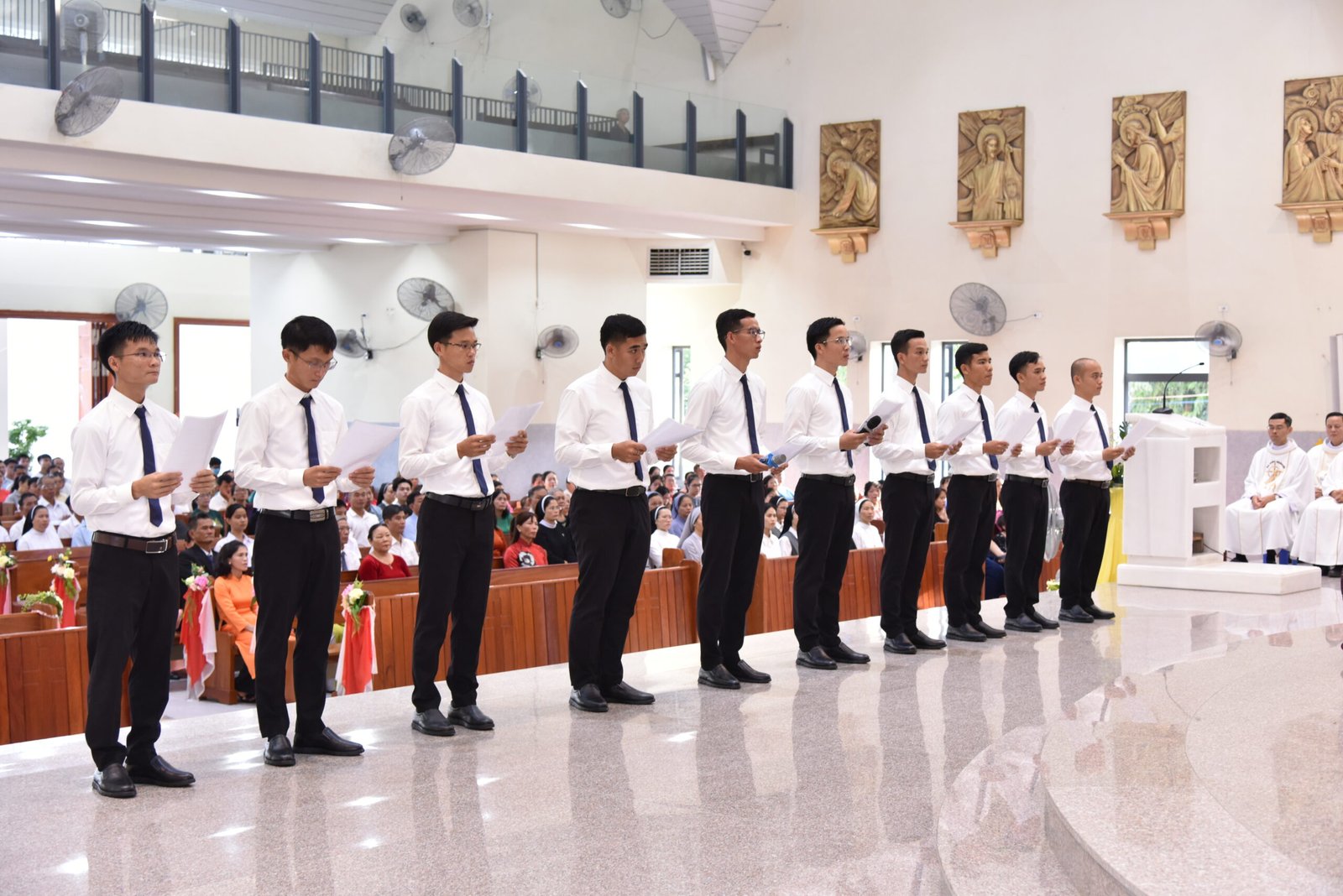Tiếp đến là nghi thức tuyên khấn được diễn ra cách long trọng và sốt sắng. Từng ứng sinh diễn tả lời tuyên hứa của mình trước mặt Thiên Chúa, Cha Giám tỉnh và toàn thể cộng đoàn.